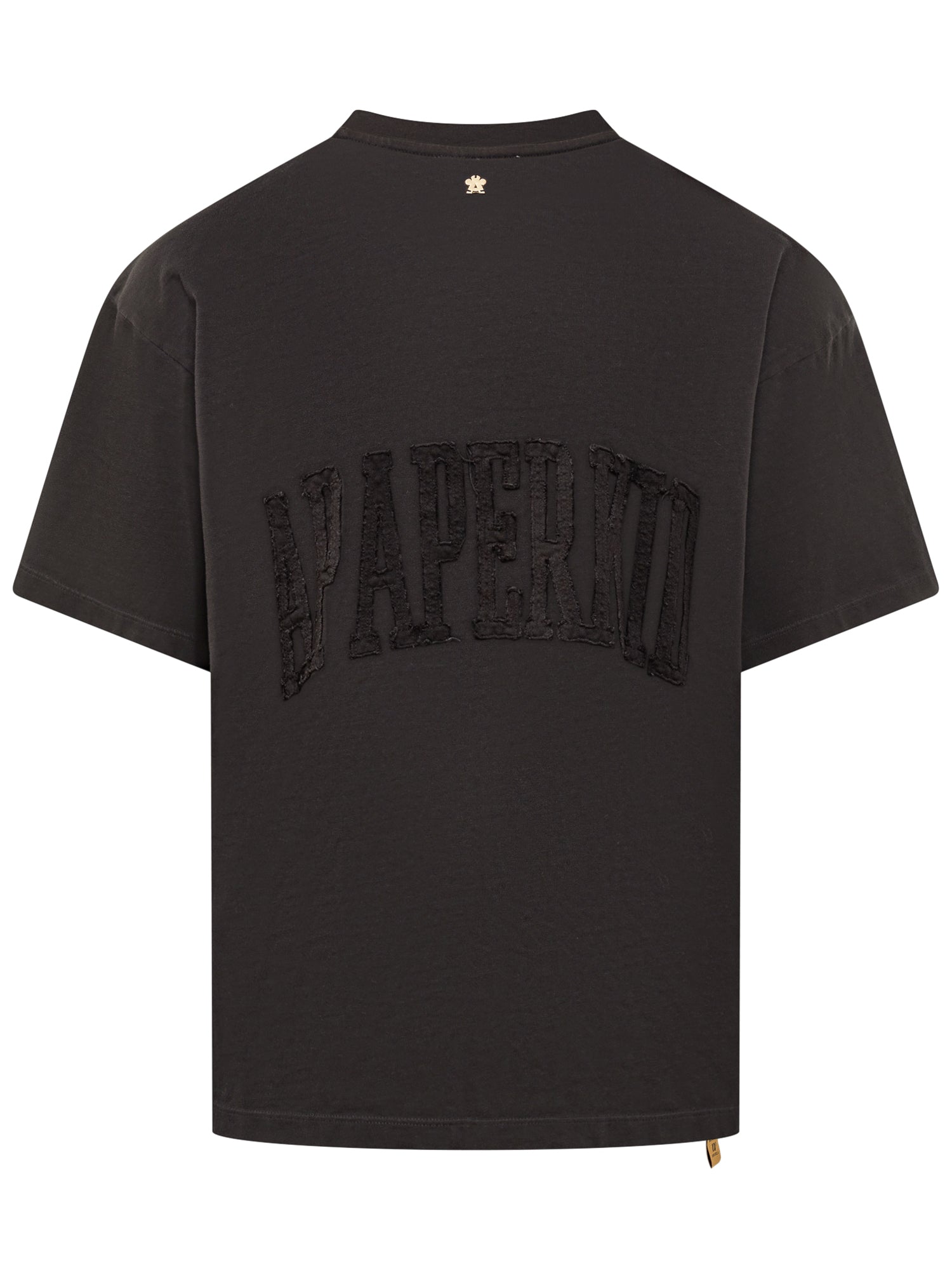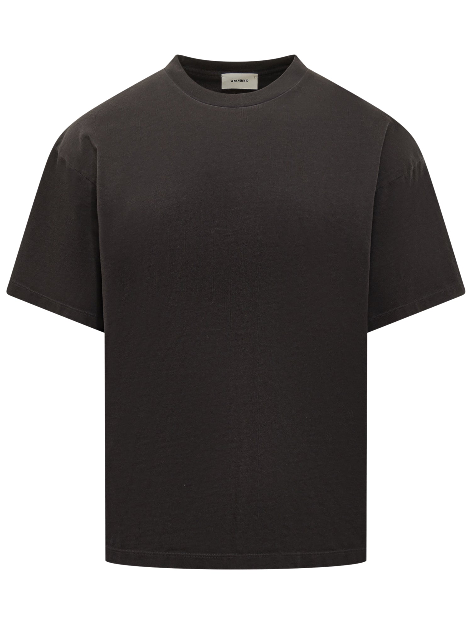 T-shirt nera A Paper Kid in cotone, con retro caratterizzato da logo ricamato in rilievo.