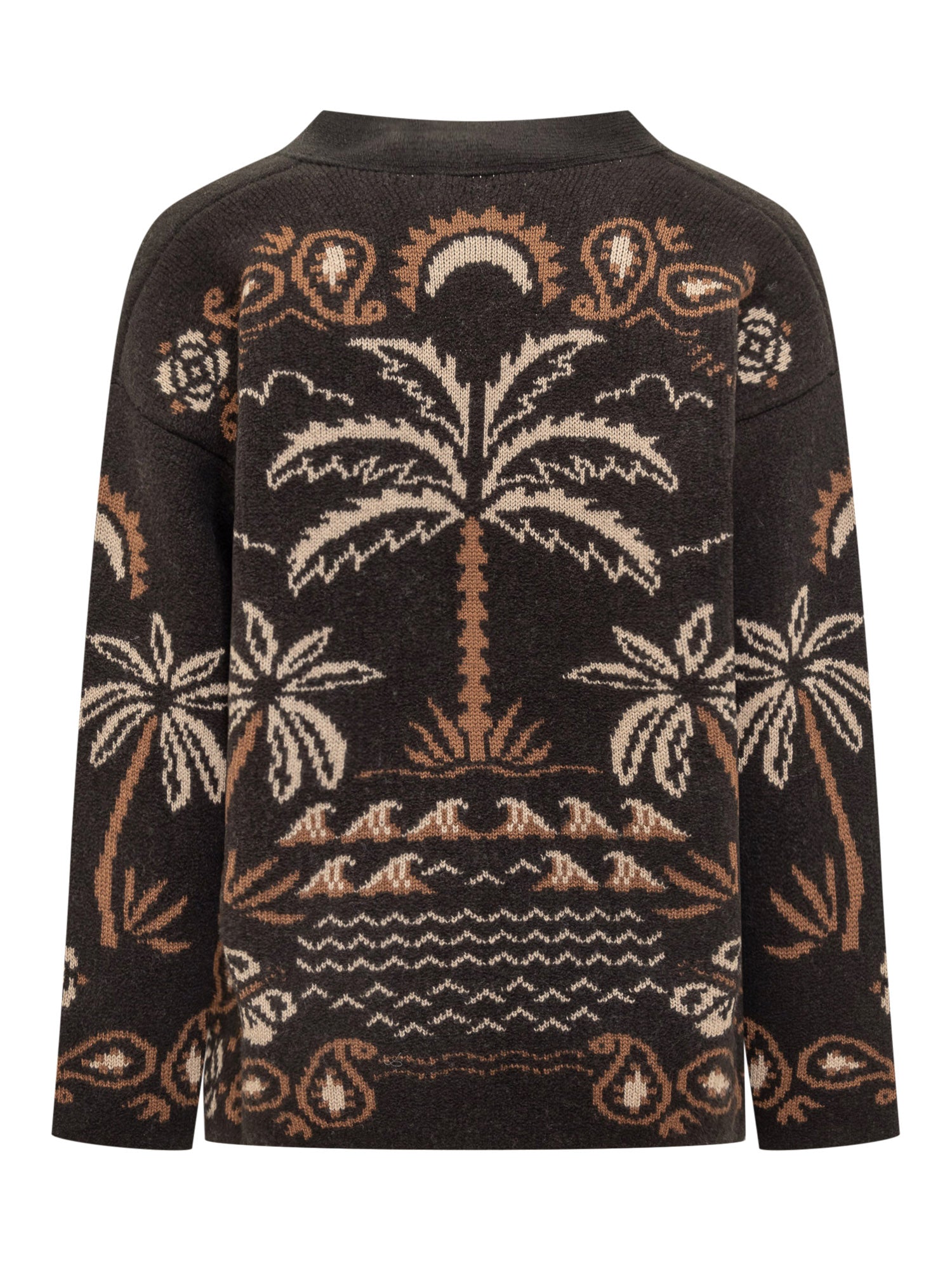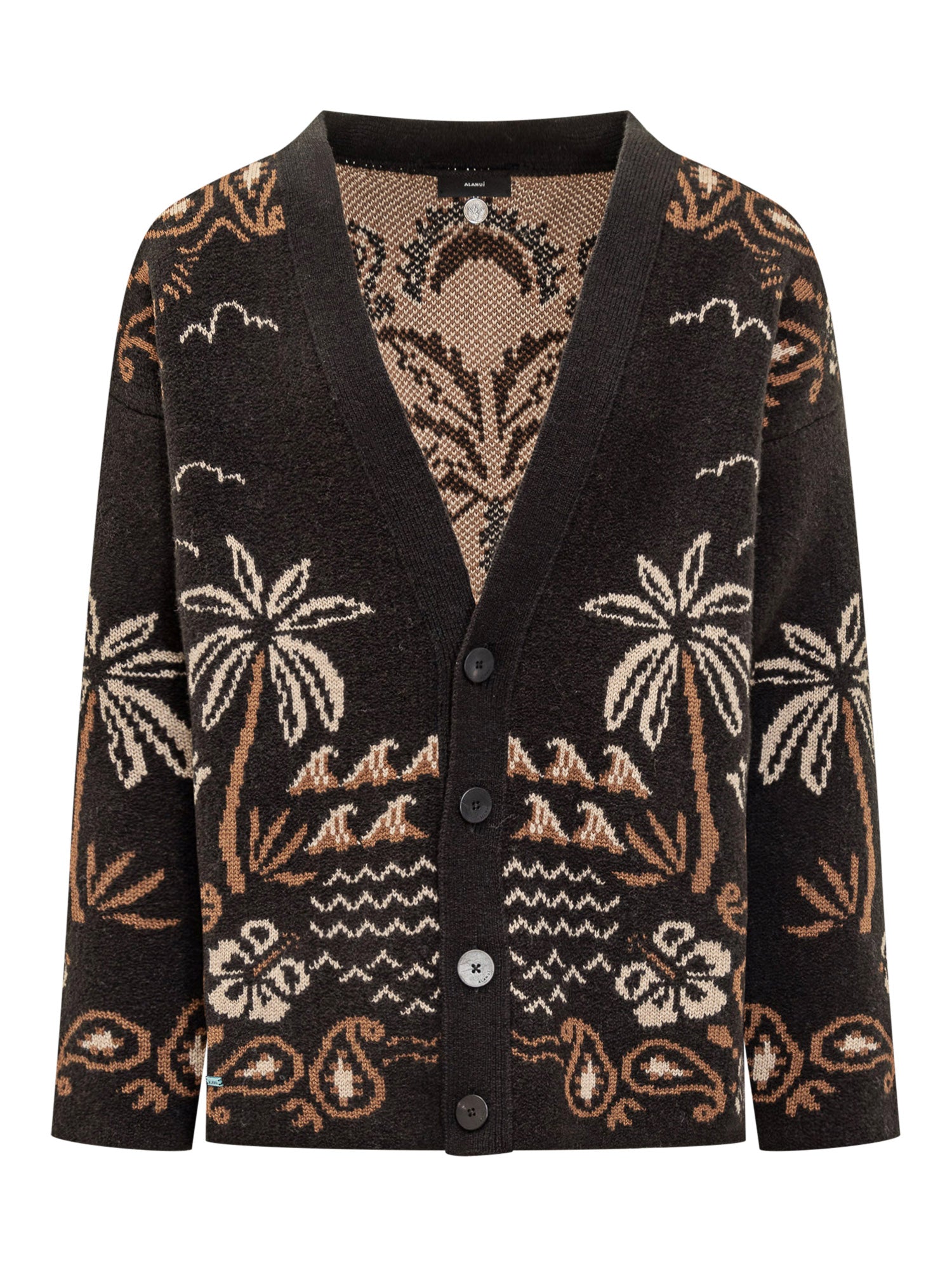Cardigan Alanui in lana con fantasia tropicale a contrasto. Modello con scollo a V, chiusura a bottoni e vestibilità rilassata.