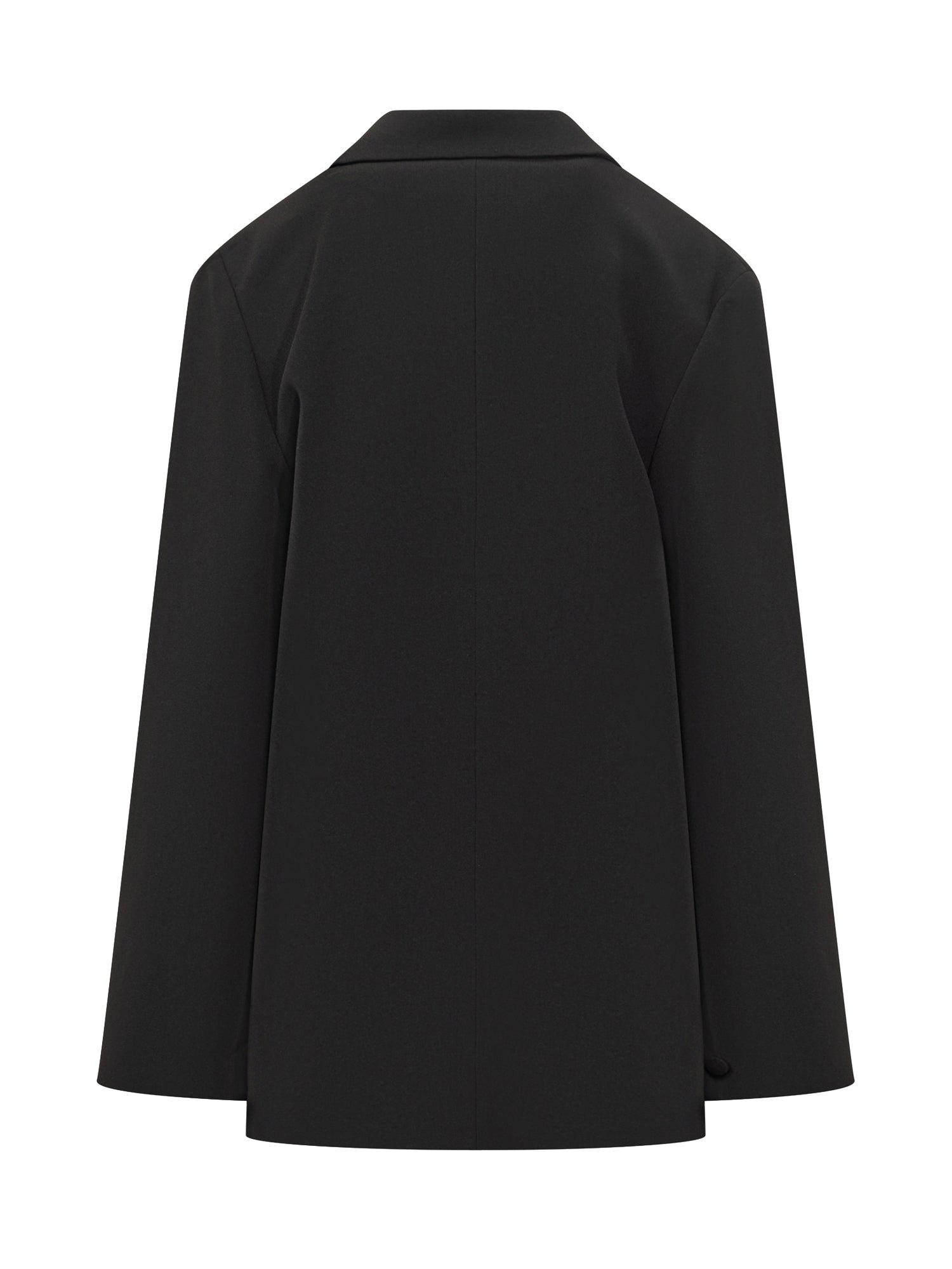 Blazer nero Alberta Ferretti dal taglio elegante con chiusura monopetto e revers classici.