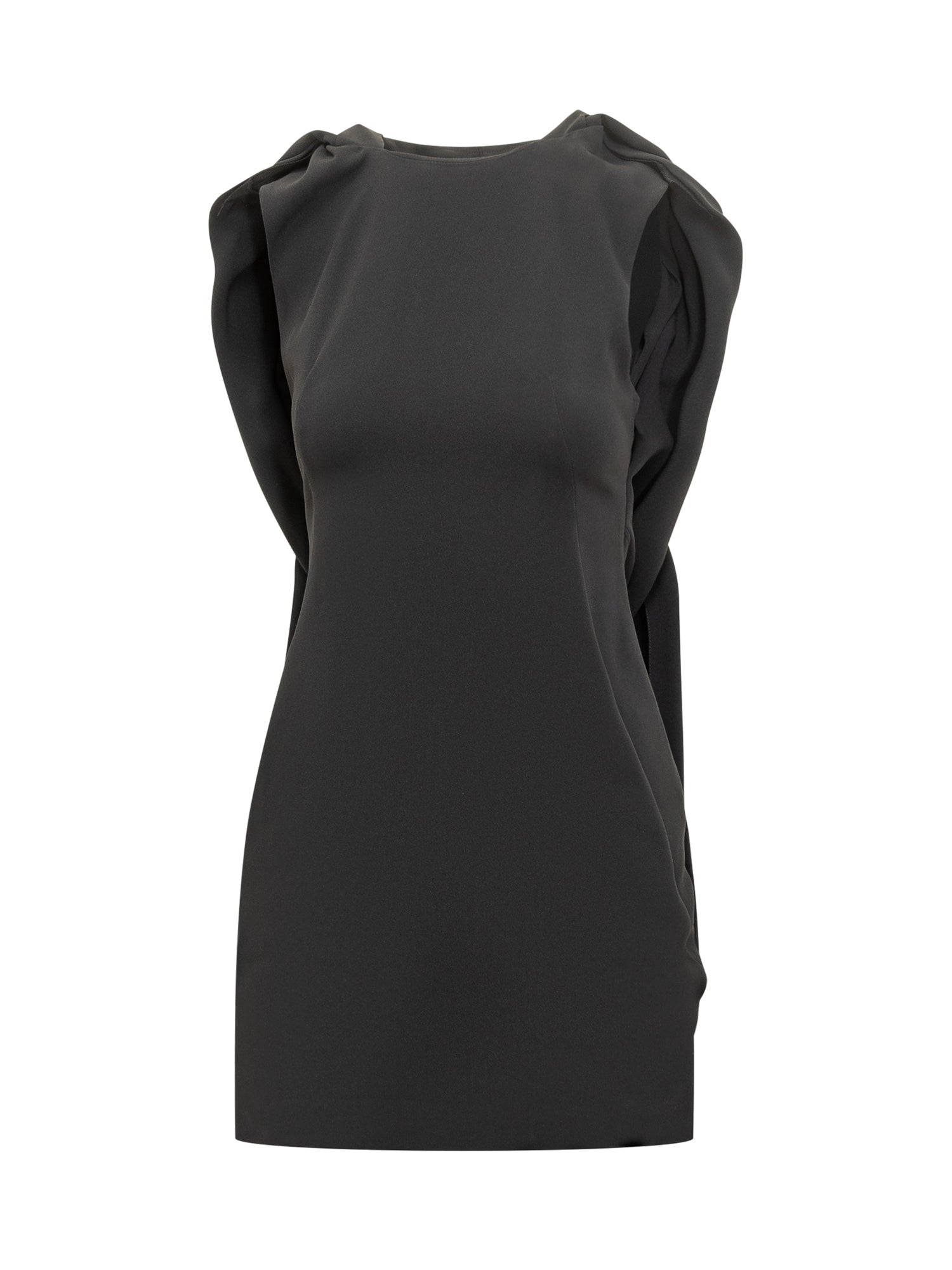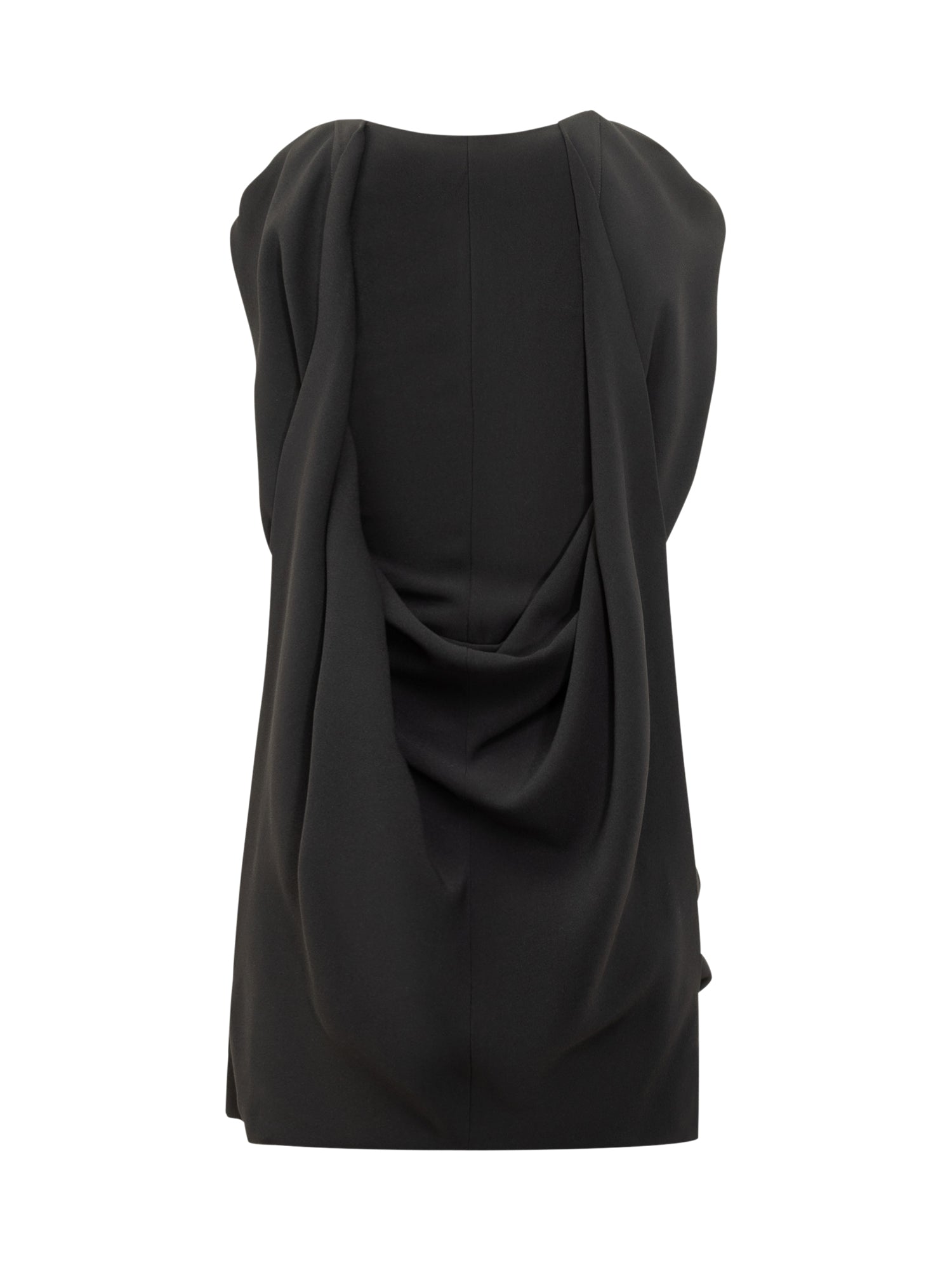 Top nero Alberta Ferretti senza maniche con dettagli drappeggiati sulle spalle.