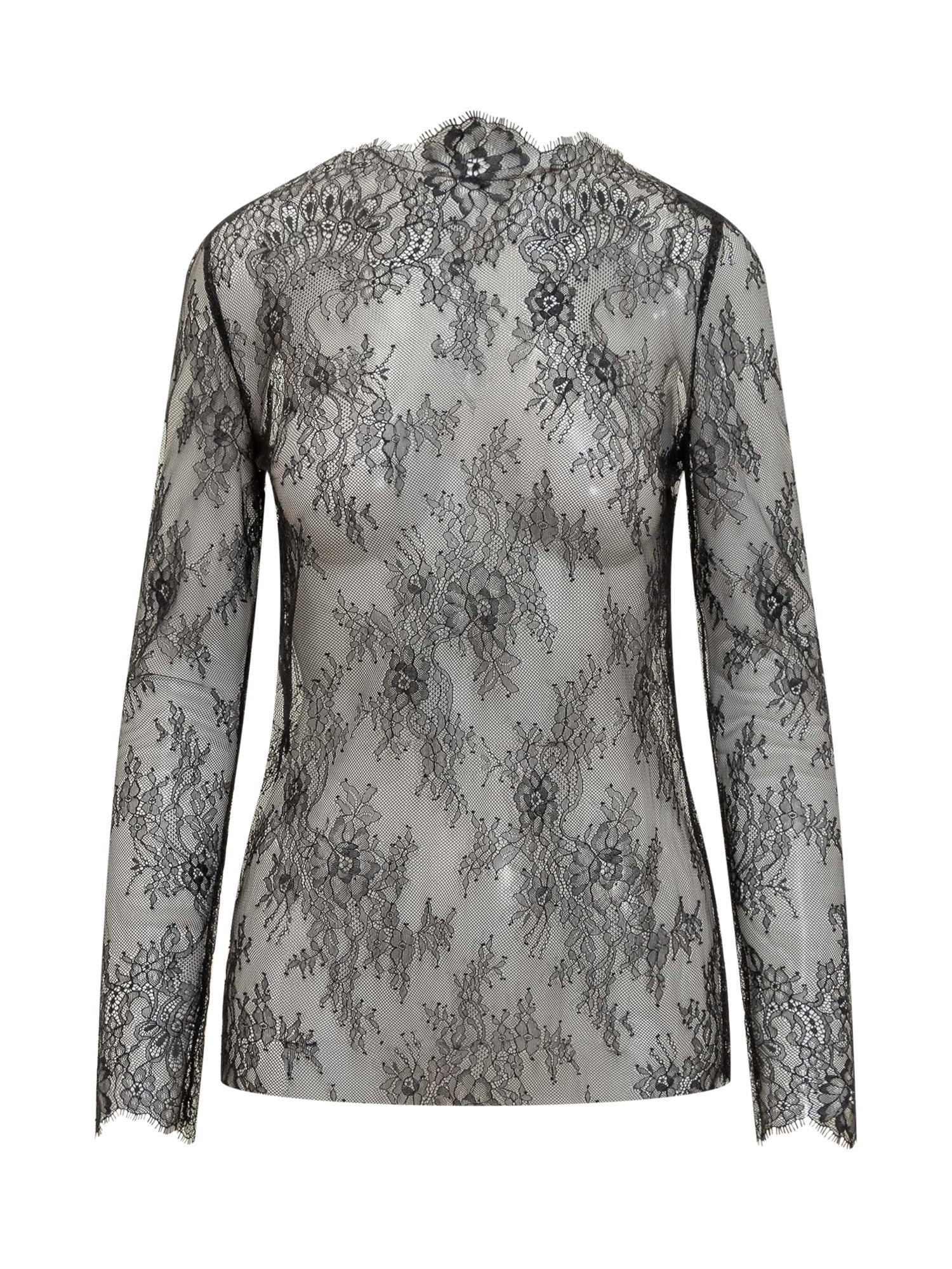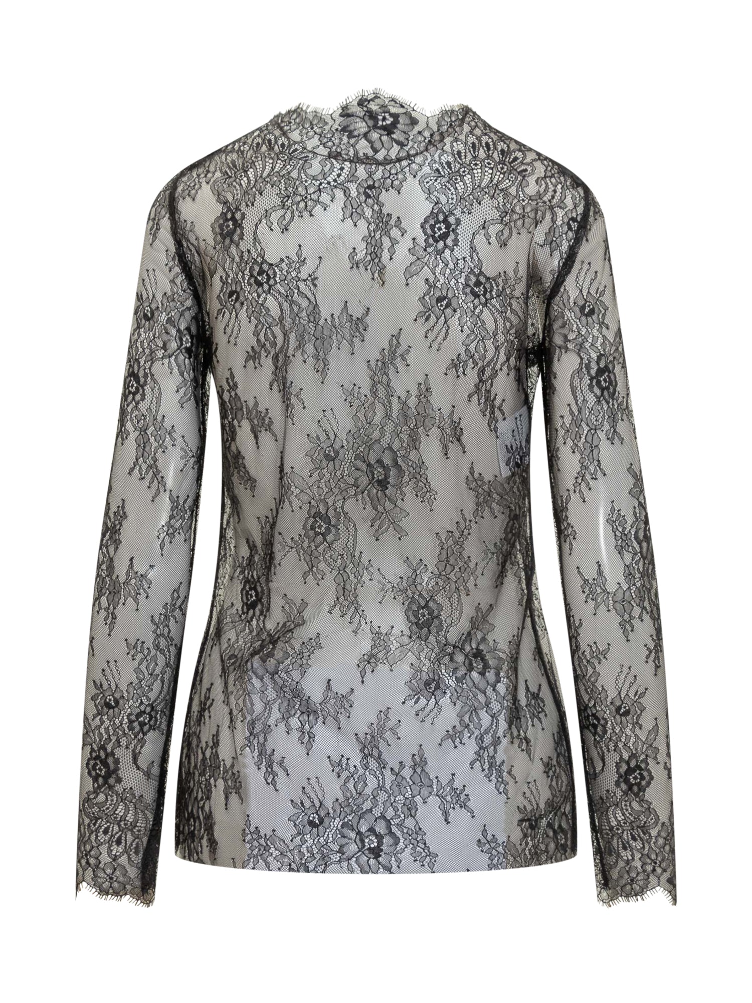 Camicia in pizzo nero trasparente di Alberta Ferretti.