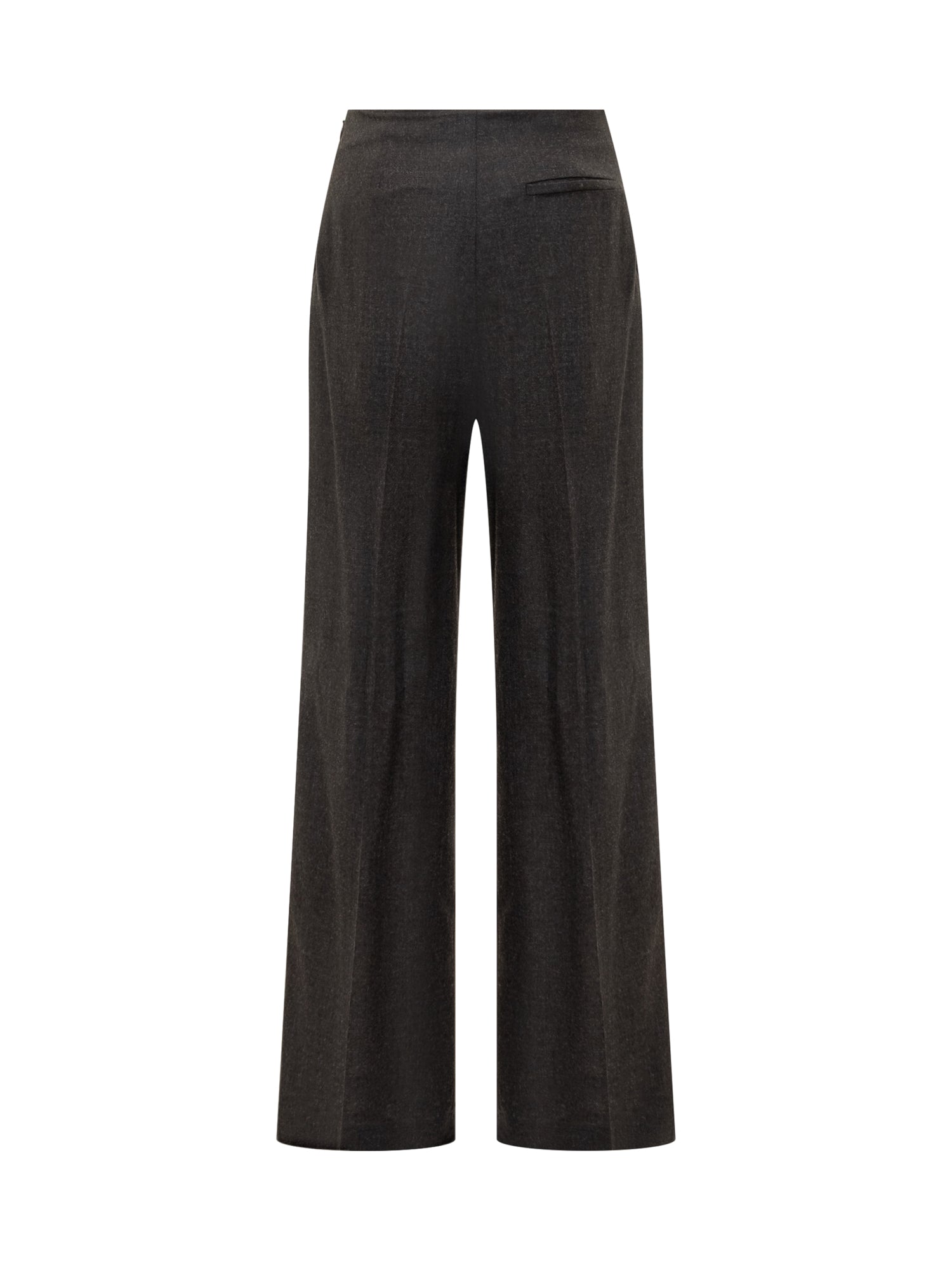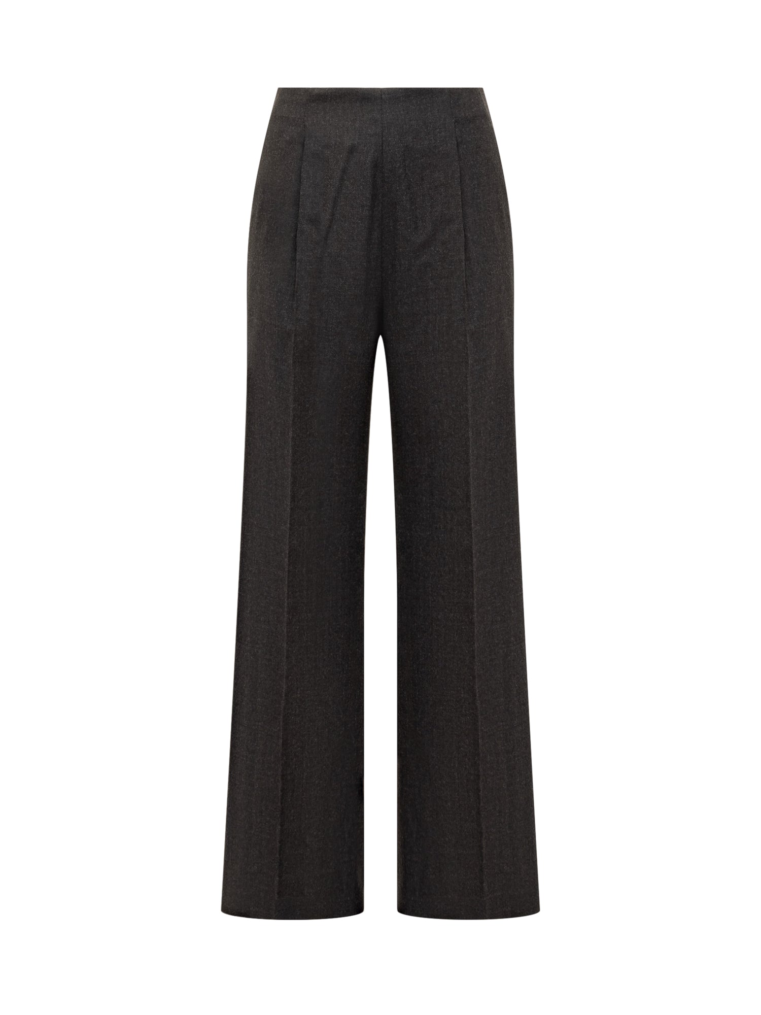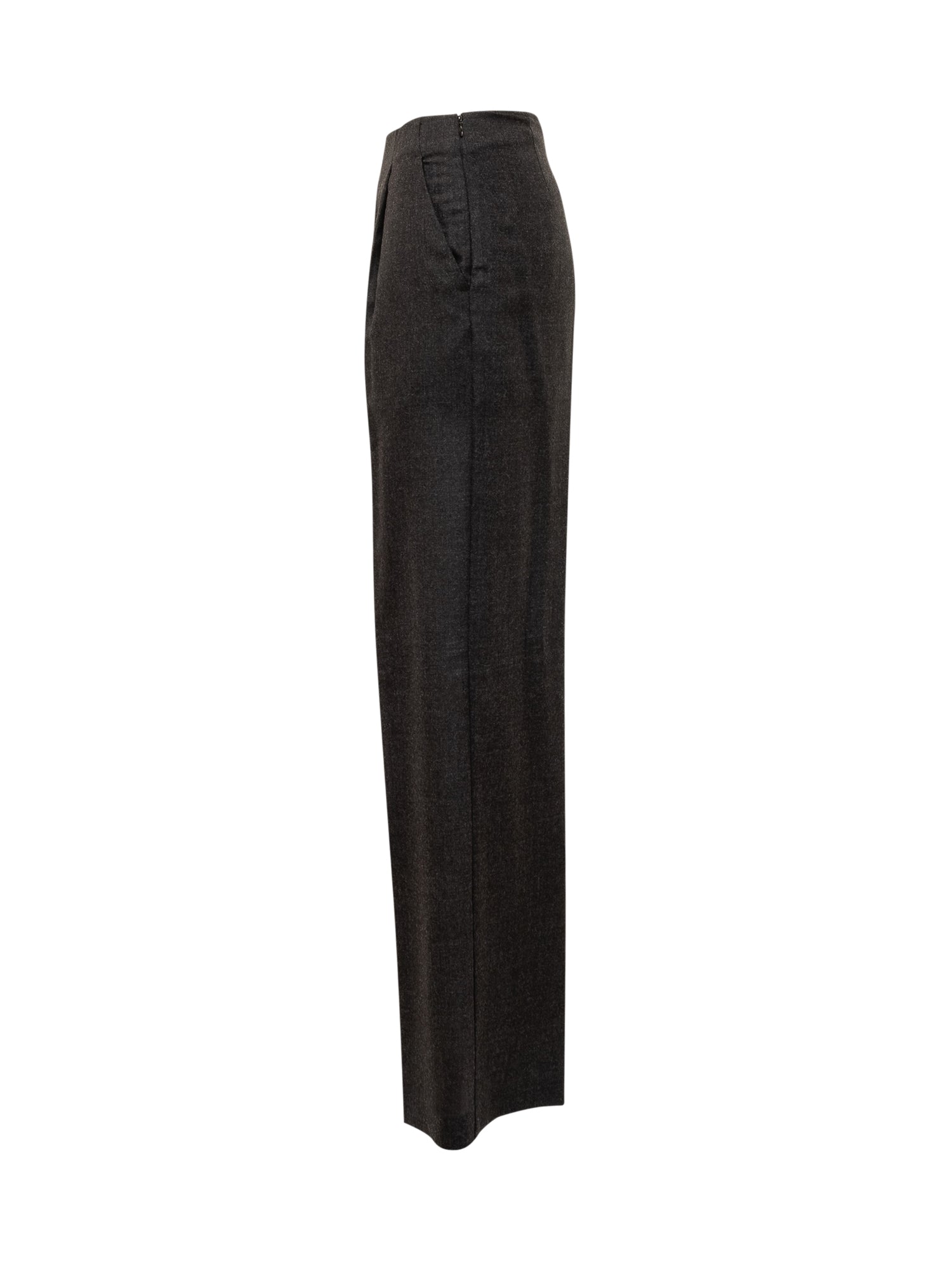 Pantaloni Alberta Ferretti a gamba larga in lana grigio antracite, con piega centrale e vita alta.