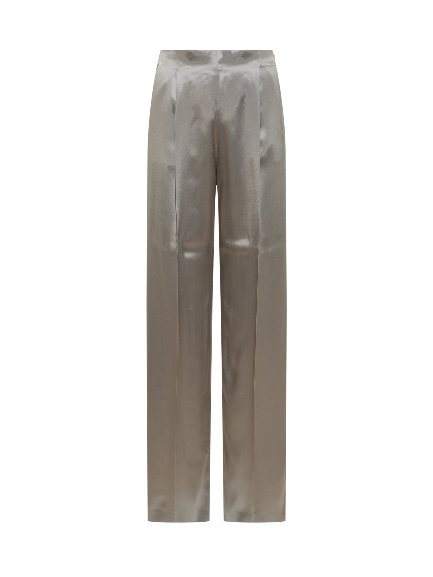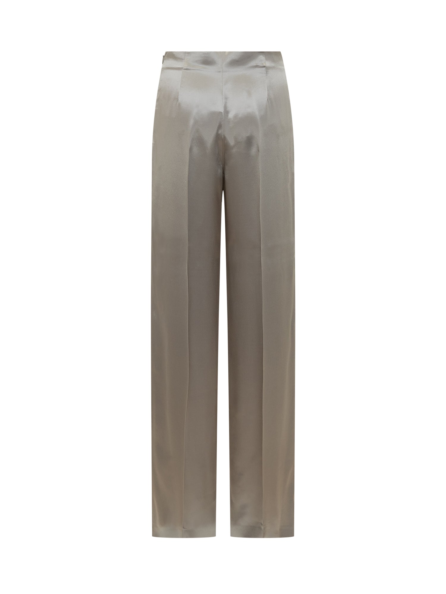 Pantaloni Alberta Ferretti in raso grigio perla, dal taglio ampio e lineare.