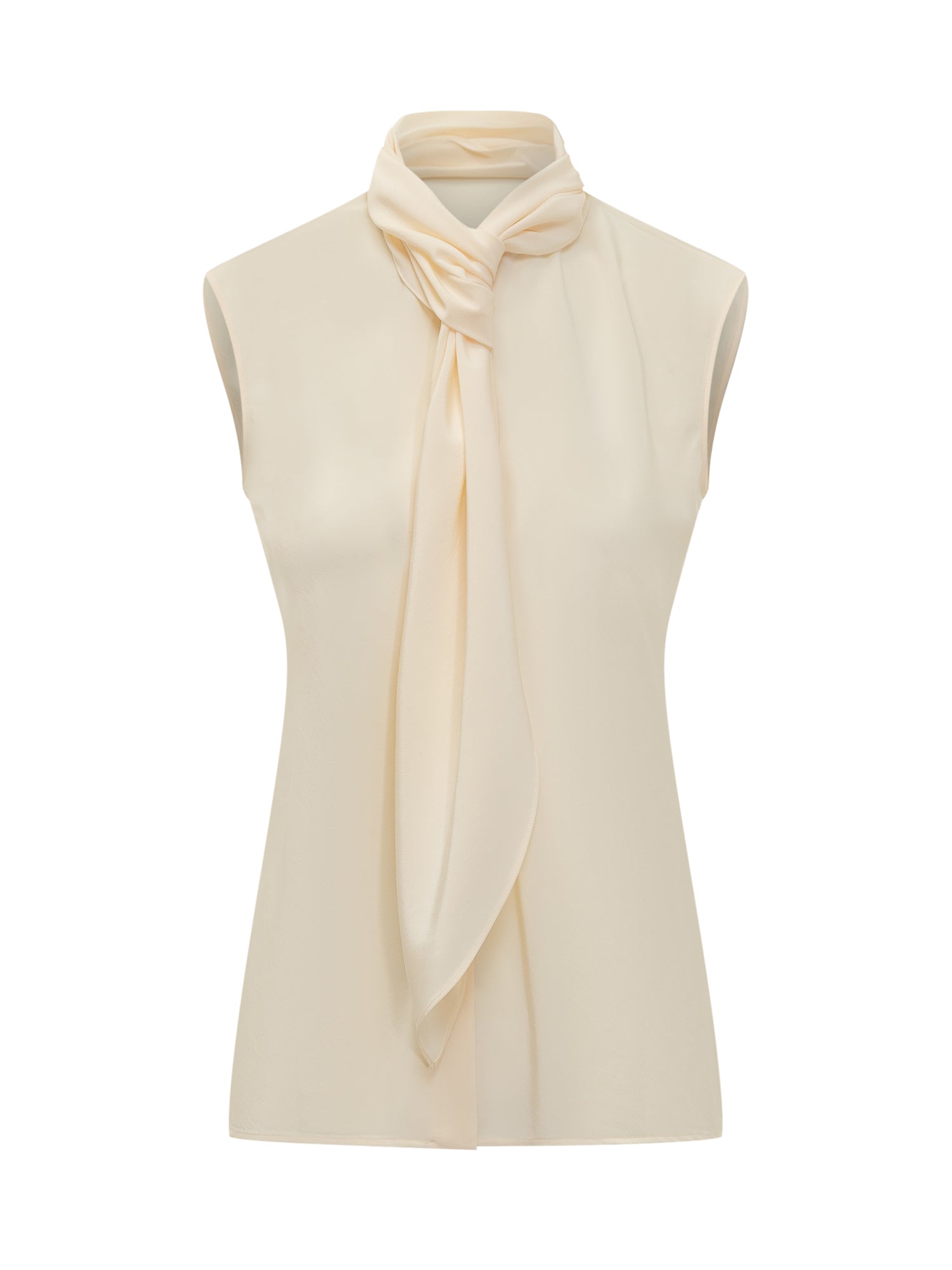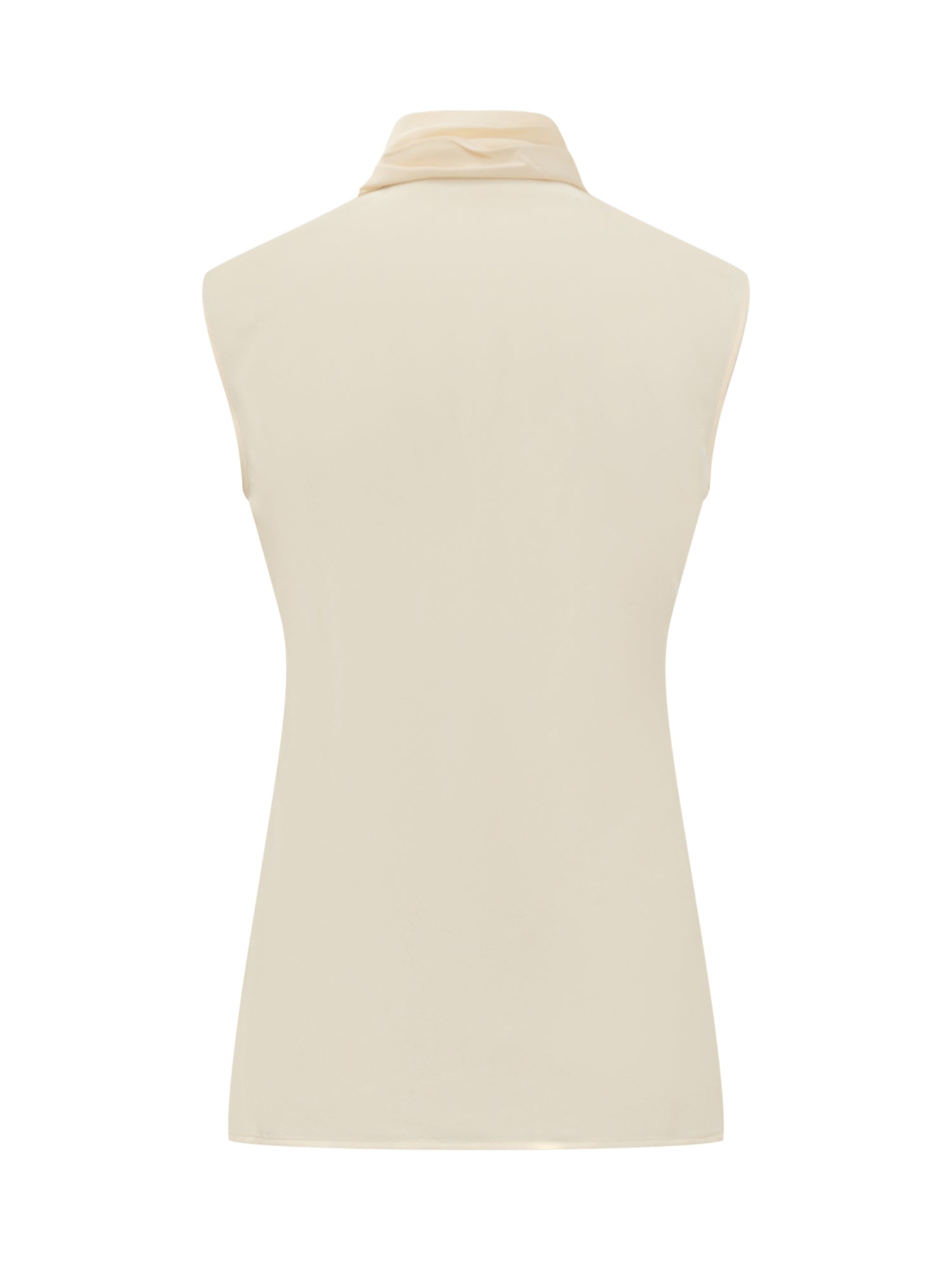 Top senza maniche Alberta Ferretti in tessuto fluido color avorio, caratterizzato da un elegante fiocco annodato sul collo.