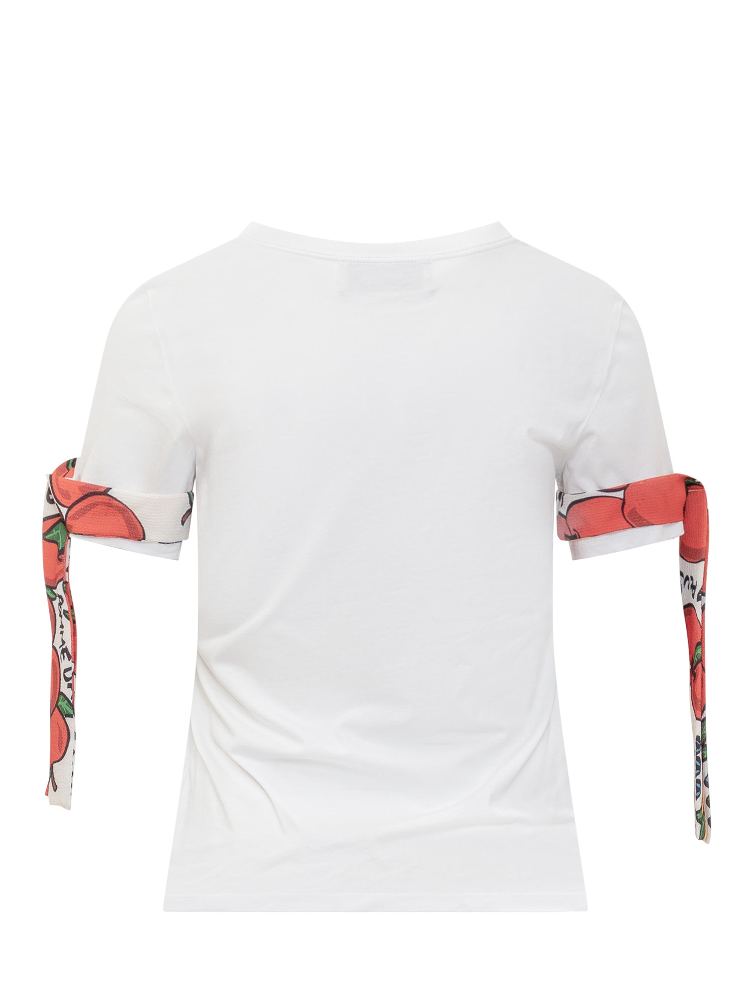 T-shirt a maniche corte in cotone. Girocollo. Orli a costine. Logo sul davanti. Foulard sulle maniche.