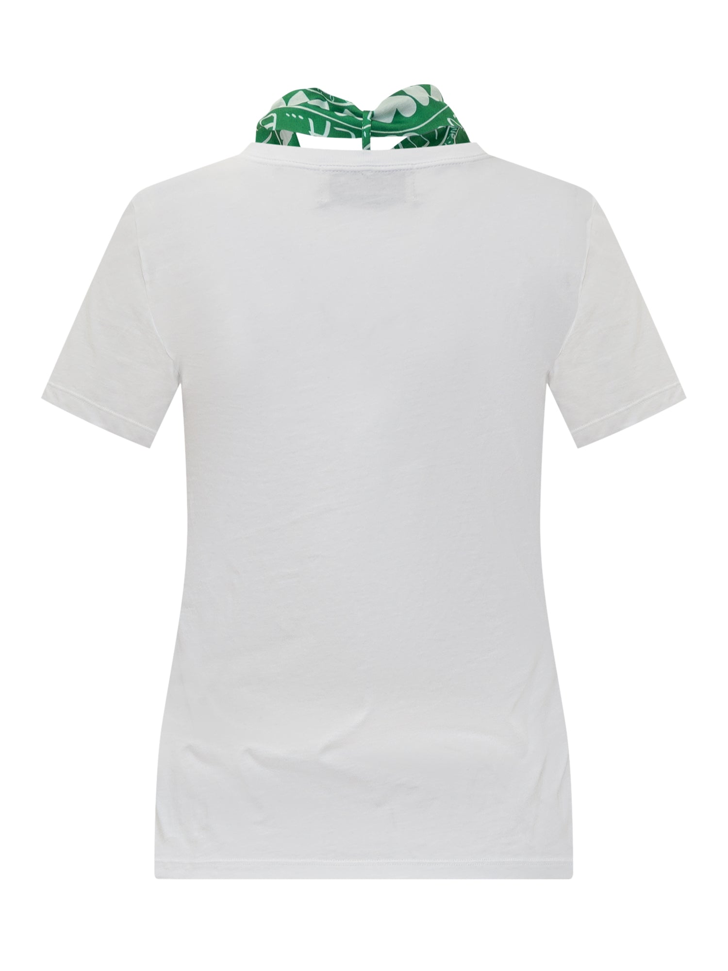 T-shirt a maniche corte in cotone. Girocollo con foulard. Orli a costine. Logo sul davanti.
