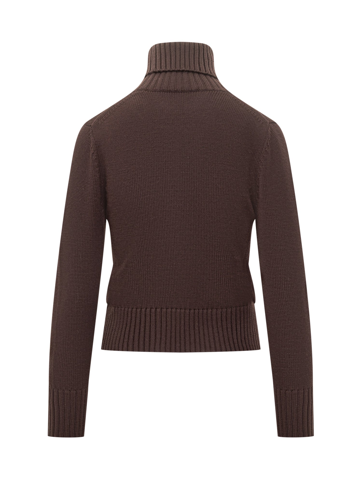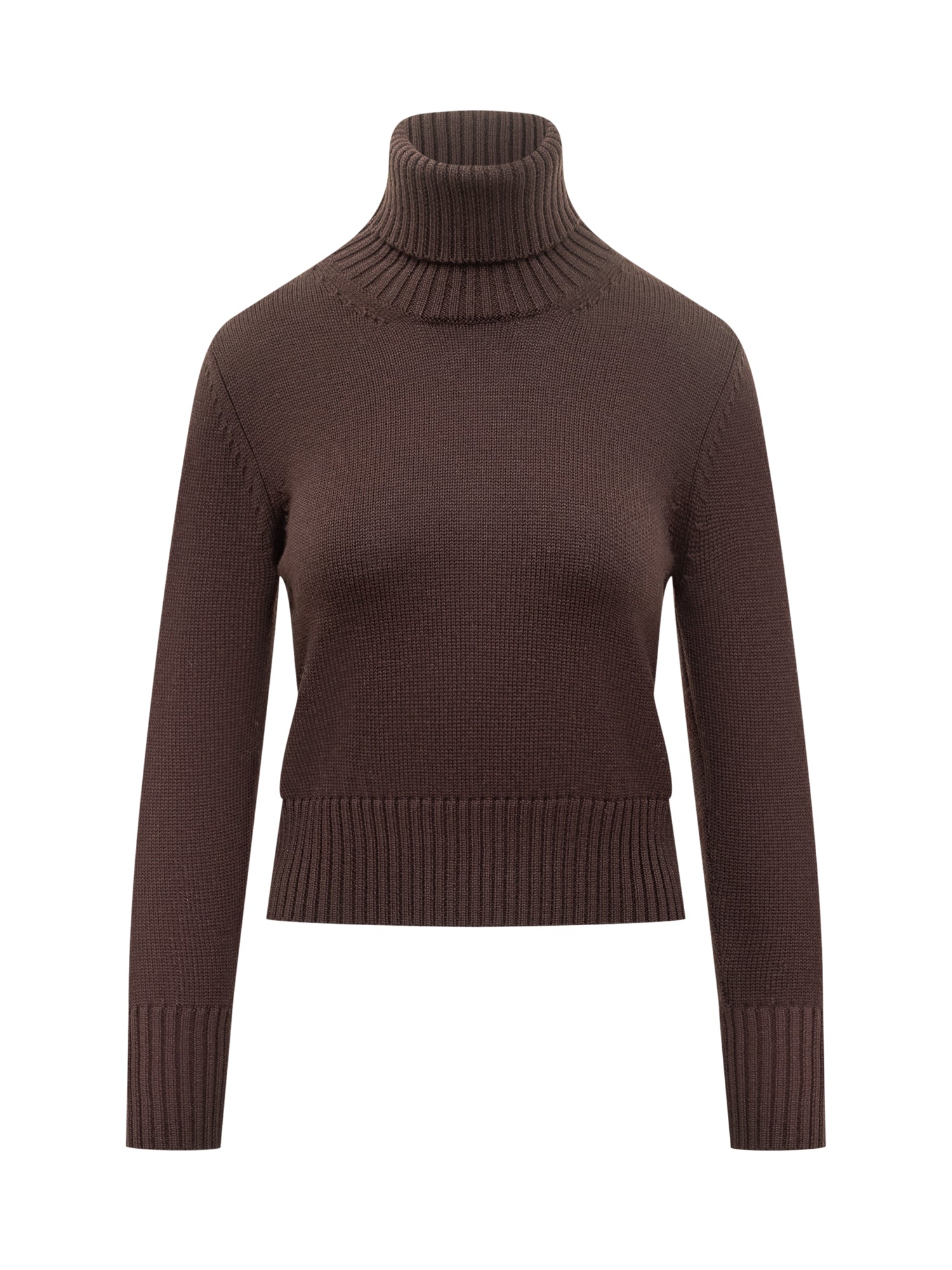 Dolcevita Alpha Studio in morbida lana marrone con vestibilità regolare e lavorazione a costine su collo, polsini e fondo. Un capo essenziale e raffinato per look eleganti e casual.