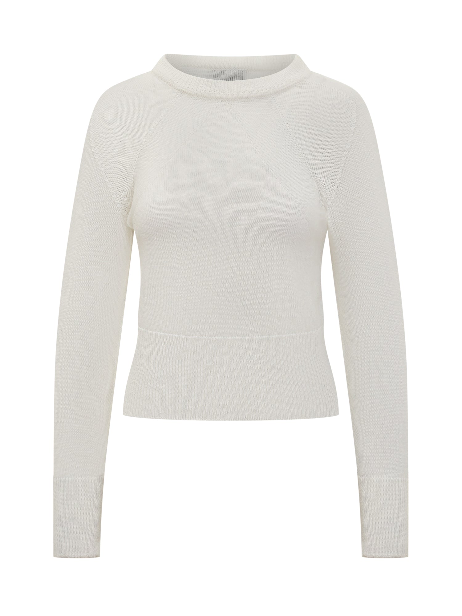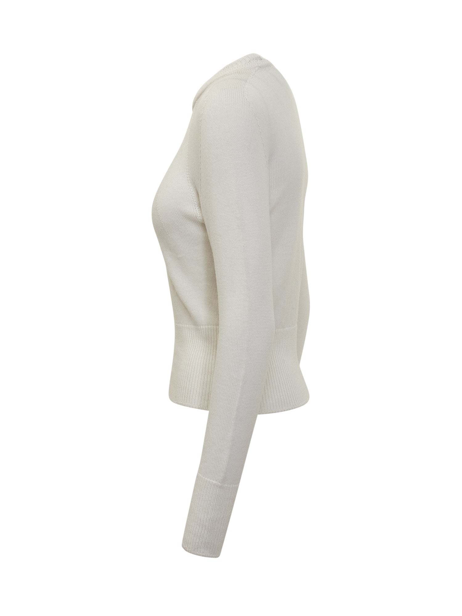 Maglia Alpha Studio in lana bianca con girocollo e maniche lunghe. Un design pulito e aderente che valorizza la silhouette con eleganza e semplicità.