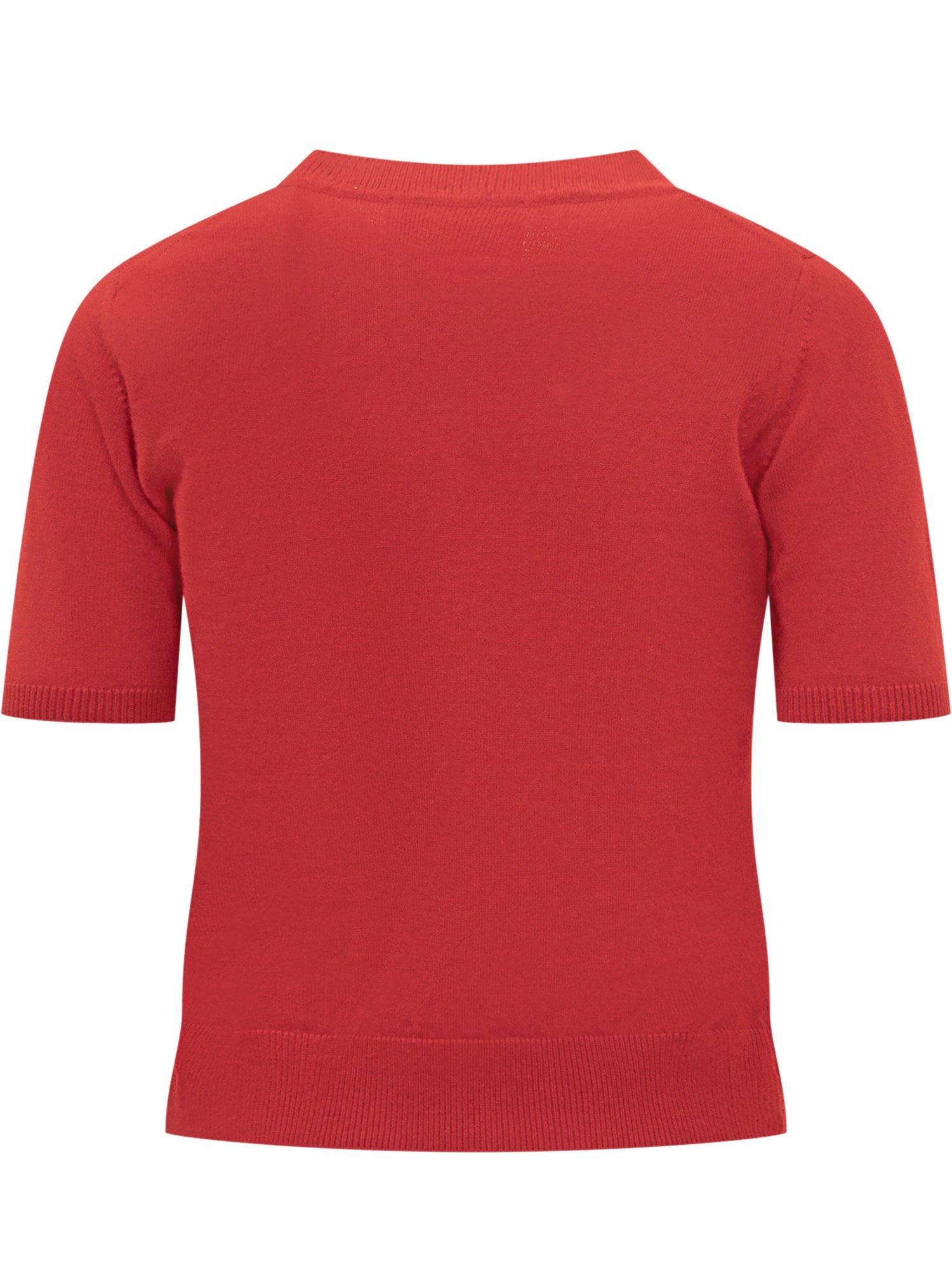 Maglia Alpha Studio in lana leggera rossa con girocollo e maniche corte. Un capo essenziale dal taglio pulito, perfetto per look raffinati e versatili.