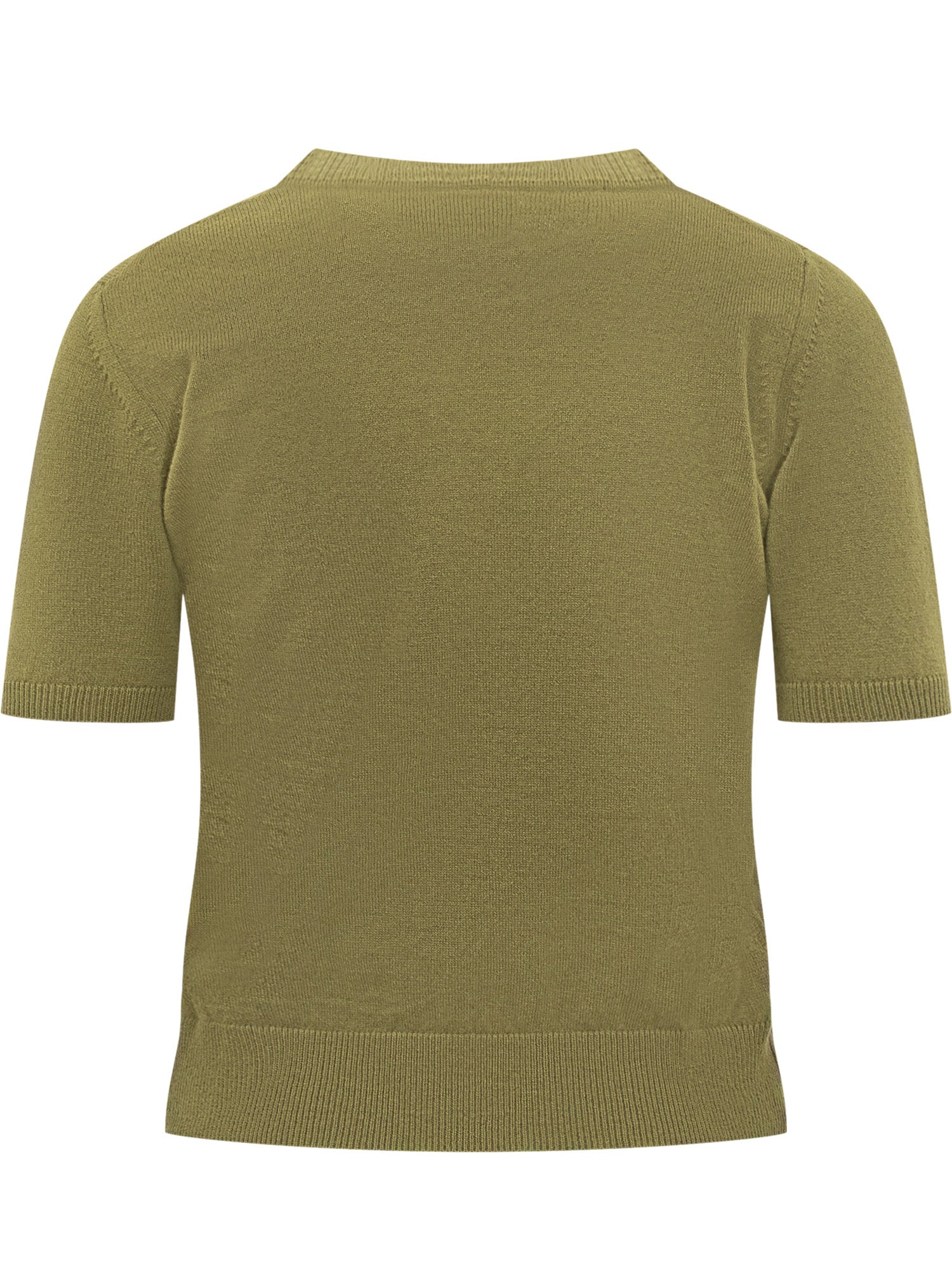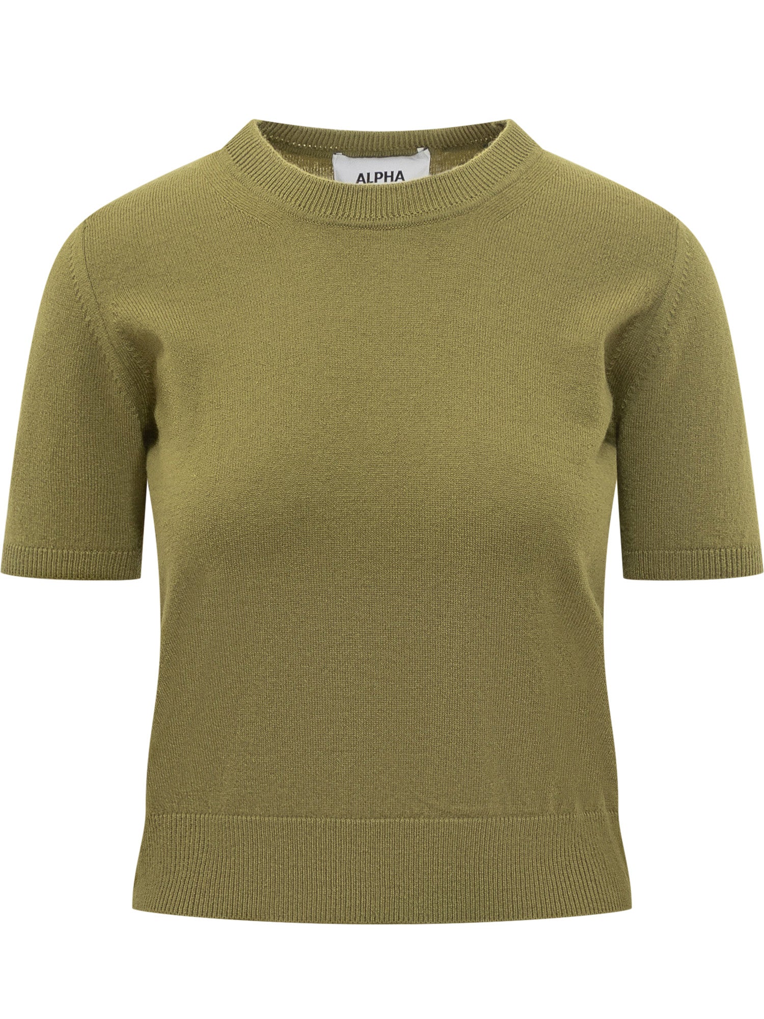 Maglia Alpha Studio in morbida maglia verde con maniche corte e collo tondo.