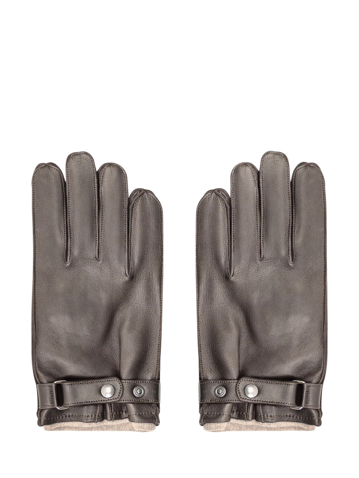 Guanti Alpo in morbida pelle marrone con interno in lana per calore e comfort. Presentano fibbia regolabile e bottoni metallici.