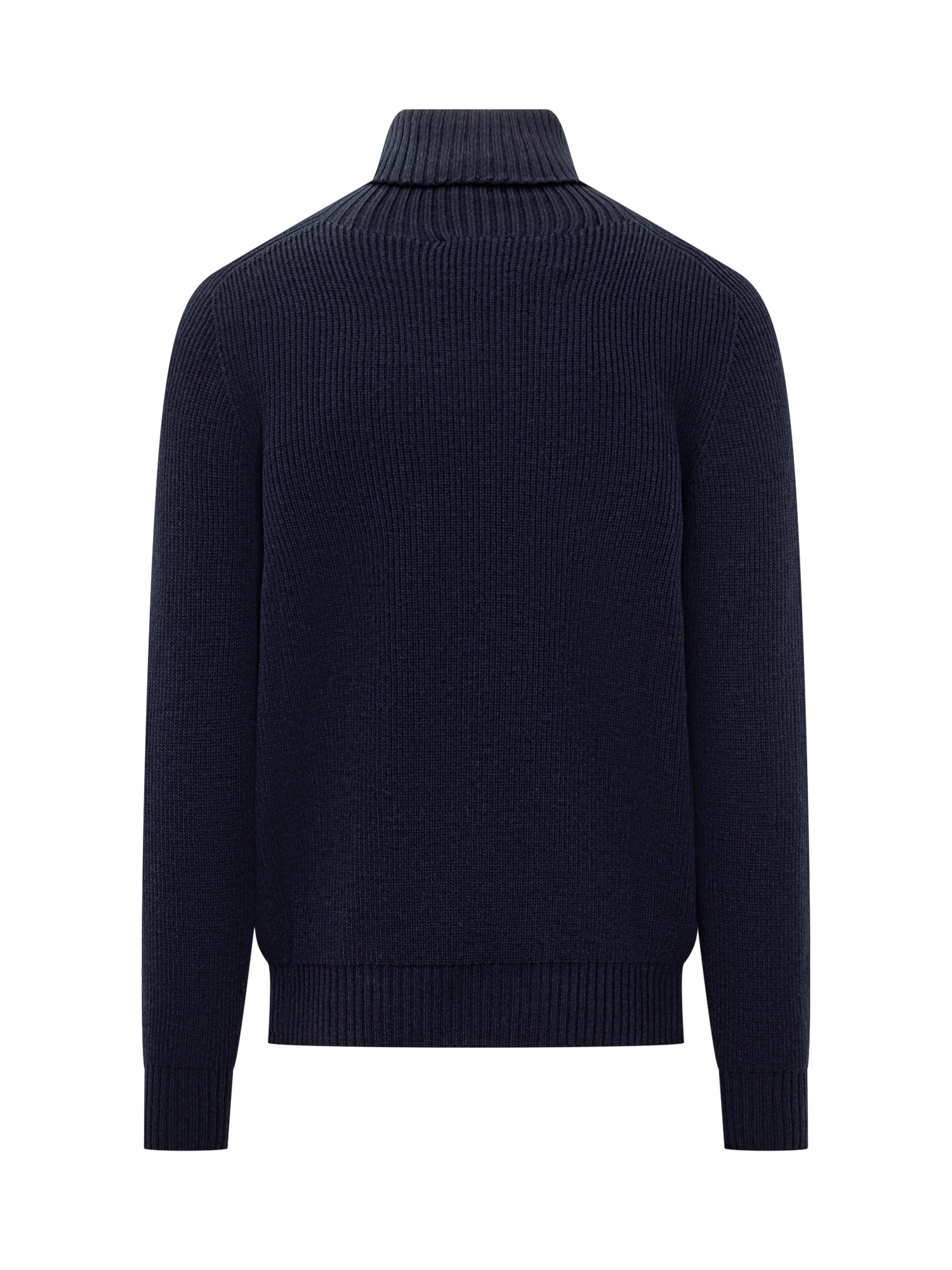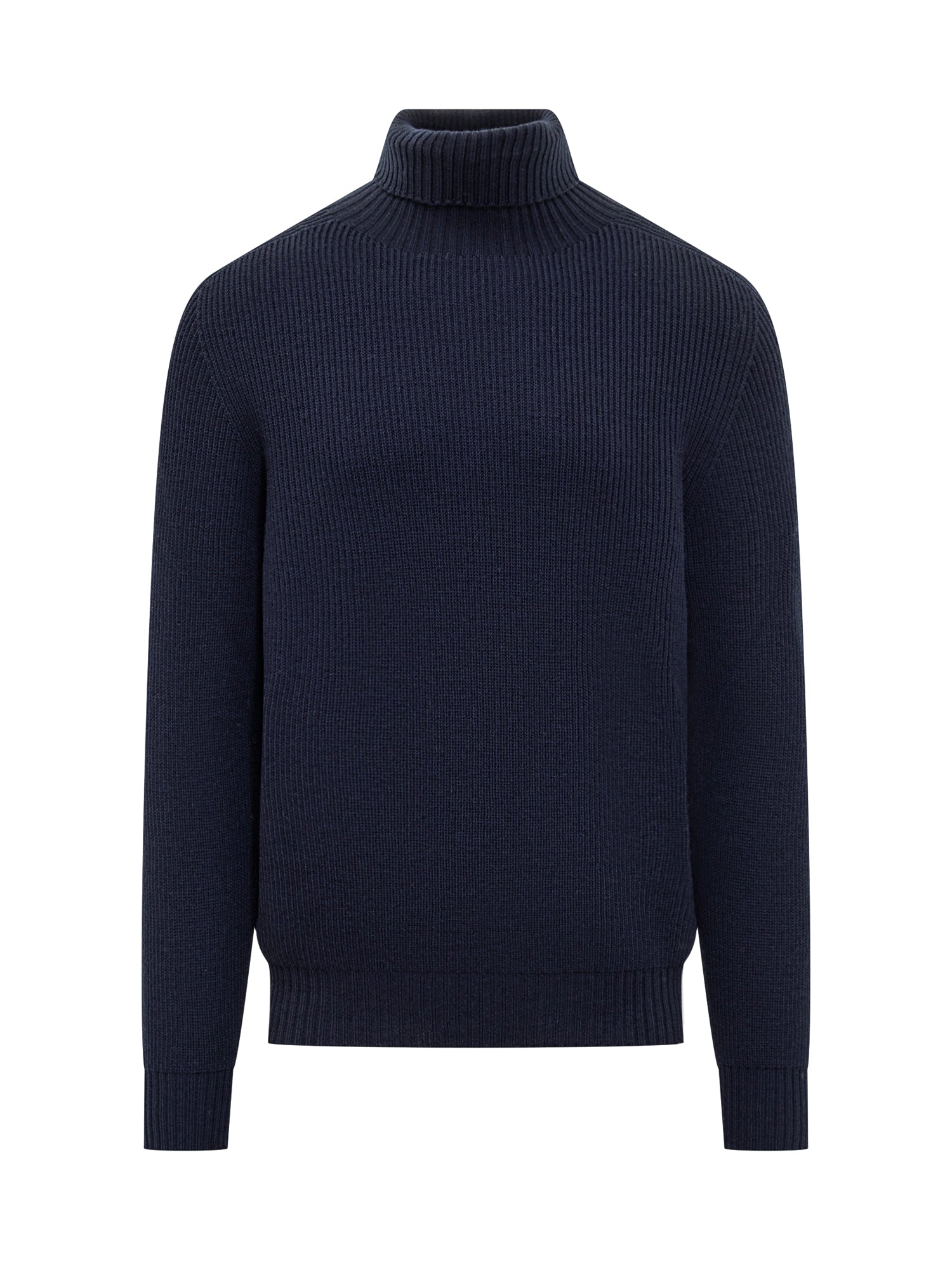Dolcevita Amaranto in lana blu navy, lavorazione a maglia rasata con vestibilità classica.