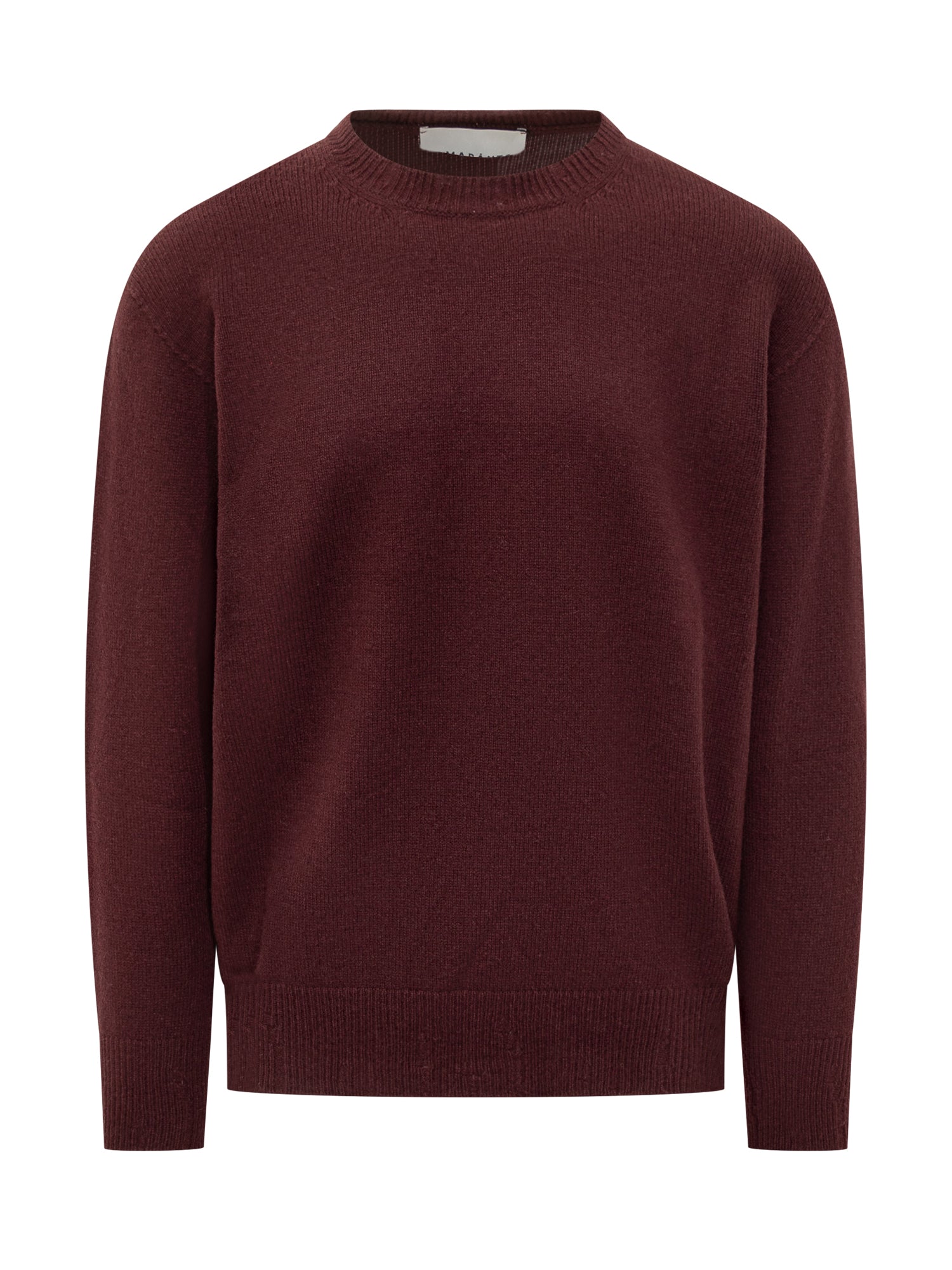 Maglione Amaranto in lana bordeaux con collo girocollo e linea essenziale.
