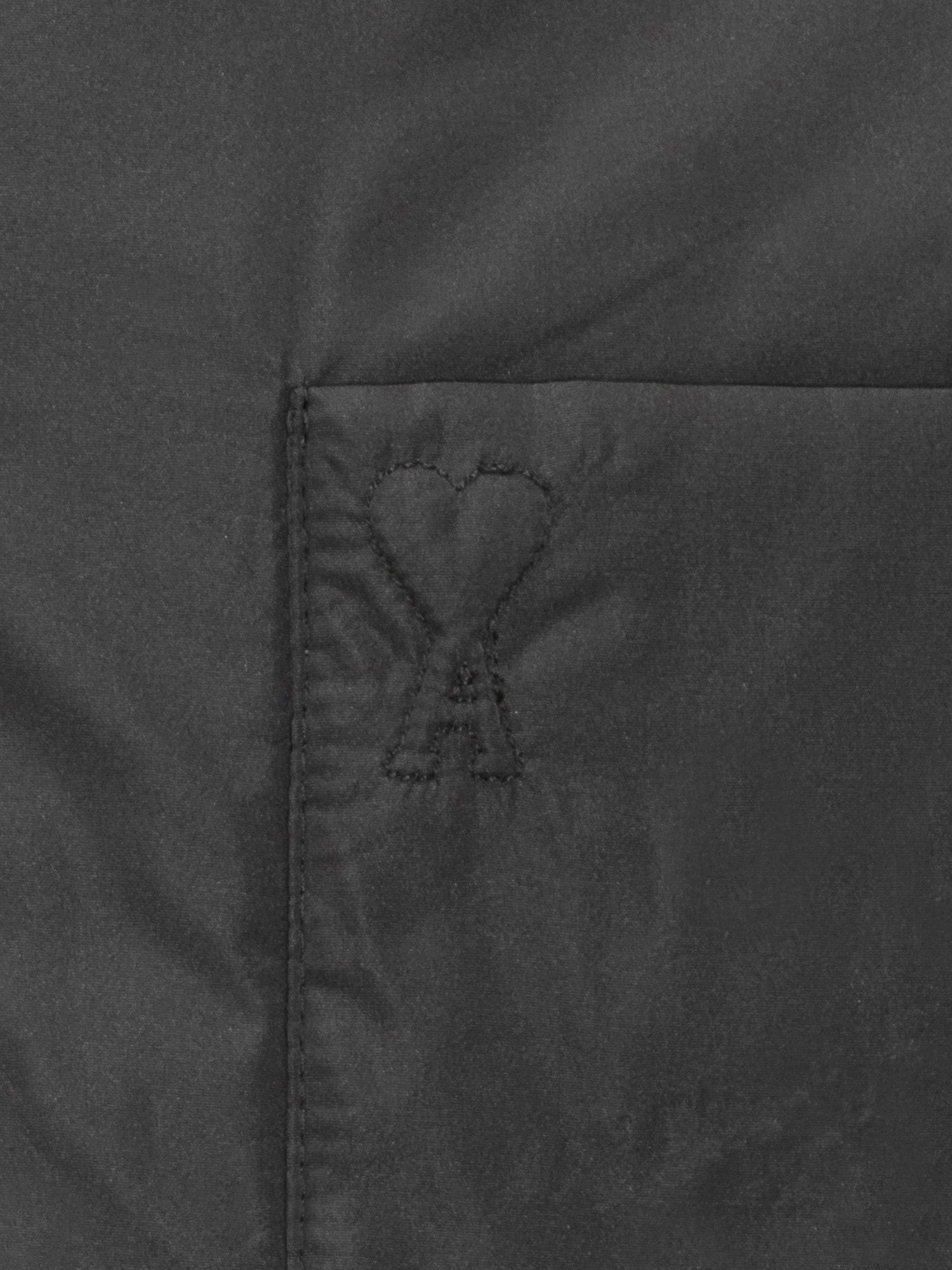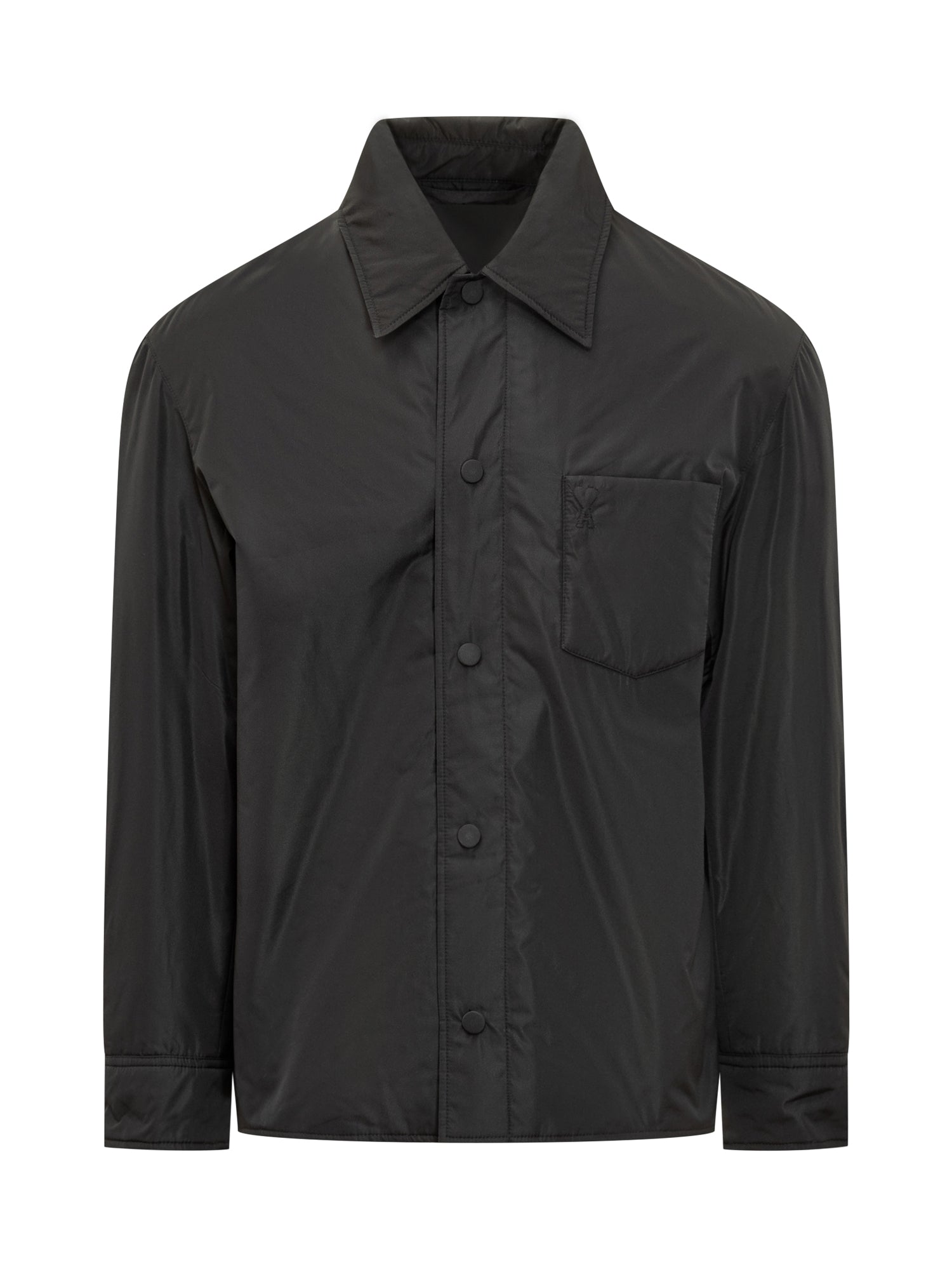 Camicia leggera Ami Alexandre Mattiussi in tessuto tecnico nero, chiusura a bottoni a pressione, tasca sul petto con logo tono su tono e colletto classico.