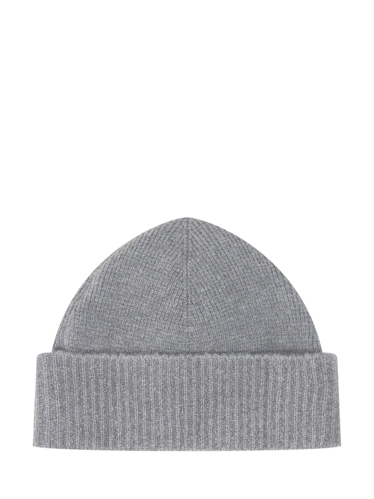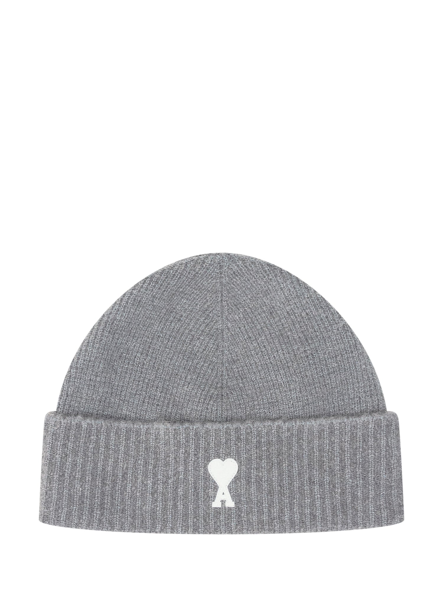 Beanie Ami Alexandre Mattiussi grigio con risvolto a coste e logo ricamato sul davanti.