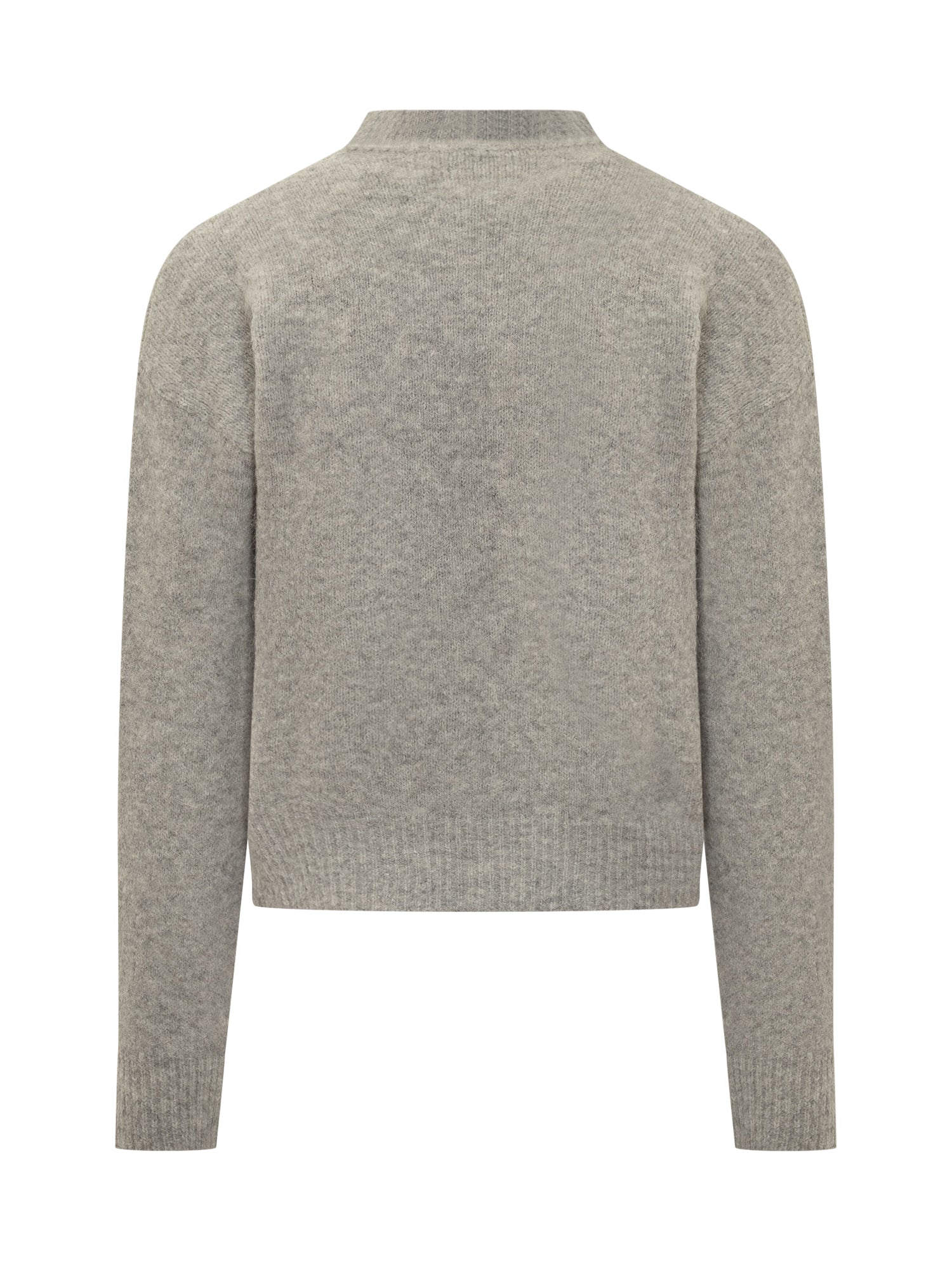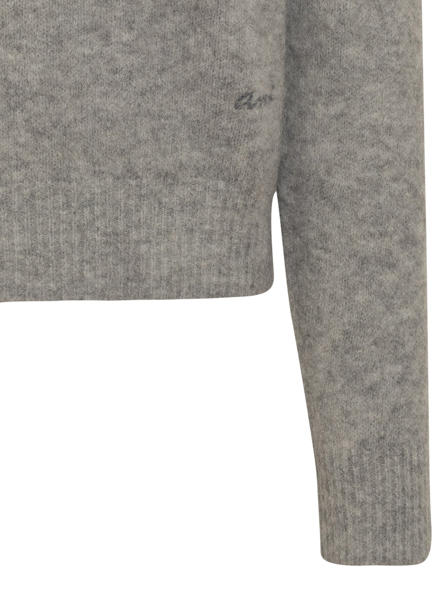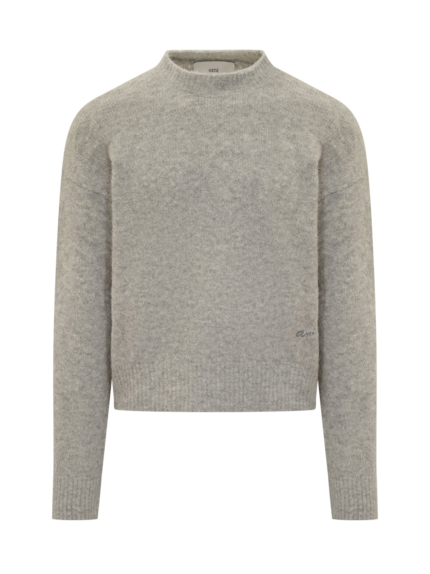 Maglione Ami Alexandre Mattiussi in morbida lana grigia, girocollo e logo ricamato tono su tono sul fondo.