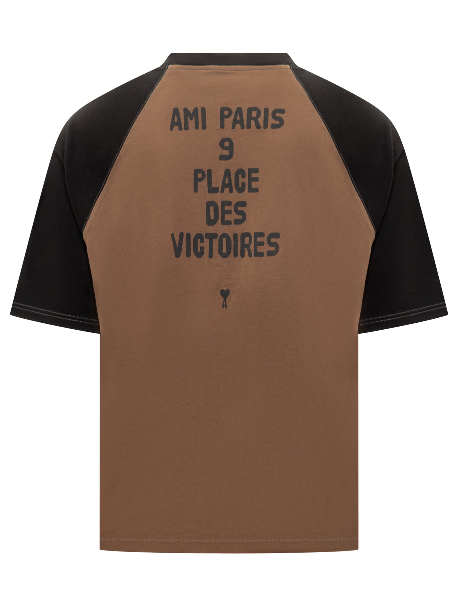 T-shirt Ami Alexandre Mattiussi in cotone bicolore marrone e nero, maniche raglan e logo Ami Paris ricamato sul petto, numero 9 applicato sulla manica.