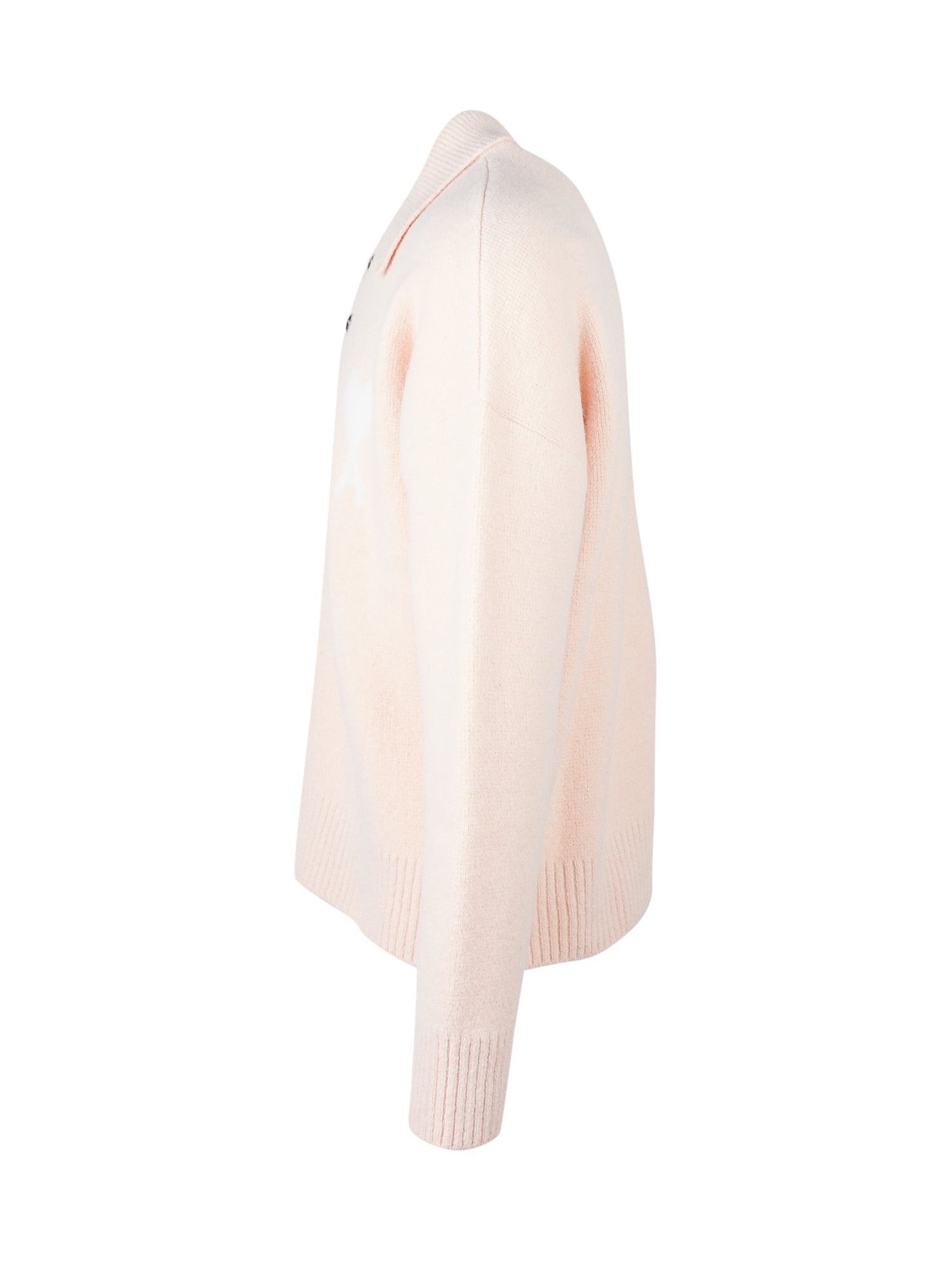Maglione rosa Ami con colletto e chiusura parziale a bottoni. Realizzato in morbido filato, è arricchito dal logo Ami de Coeur sul petto.