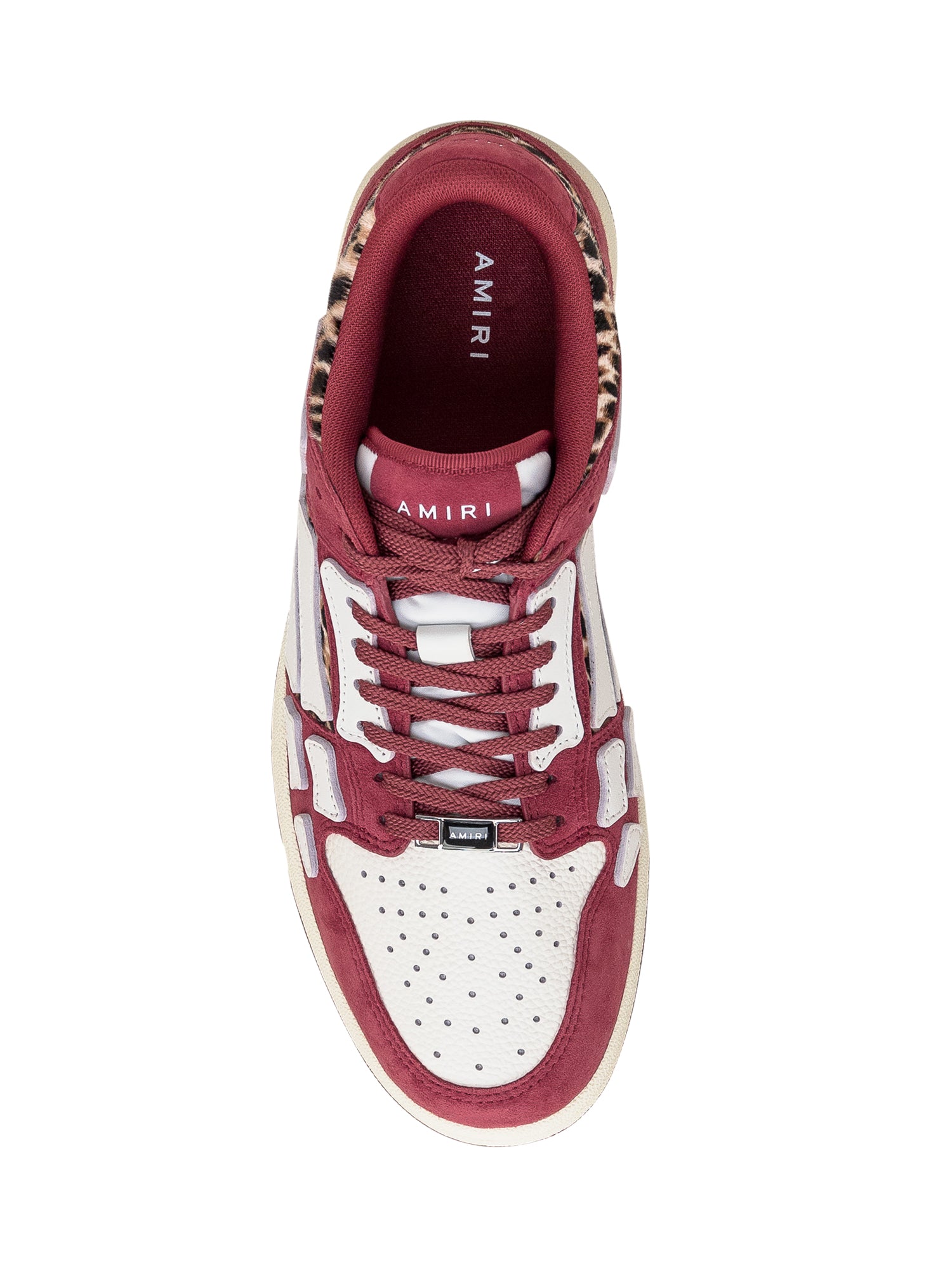 Sneaker bassa in pelle scamosciata con inserti in pelliccia. Chiusura con maxi lacci. Logo sulla linguetta e sul tallone. Applicazione di patch Skeleton in pelle sul lato. Motivo Leopard in pelliccia.