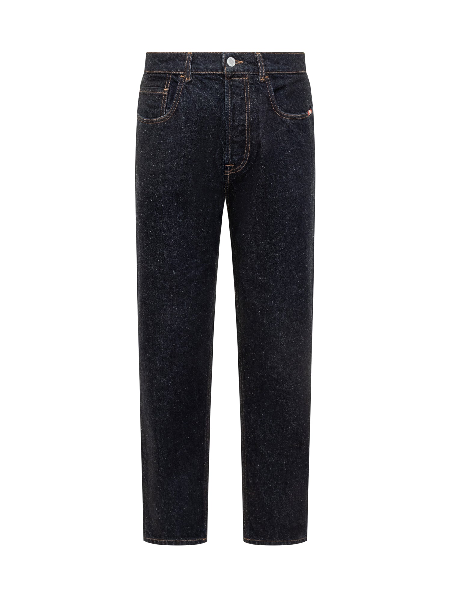 Jeans Amish da uomo in denim nero lavaggio scuro, con taglio slim fit e cuciture a contrasto.