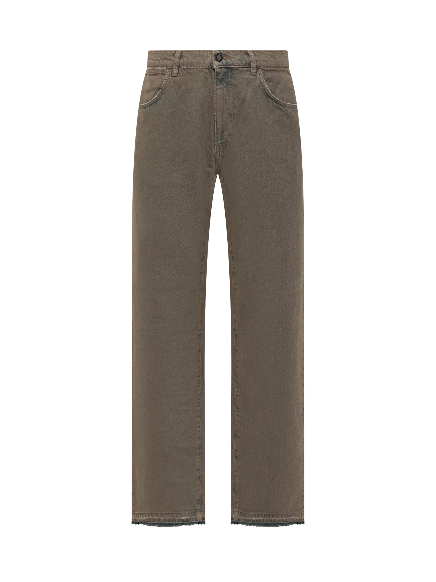 Pantaloni marroni Amish in cotone con vita media e gamba dritta.