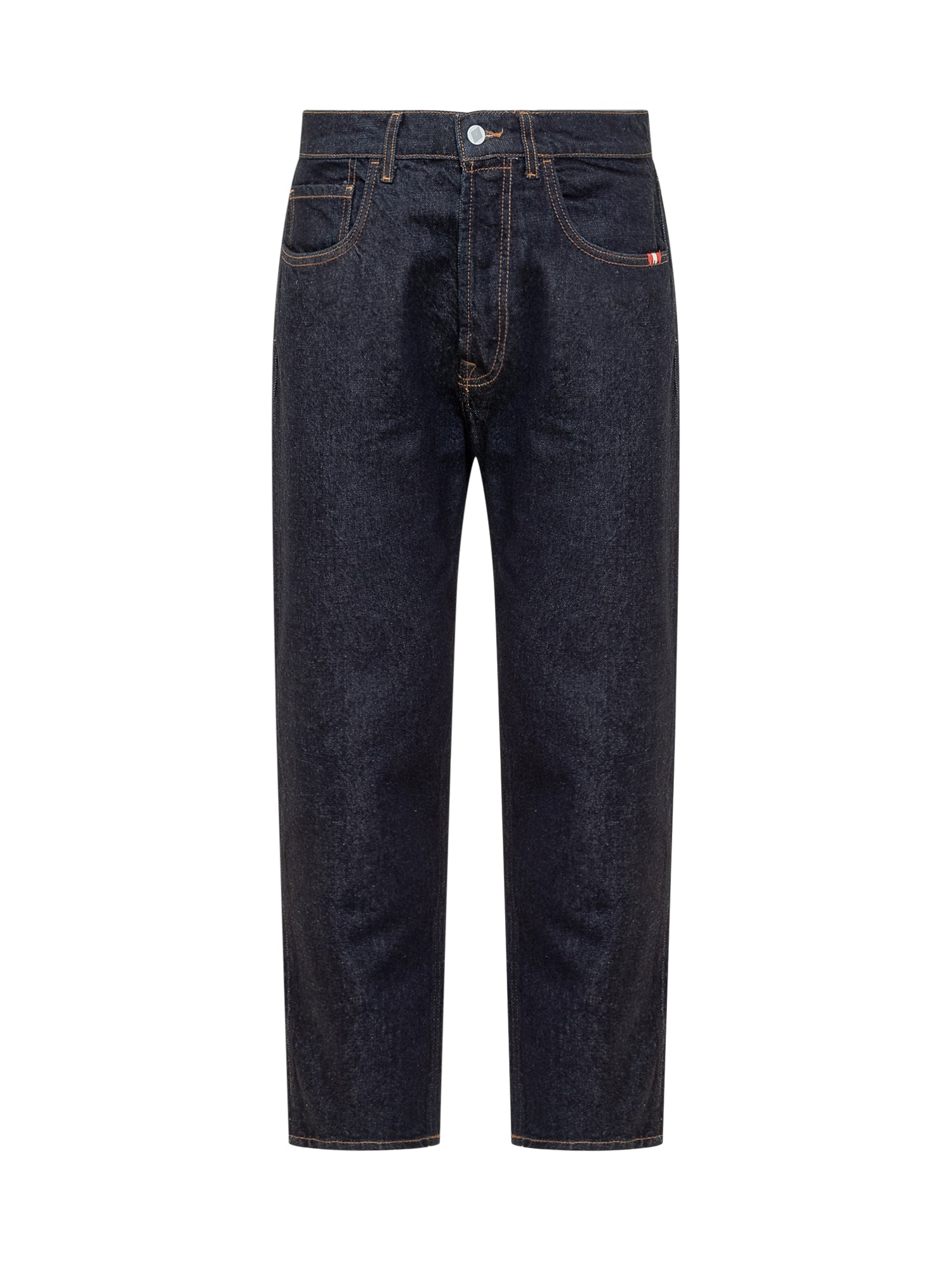 Jeans lunghi carrot fit. Chiusura con bottoni. Passanti per cintura. Cinque tasche.