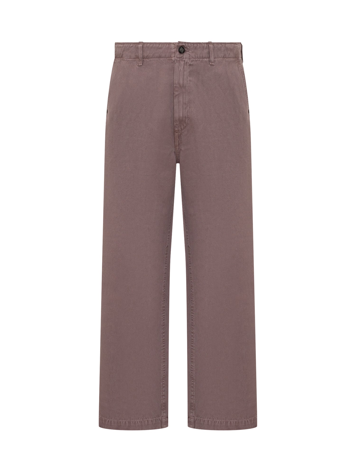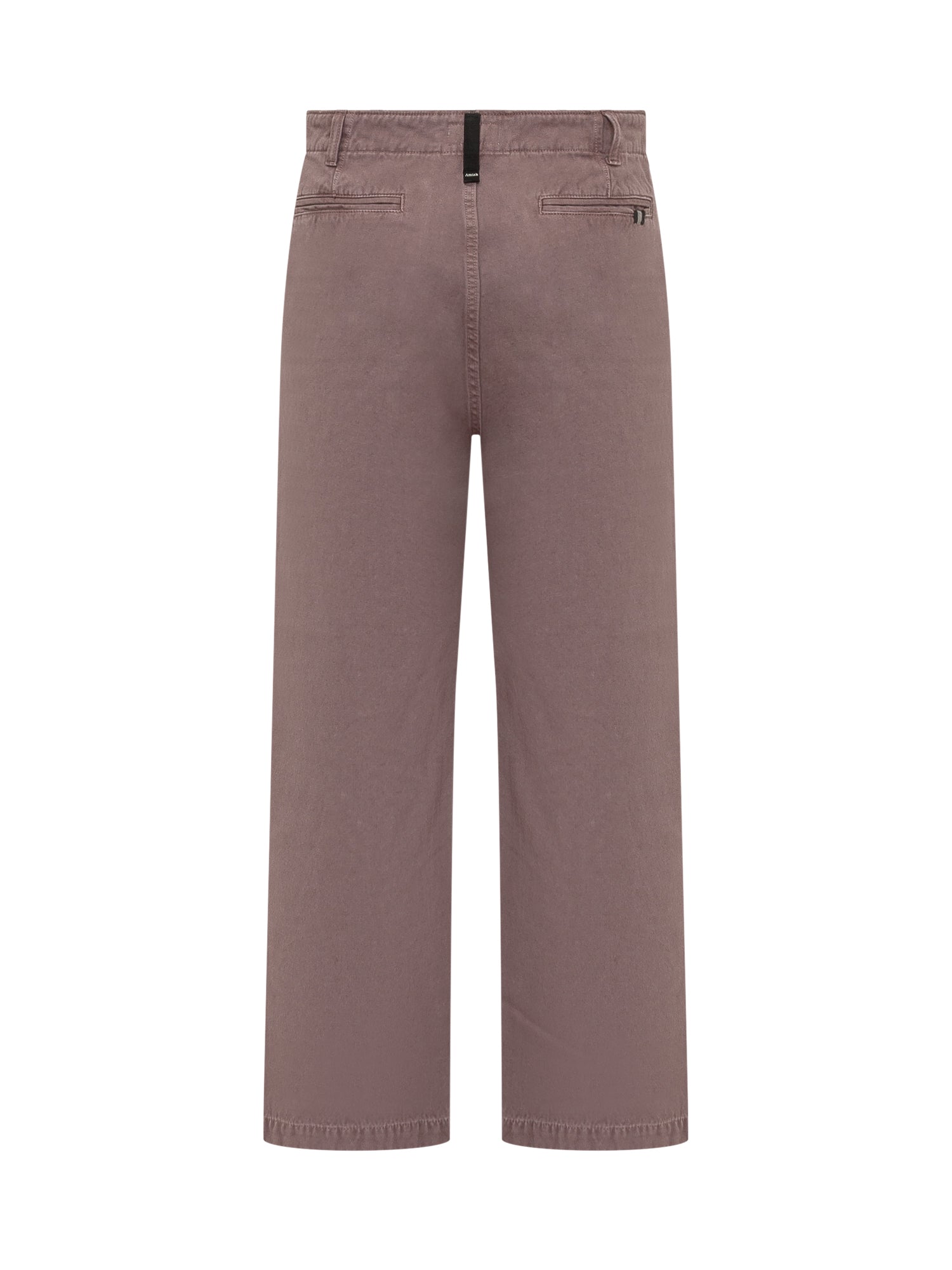 Pantaloni lunghi viola. Gamba dritta. Chiusura con zip e bottone. Passanti per cintura. 4 tasche.