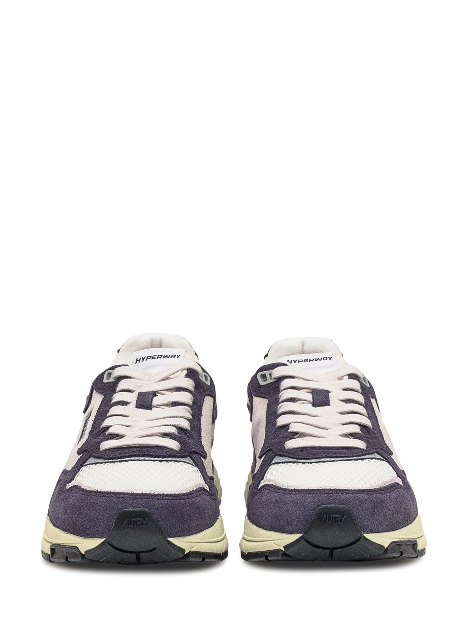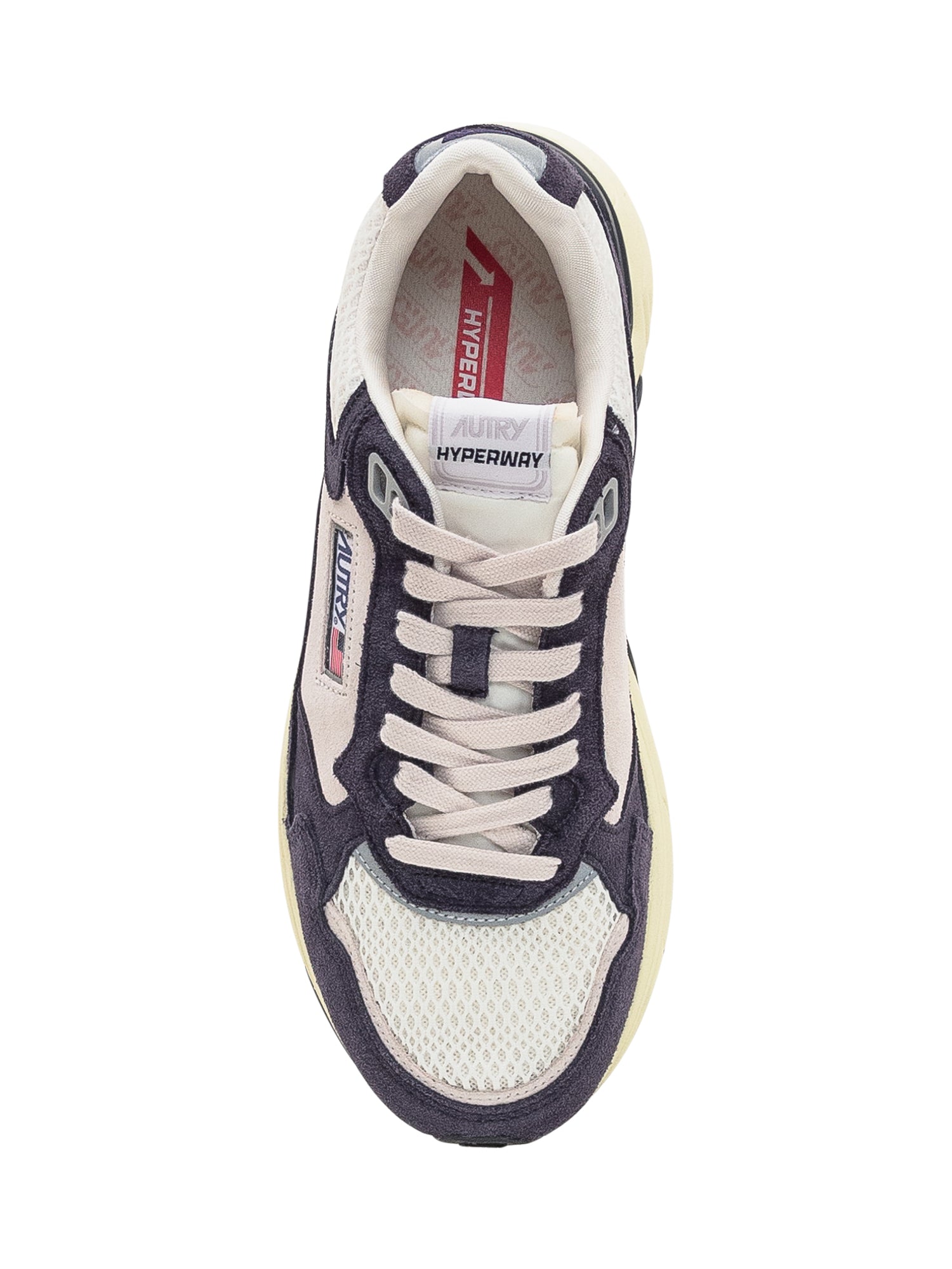 Sneakers Autry Hyperwave Low in mesh e suede bianco e blu navy con dettagli grigi. Suola in gomma.
