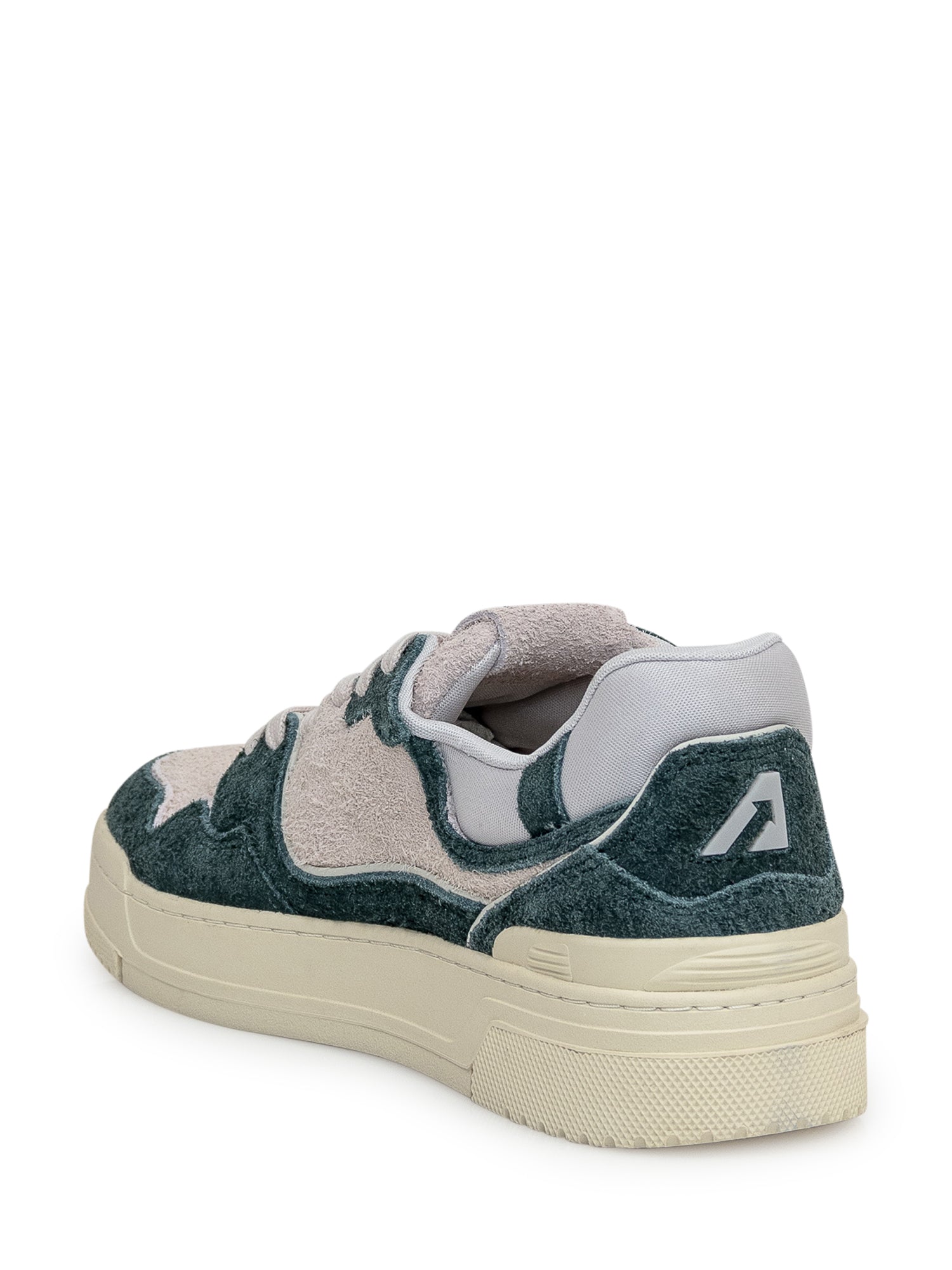 Sneaker in pelle scamosciata. Dettaglia a contrasto. Chiusura con lacci. Logo su linguetta, lato e retro.