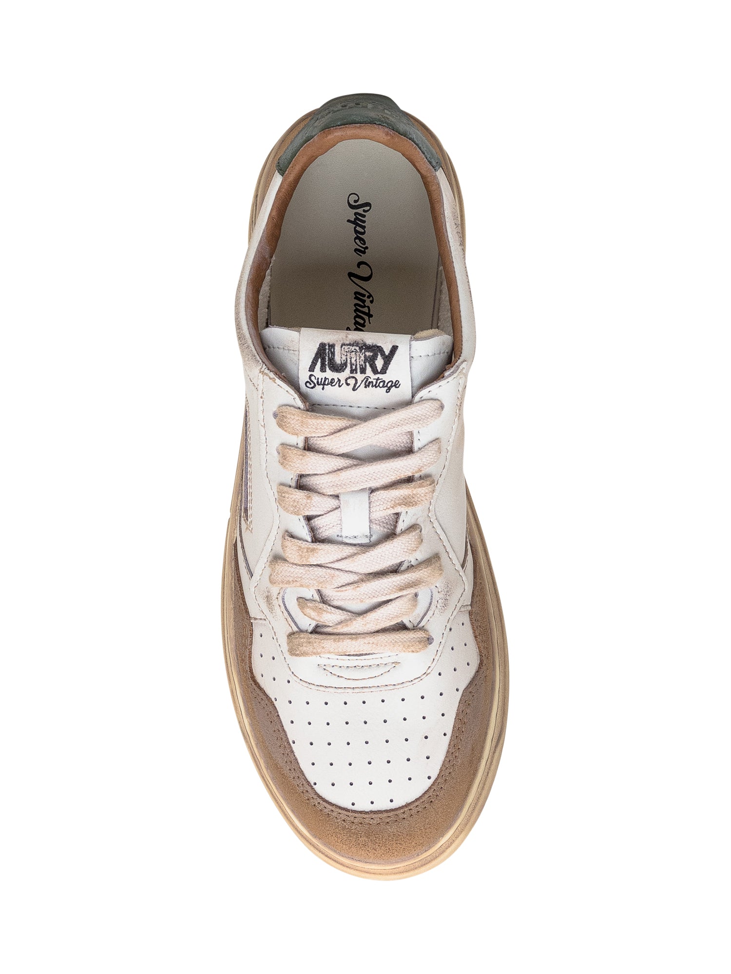 Sneaker in pelle bianca effeto rovinato. Punta con microfori. Lacci piatti.Label con ricamo cucita sulla linguetta. Colletto imbottito. Logo AUTRY sul lato e sul retro.