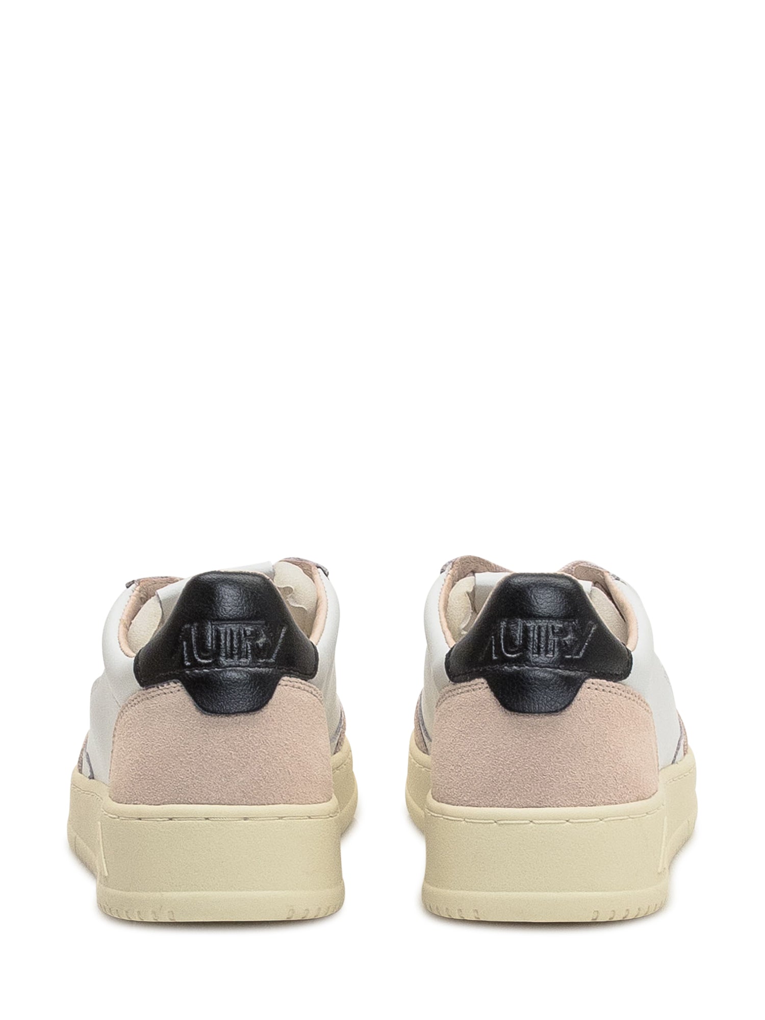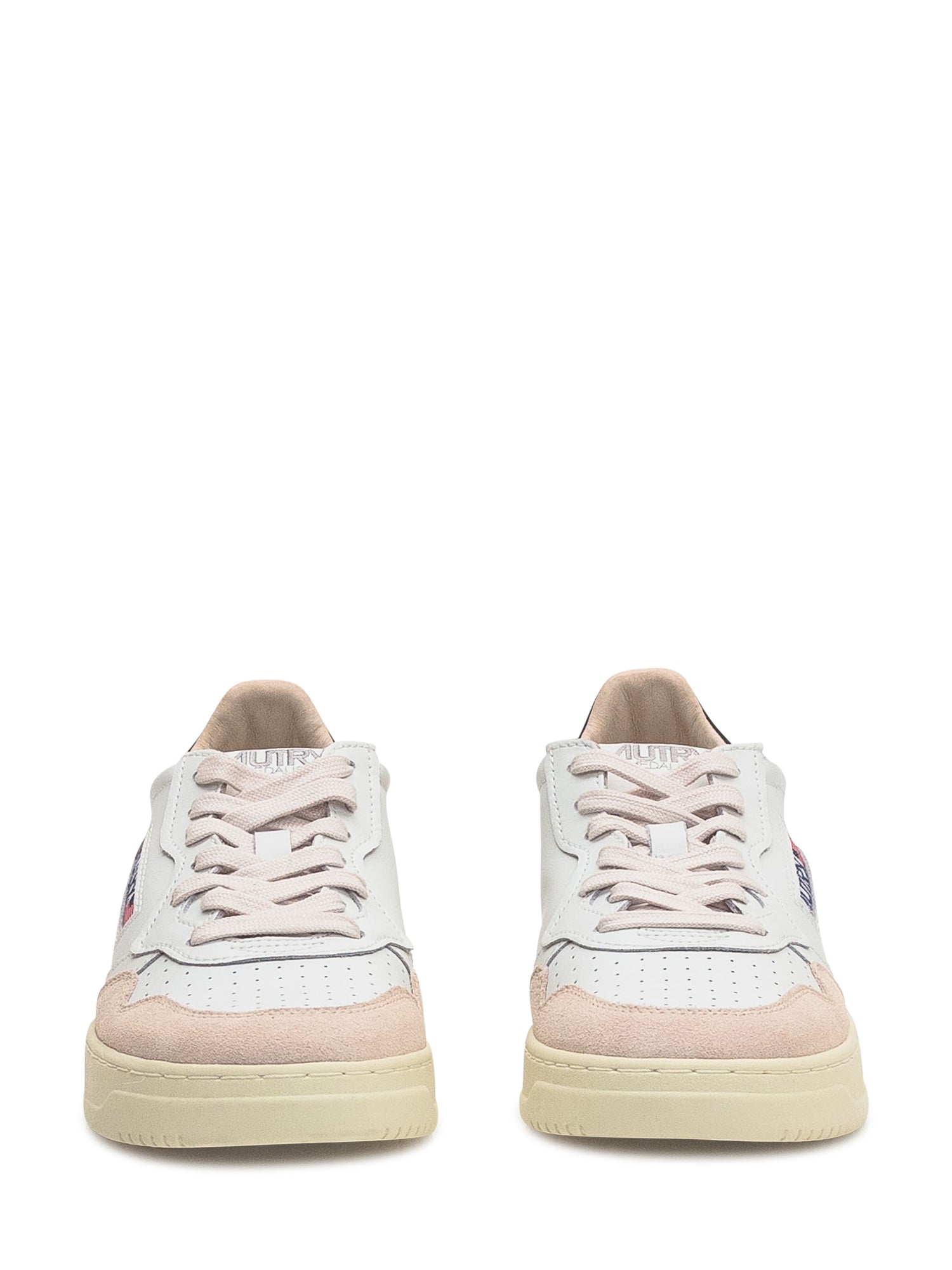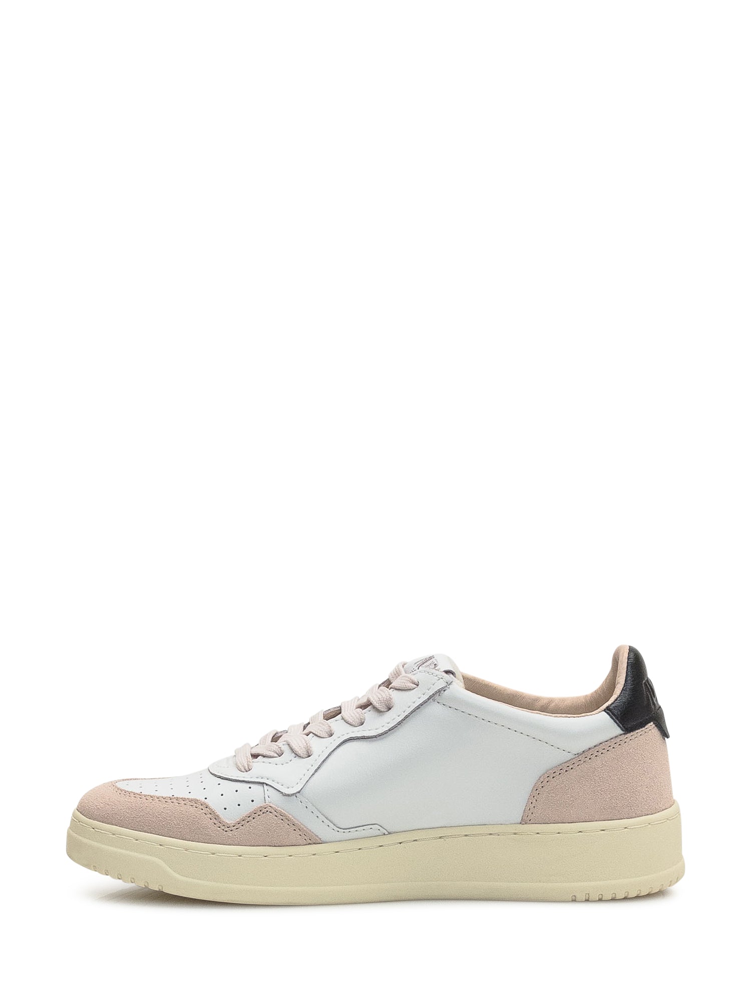 Sneakers Autry Medalist in pelle bianca con dettagli in suede rosa e tallone nero.