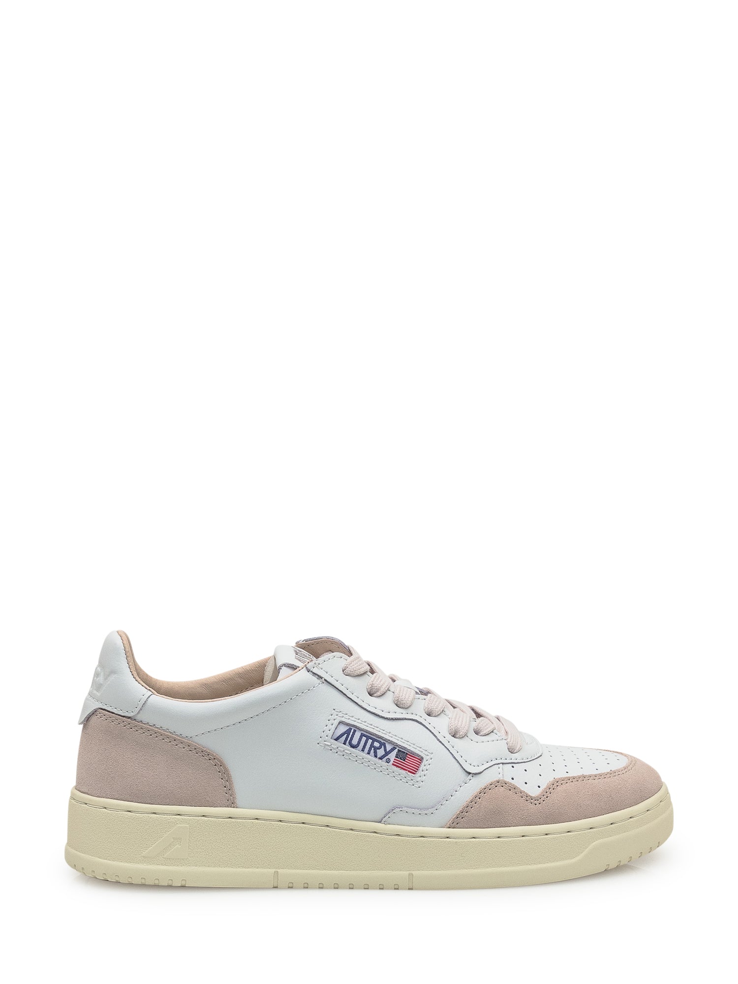 Sneakers Autry Medalist in pelle liscia con inserti in suede beige. Design rétro ispirato agli anni '80, suola in gomma per massimo comfort.