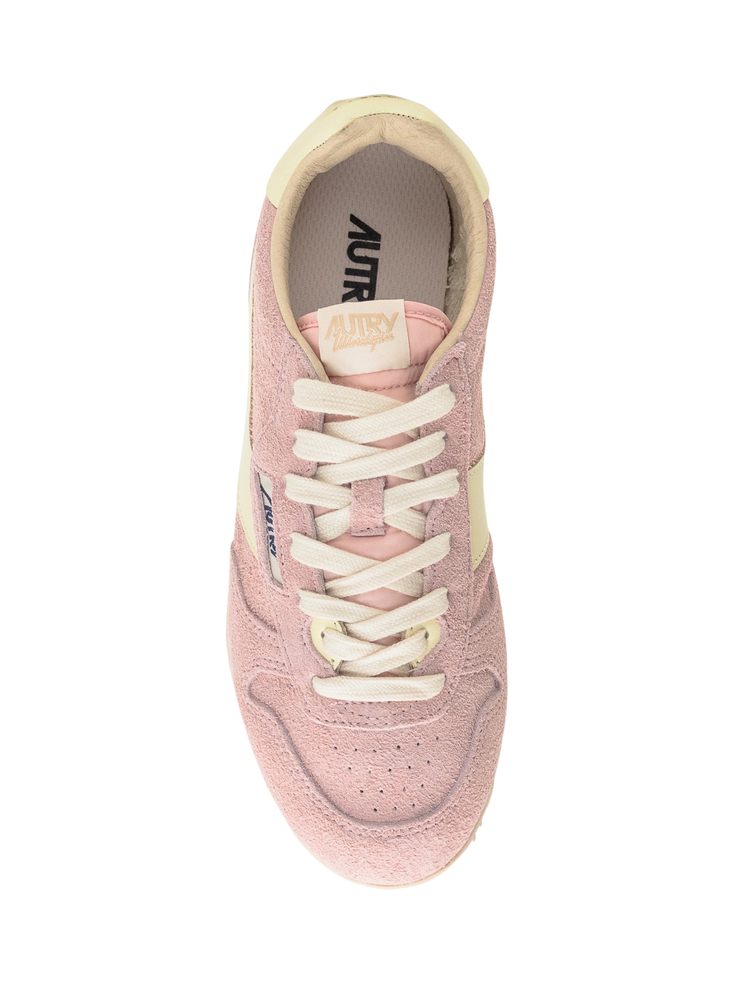 Scarpa rosa in tessuto con effetto scamosciato. Dettagli laterali. Suola in gomma. Chiusura frontale con lacci.