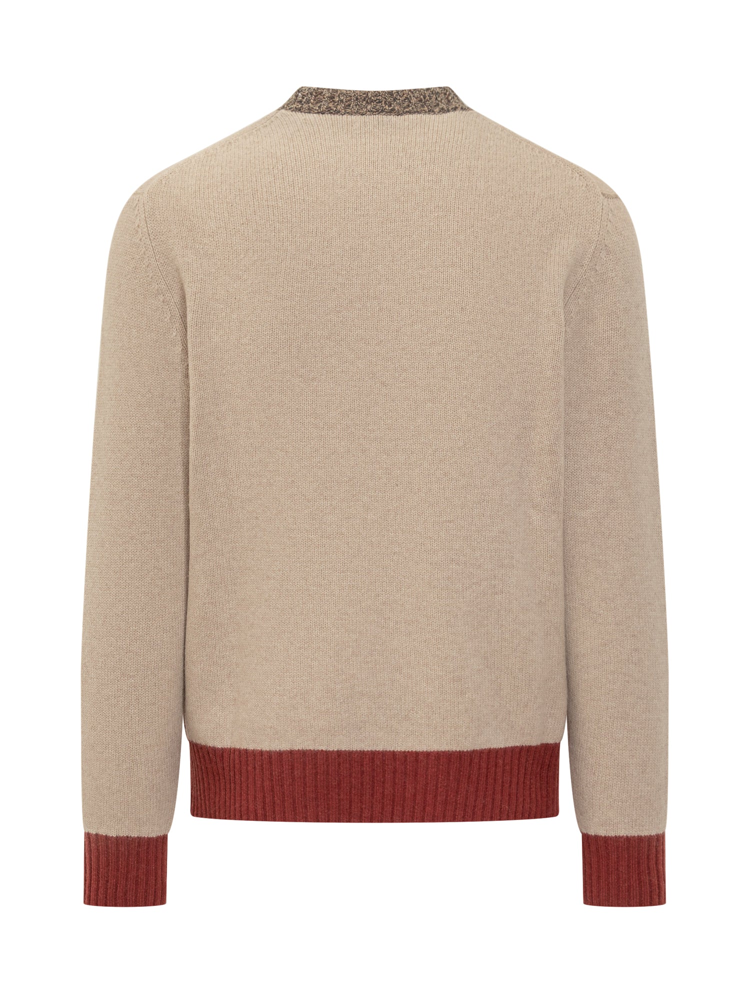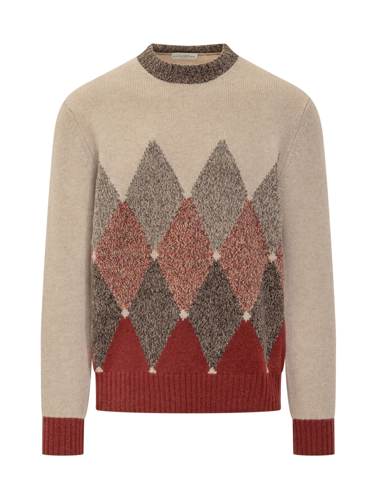 Maglia Ballantyne in lana con girocollo e motivo a rombi nei toni beige, marrone e rosso.