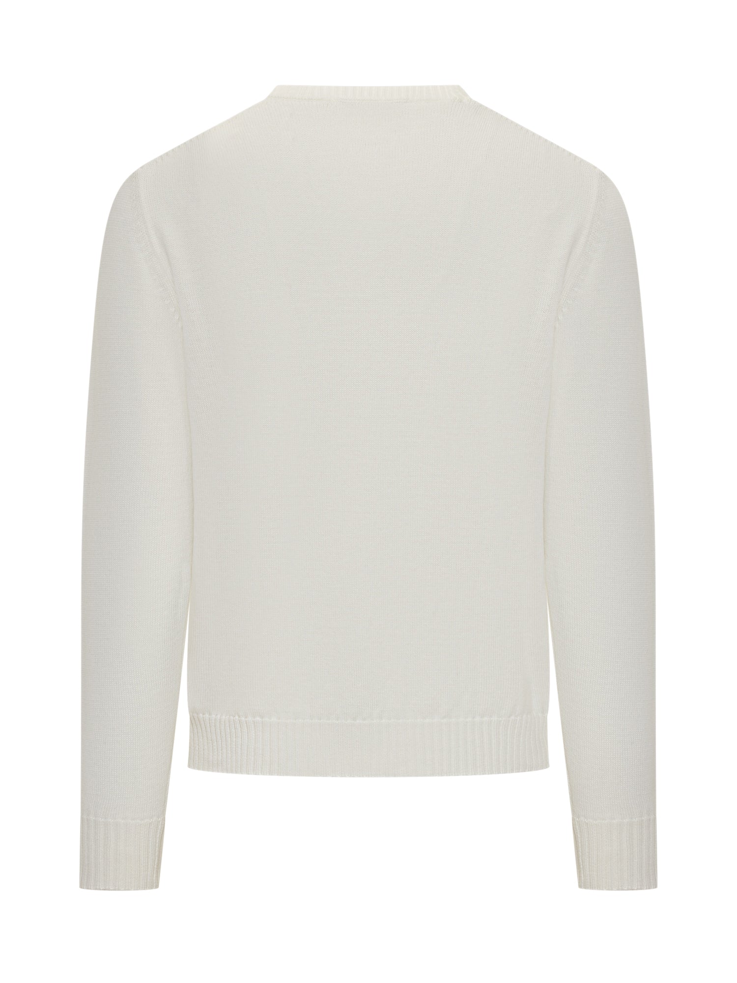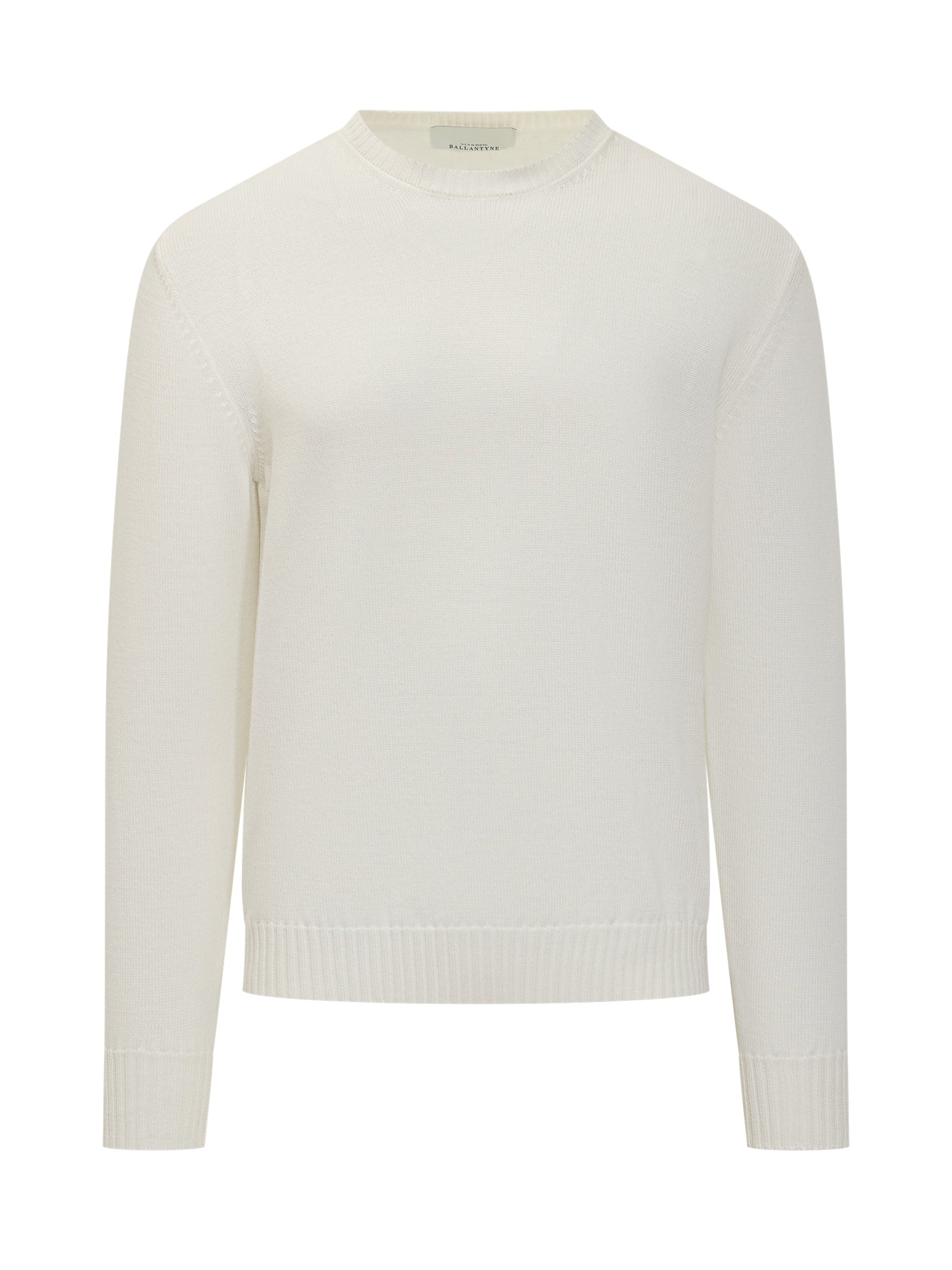 Maglia Ballantyne bianca a girocollo in lana, con linee pulite e dettagli a coste.