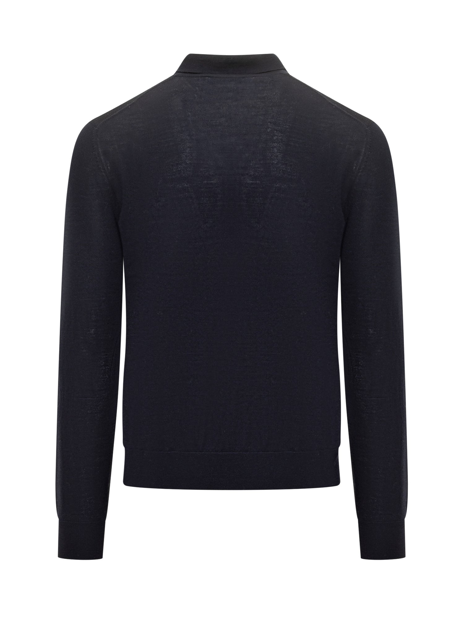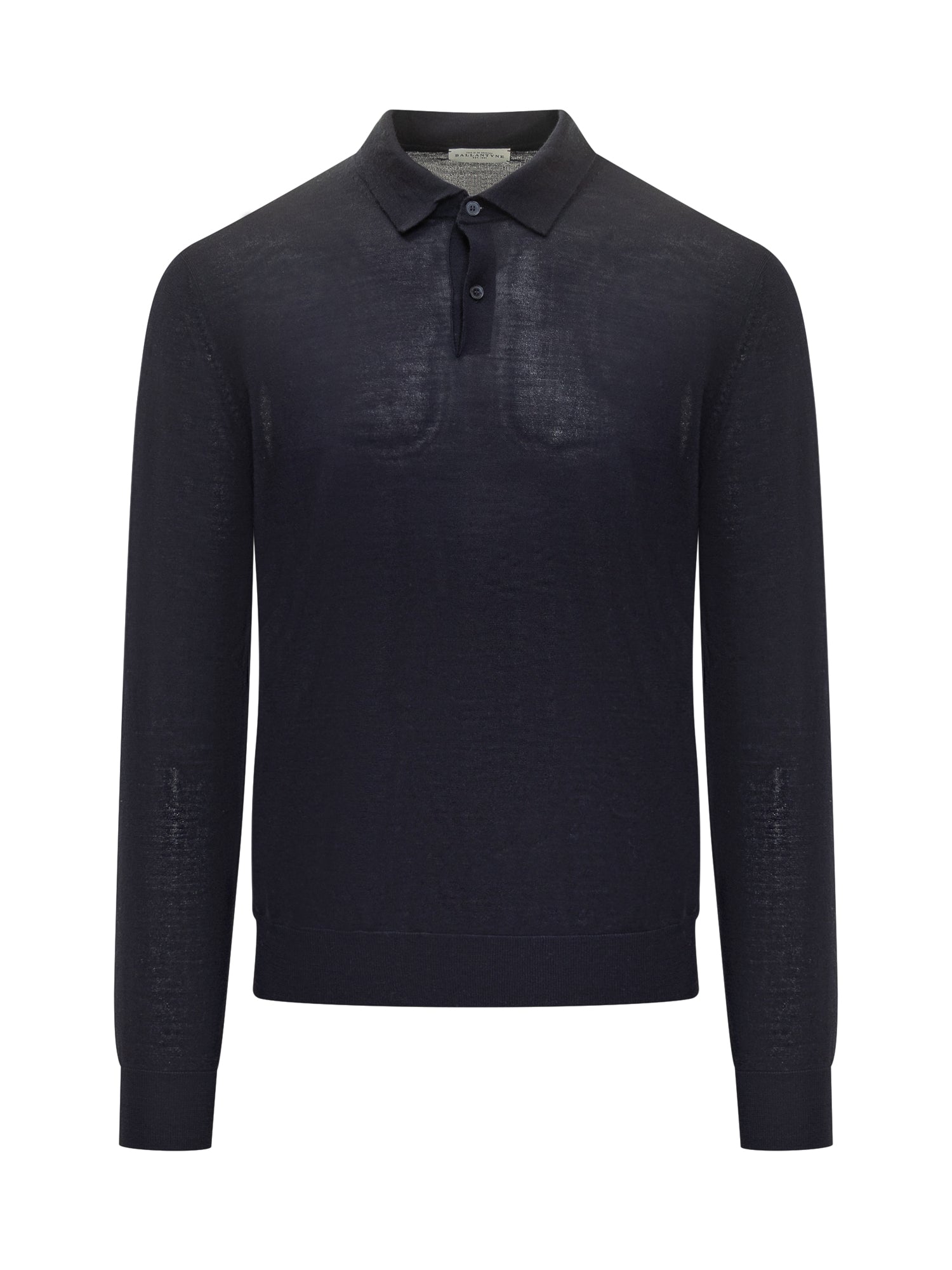 Polo Ballantyne in pura lana blu, con maniche lunghe e chiusura a tre bottoni.