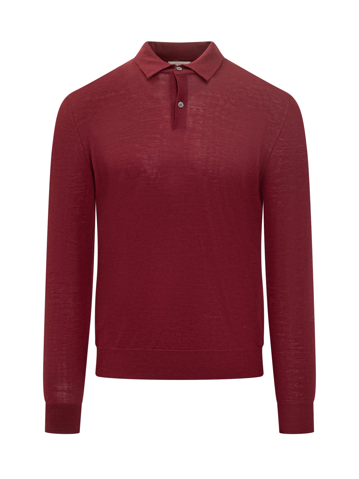 Polo Ballantyne in lana bordeaux, con maniche lunghe e chiusura a due bottoni.