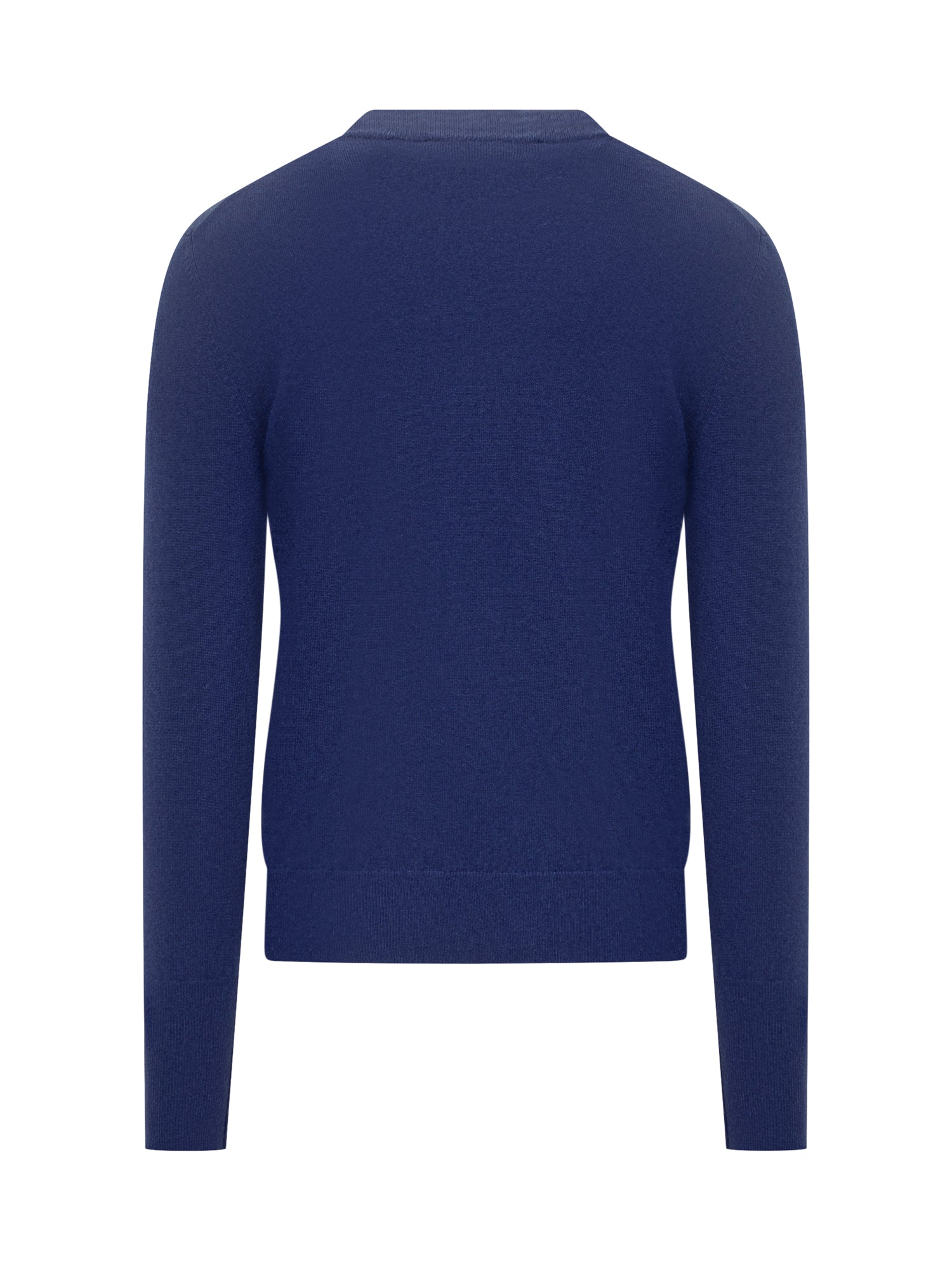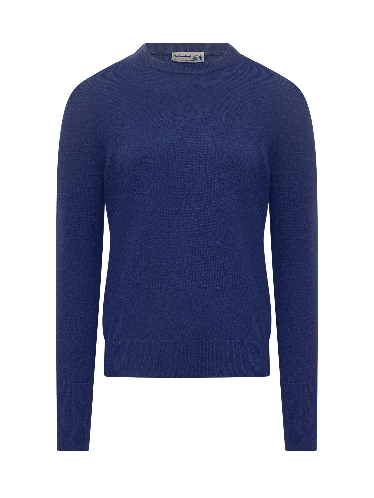 Pullover Ballantyne in lana blu con linea essenziale e girocollo classico.