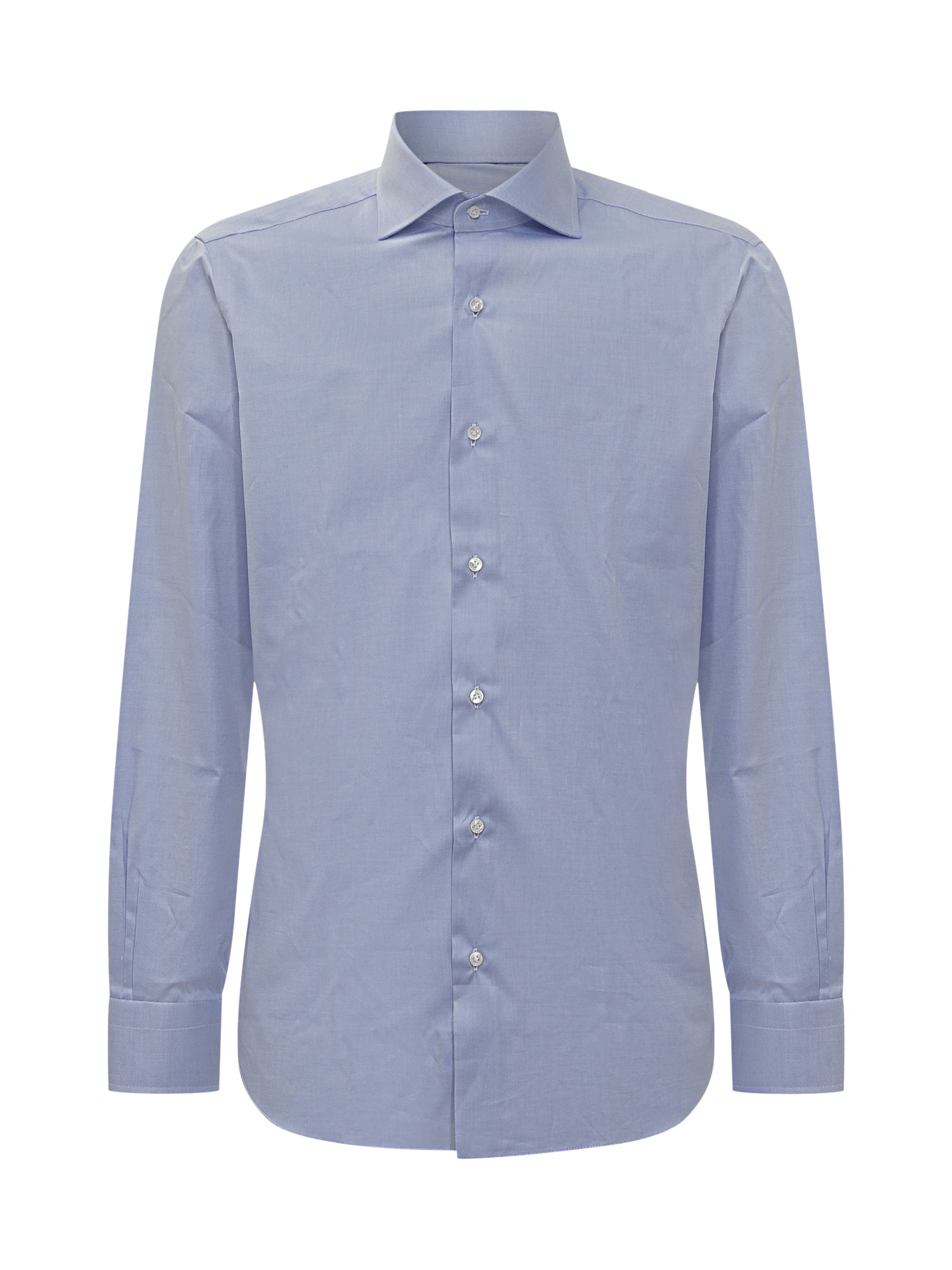 Camicia Barba in cotone azzurro, design elegante con colletto classico e maniche lunghe.