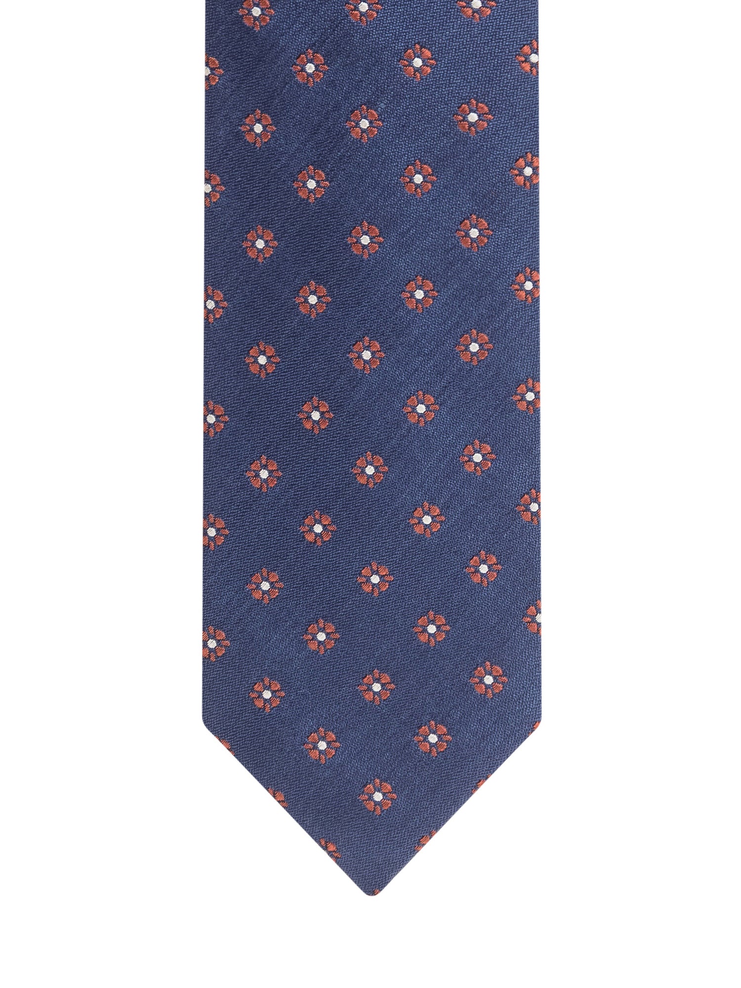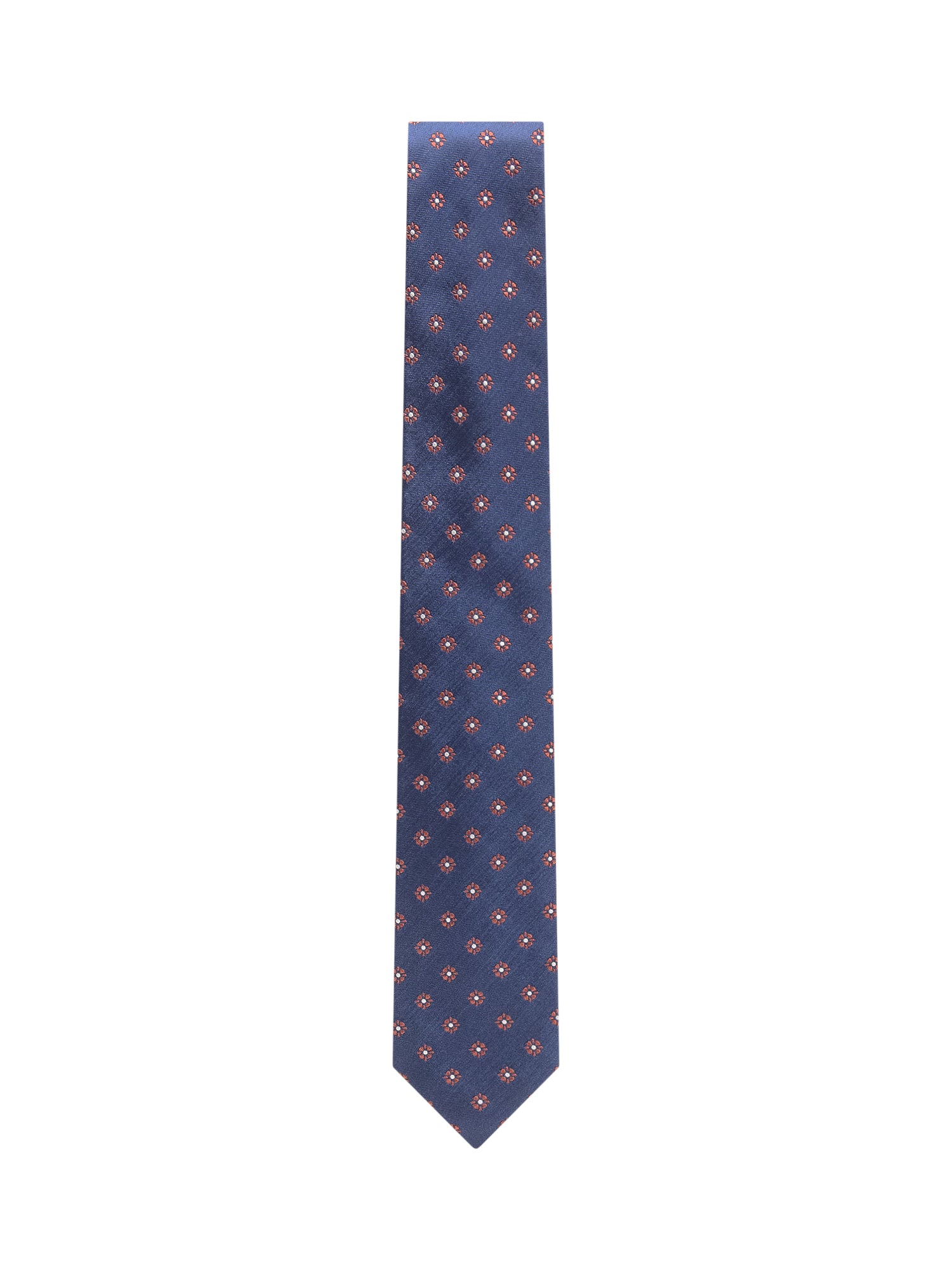 Cravatta blu Barbanapoli in seta con micro fantasia floreale rossa.