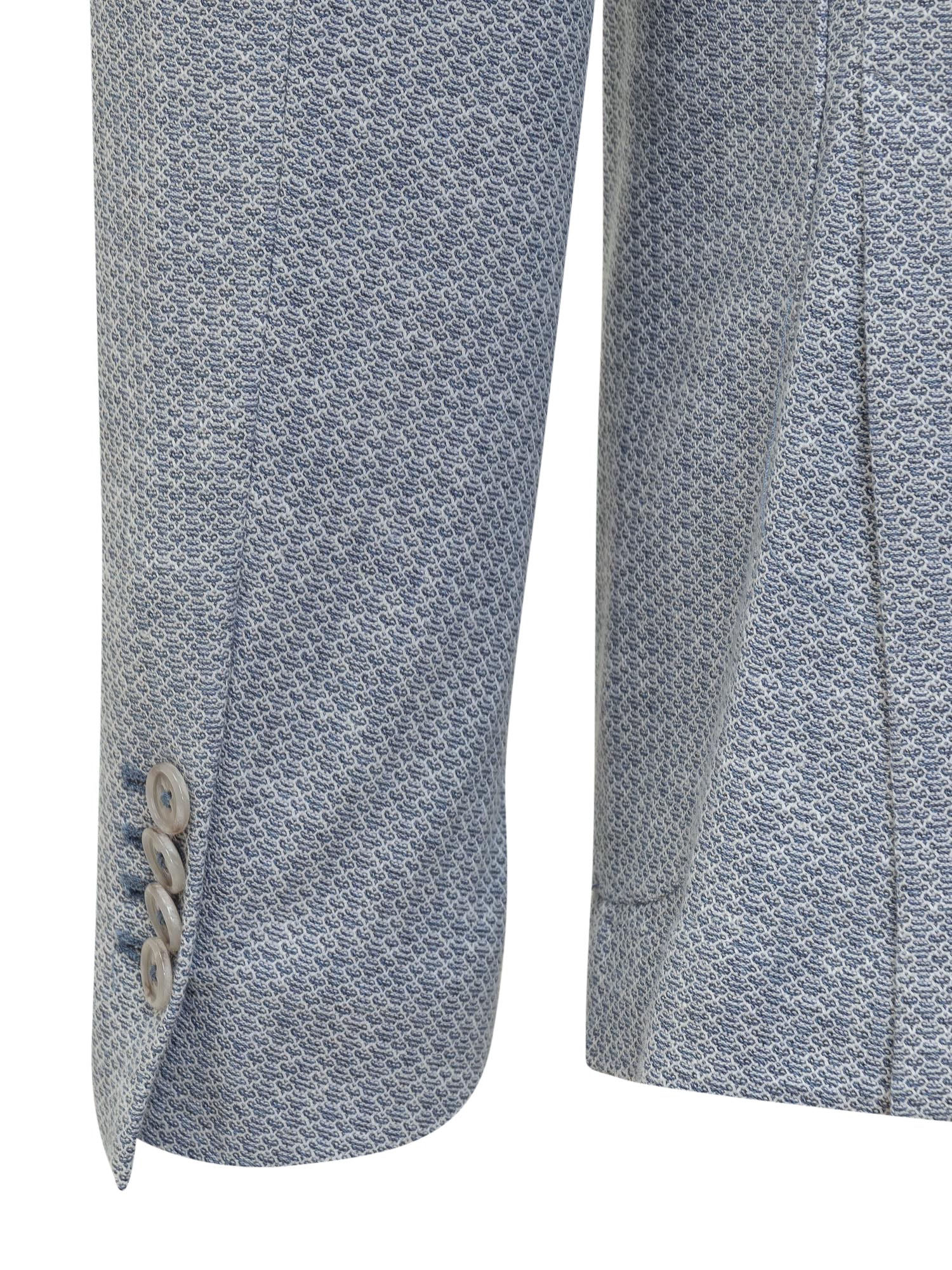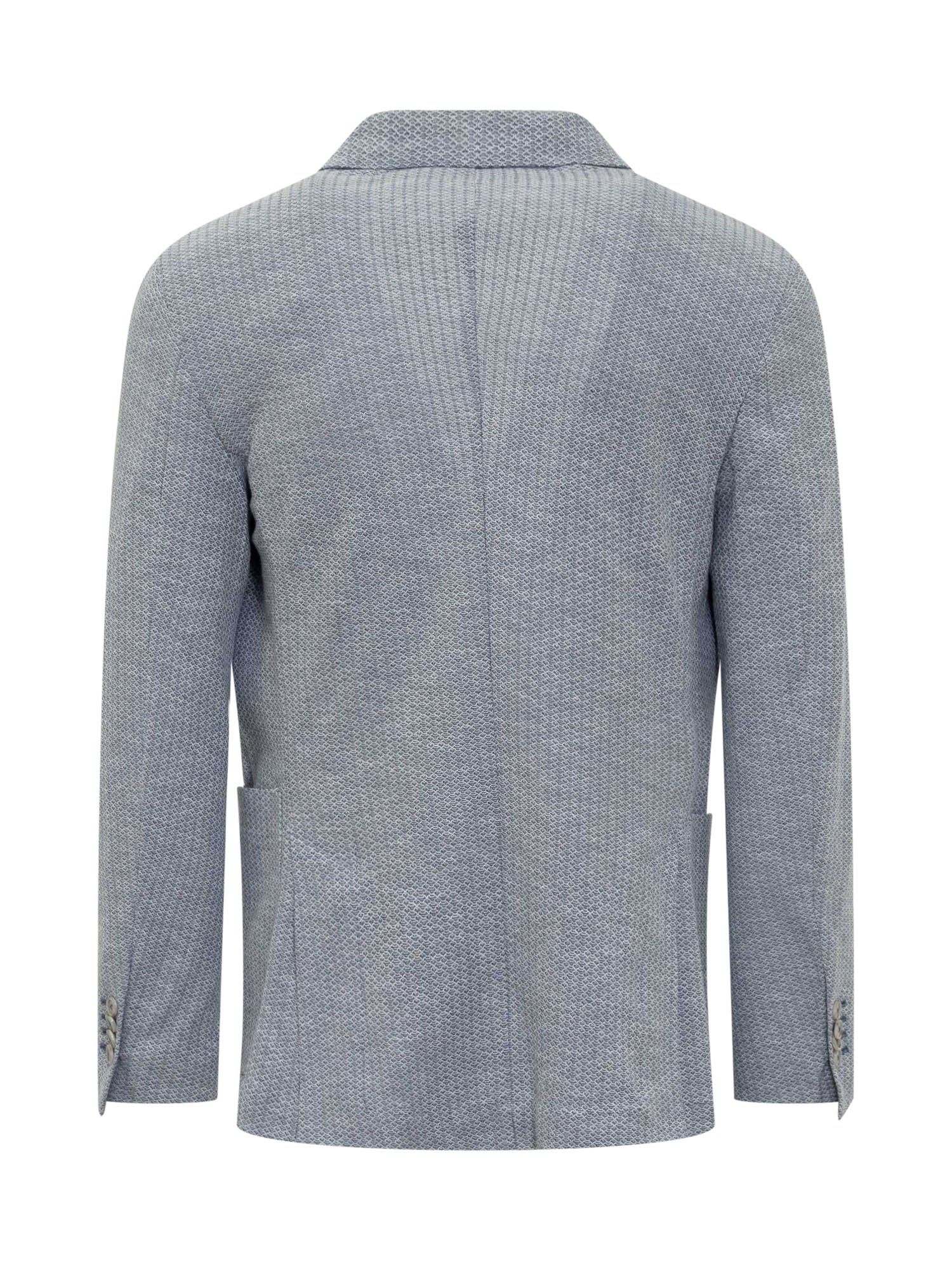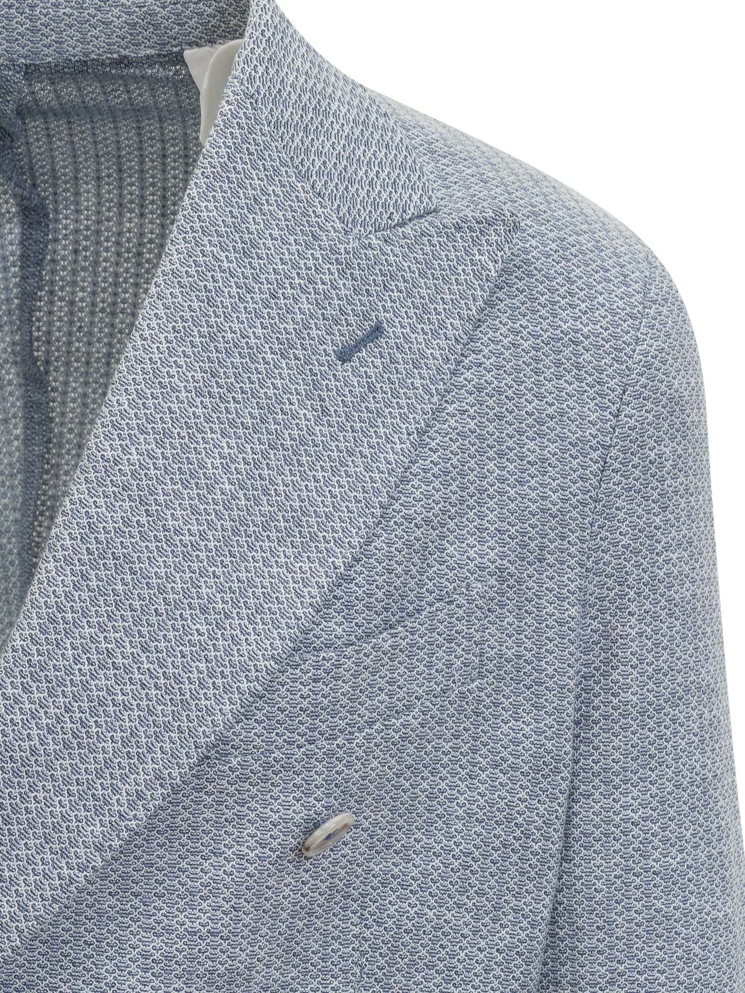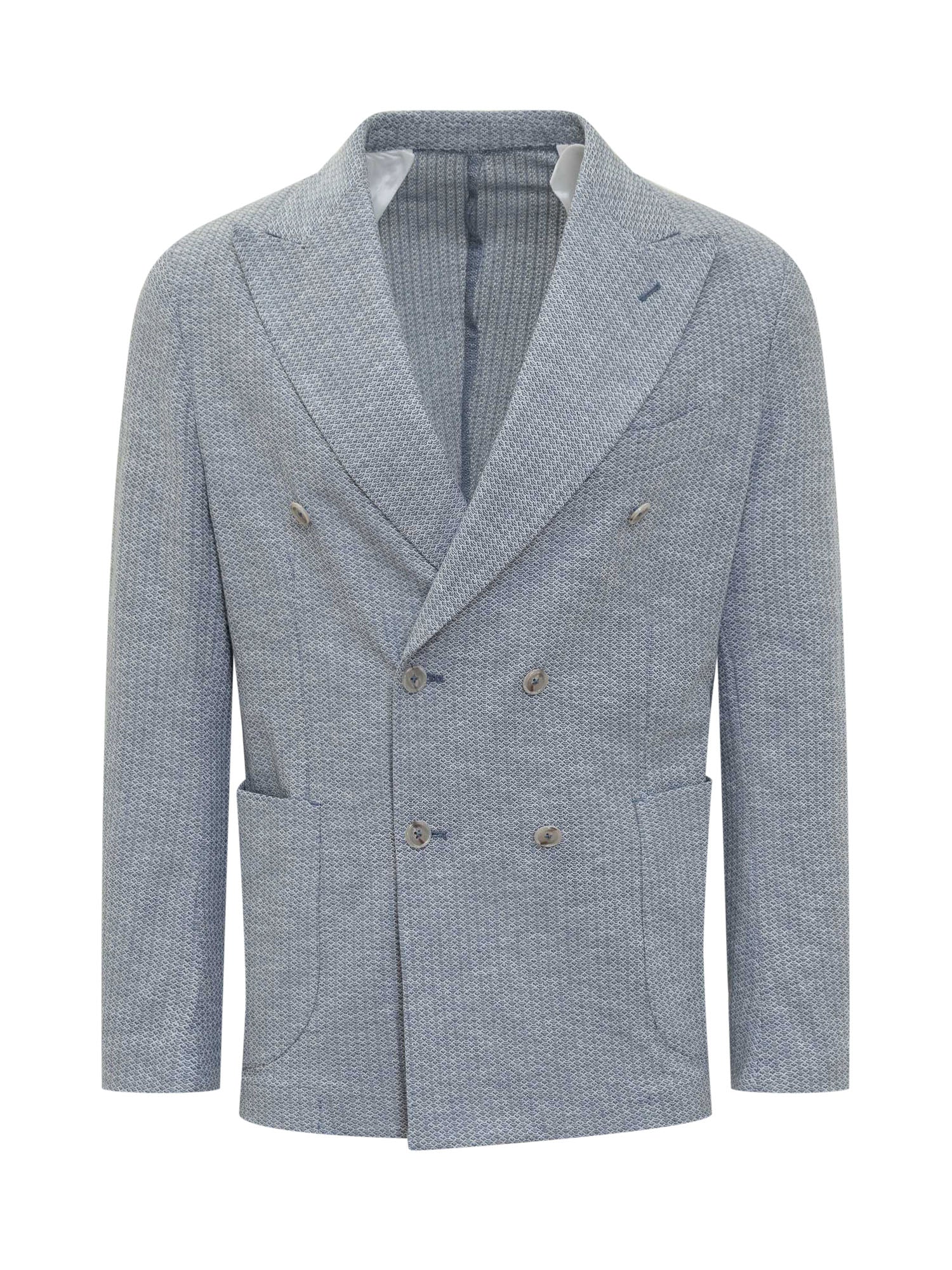 Blazer doppiopetto a maniche lunghe. Scollo a V. Chiusura con bottoni. Polsi con bottoni. Tre tasche.