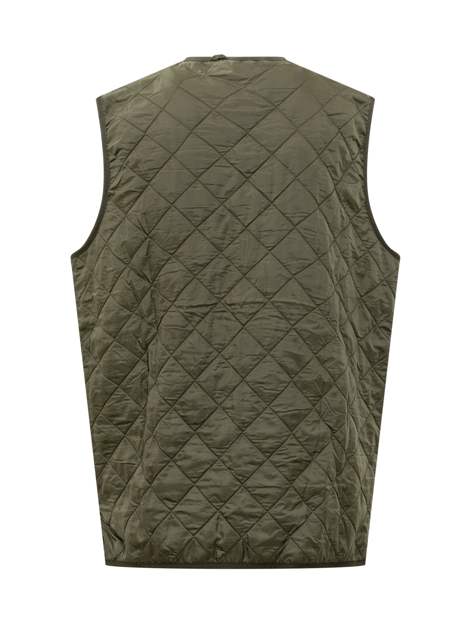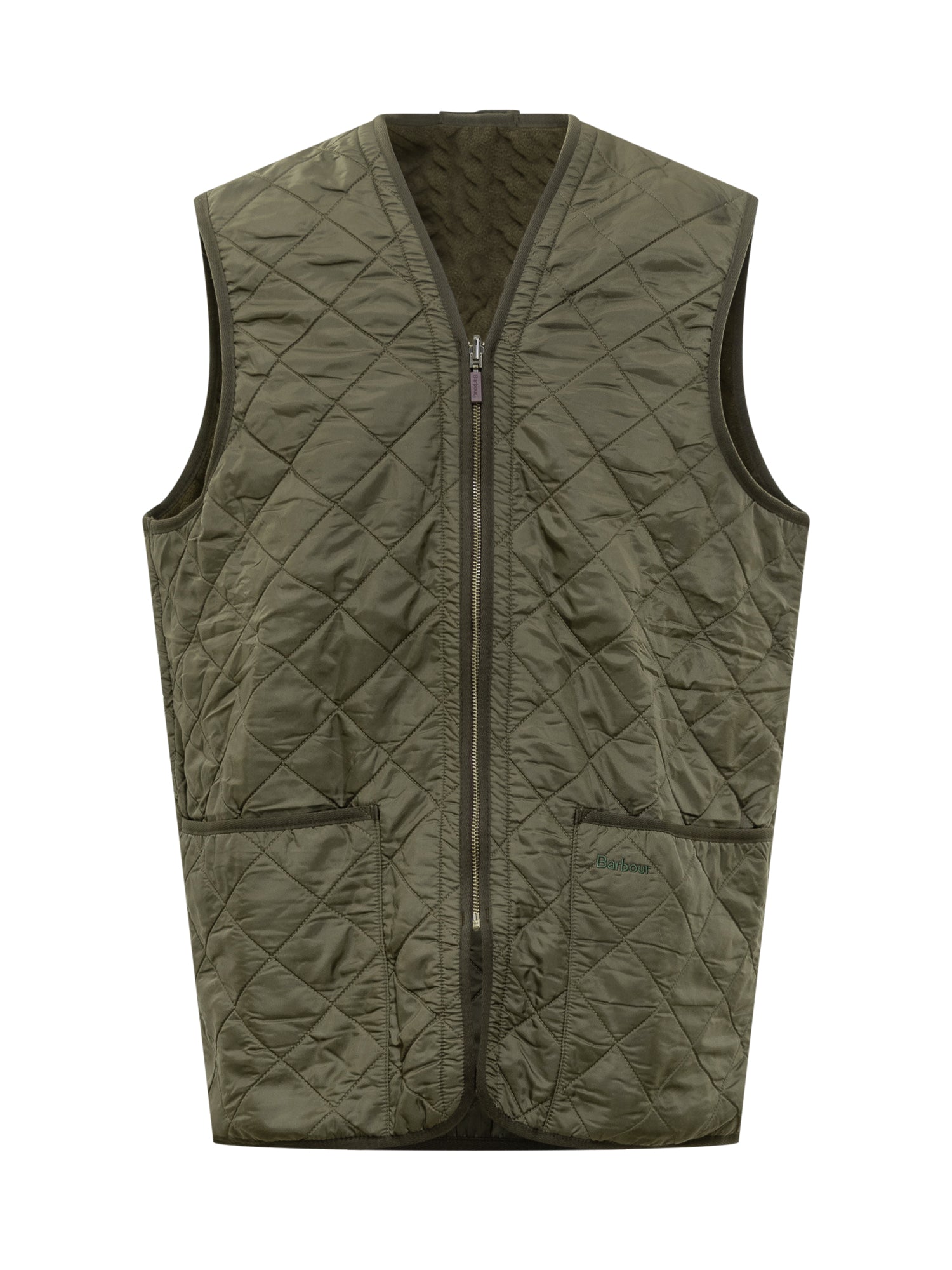 Gilet verde in tessuto trapuntato con zip centrale e tasche frontali.