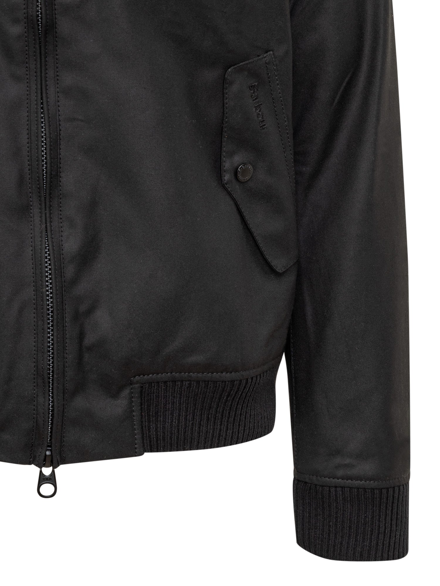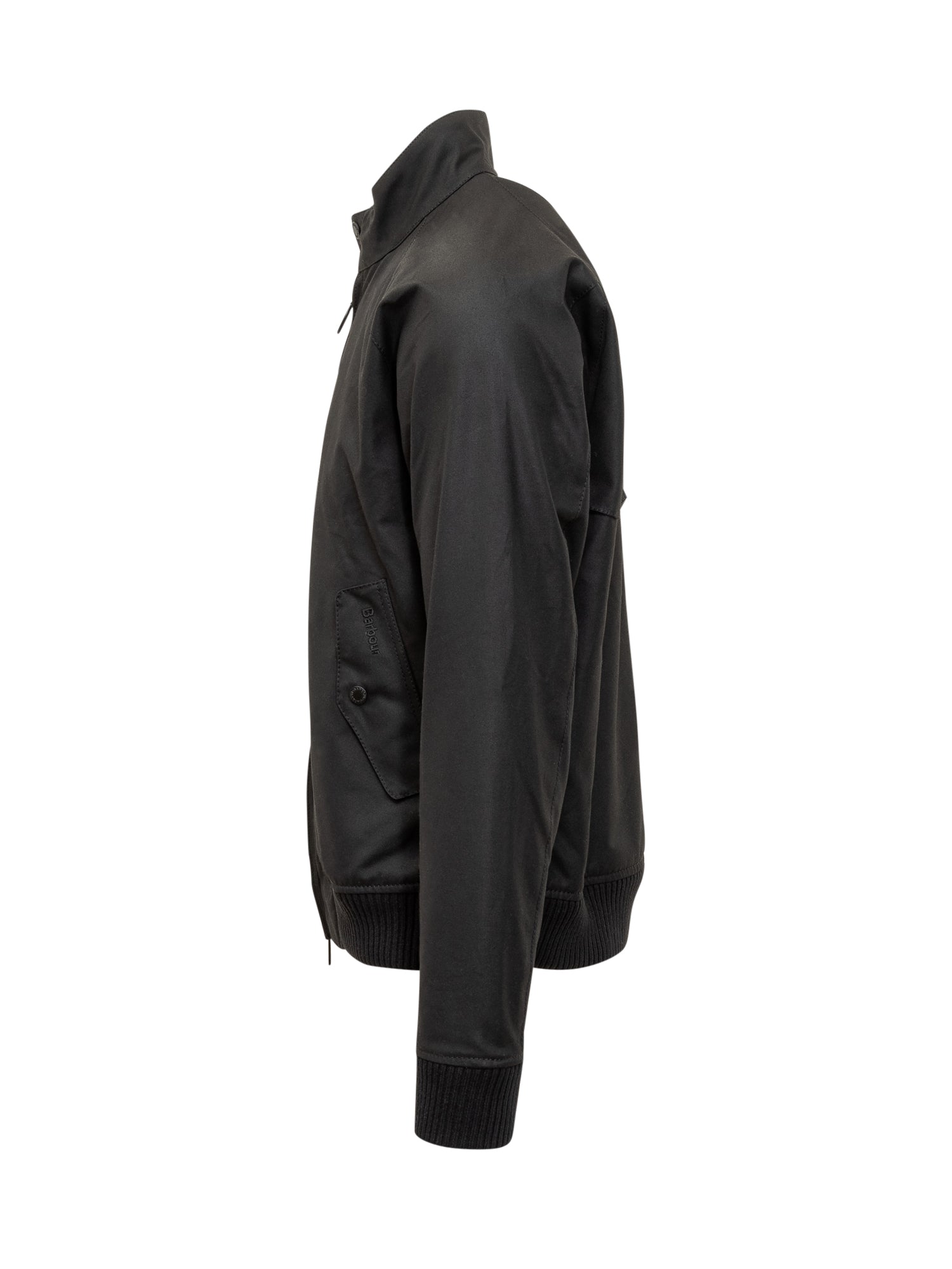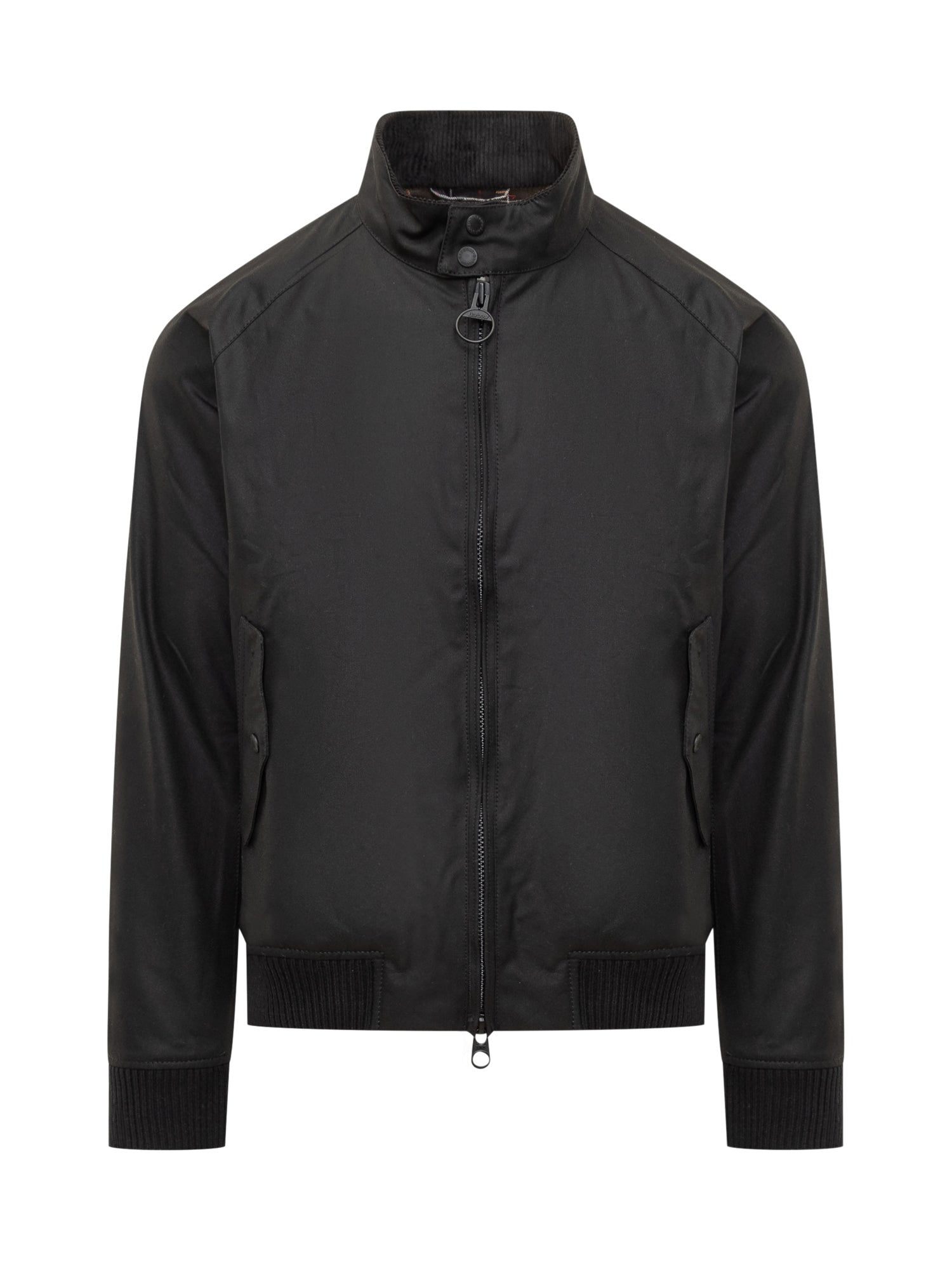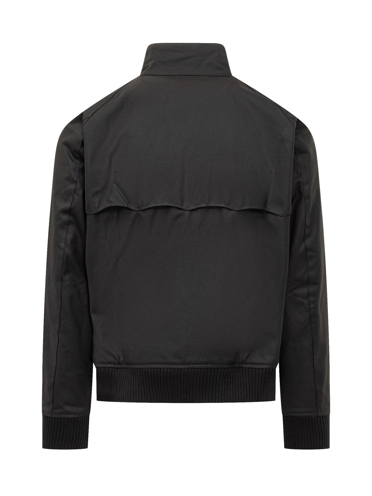 Giubbino con collo alto. Chiusura con zip e bottoni. Orli a costine. Due tasche laterali.