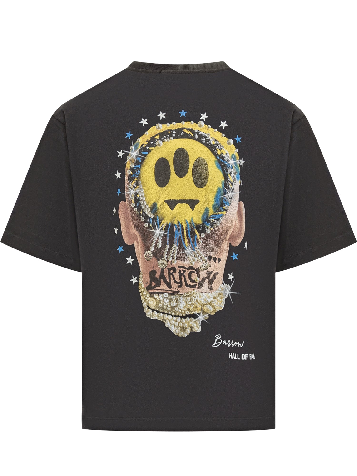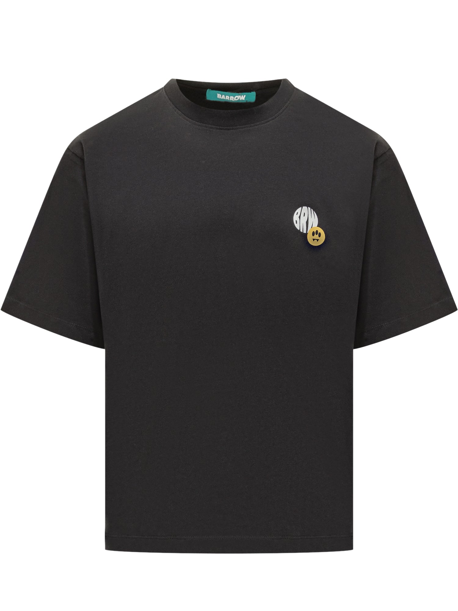 T-shirt Barrow in cotone nero con vestibilità regolare. Il logo BRW e l emoji gialla sul petto aggiungono un dettaglio grafico distintivo.