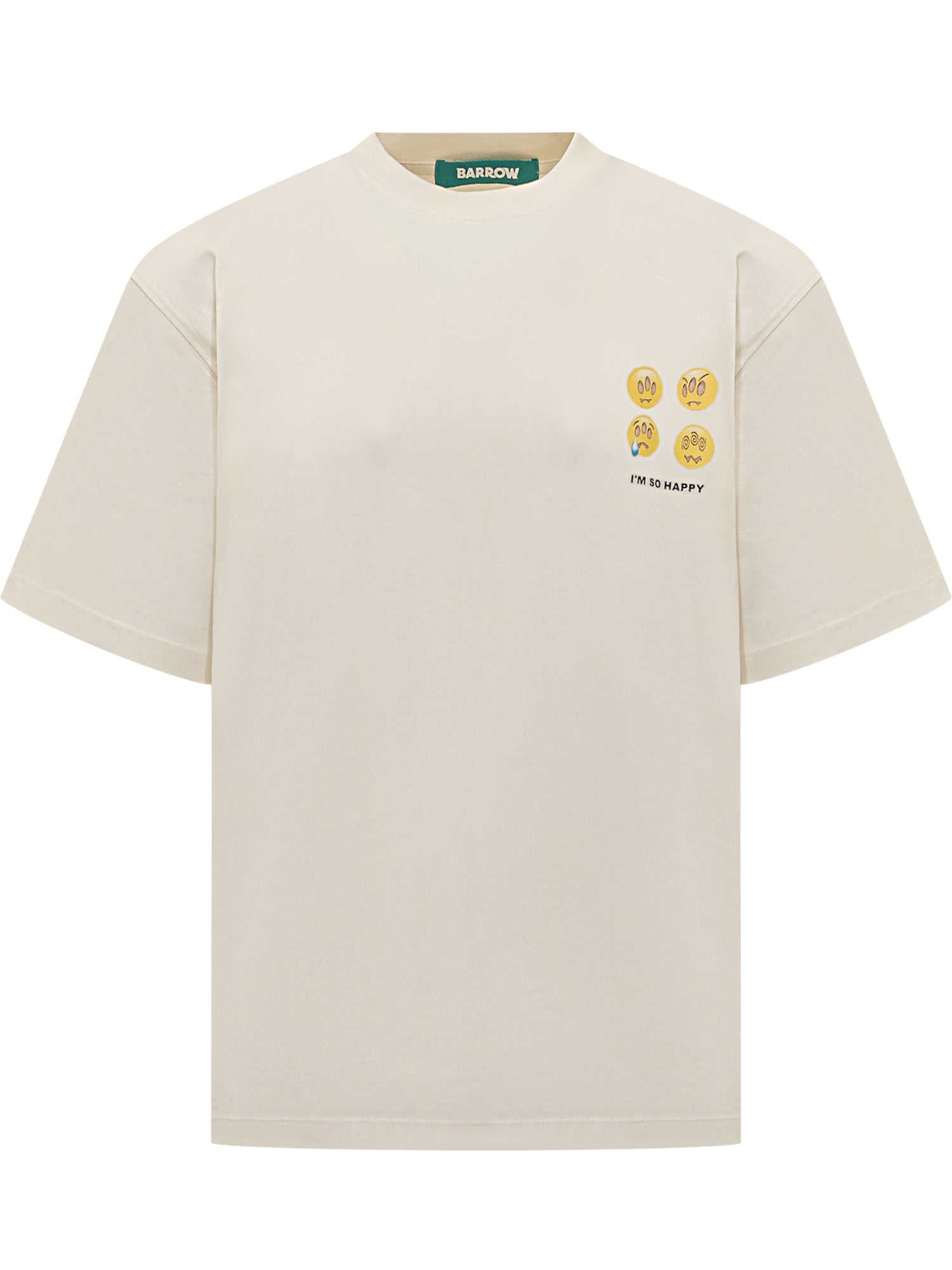 T-shirt Barrow in cotone beige con stampe smiley gialle e scritta I'm So Happy sul petto.