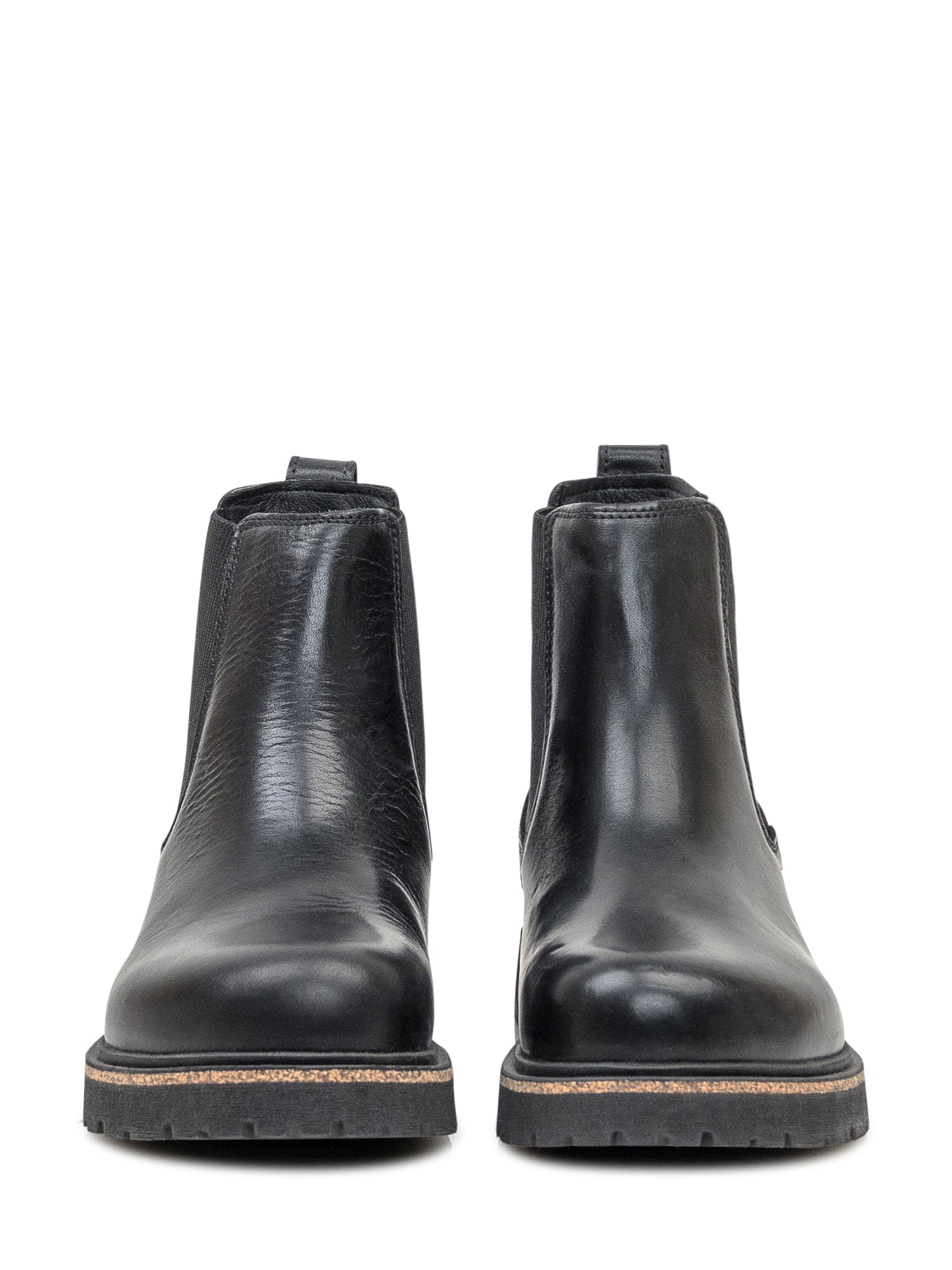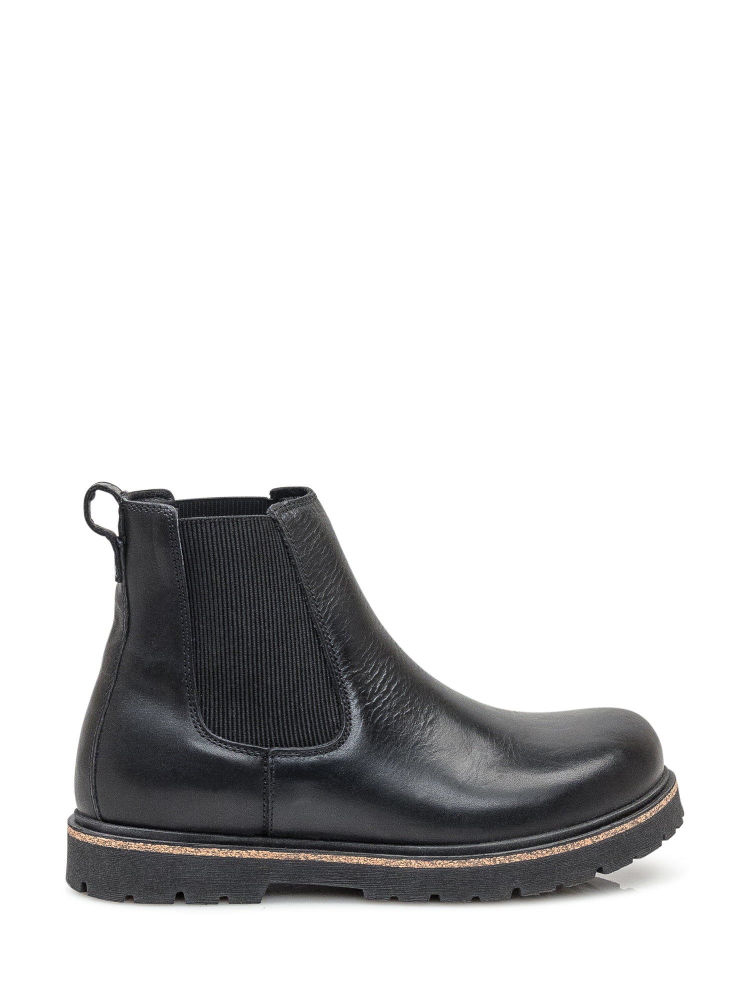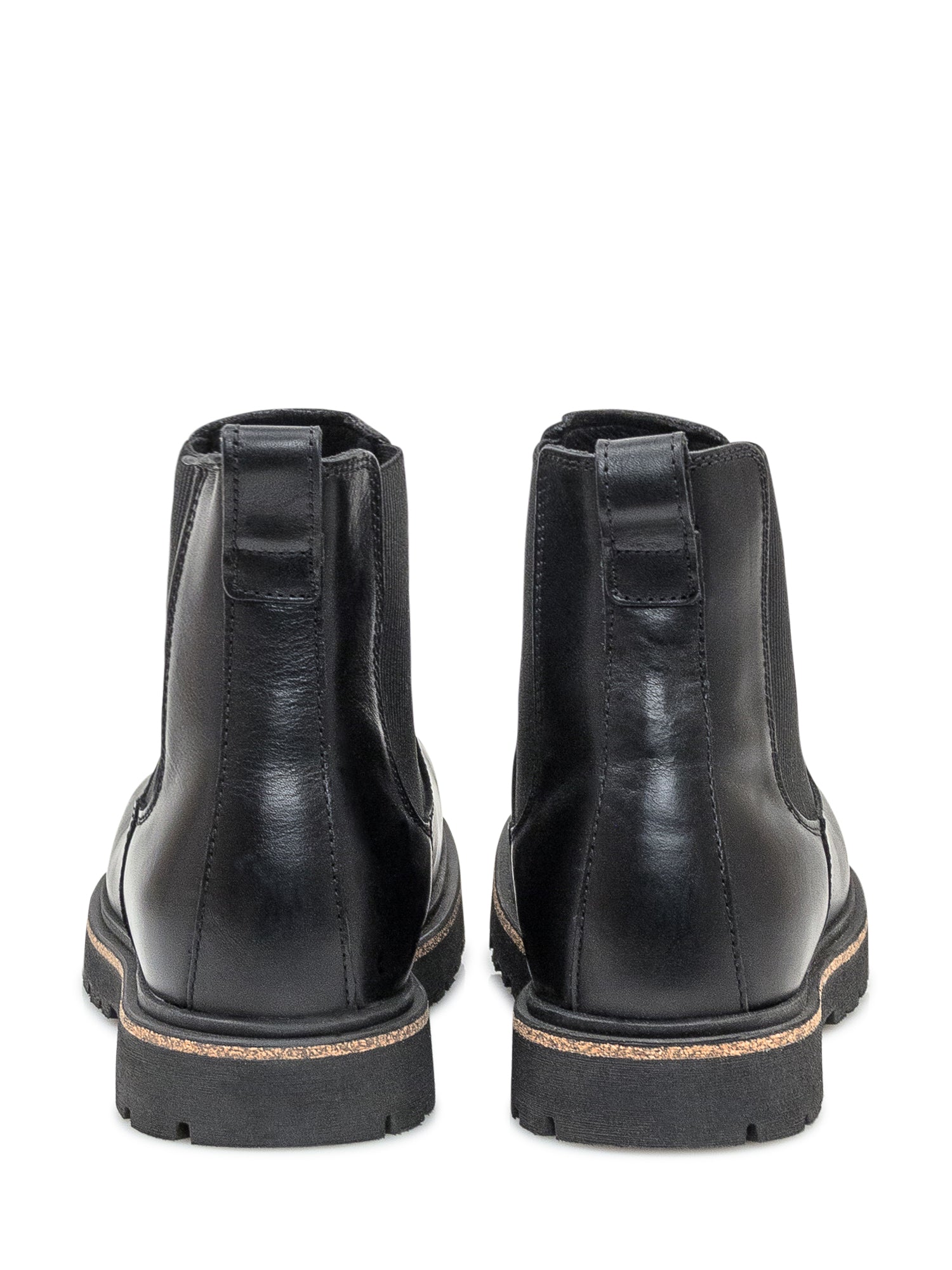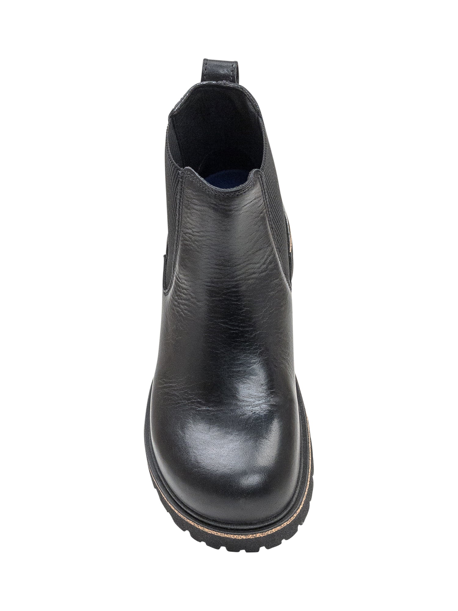 Stivaletto Chelsea nero Birkenstock in pelle liscia con inserti elastici laterali e suola carrarmato.