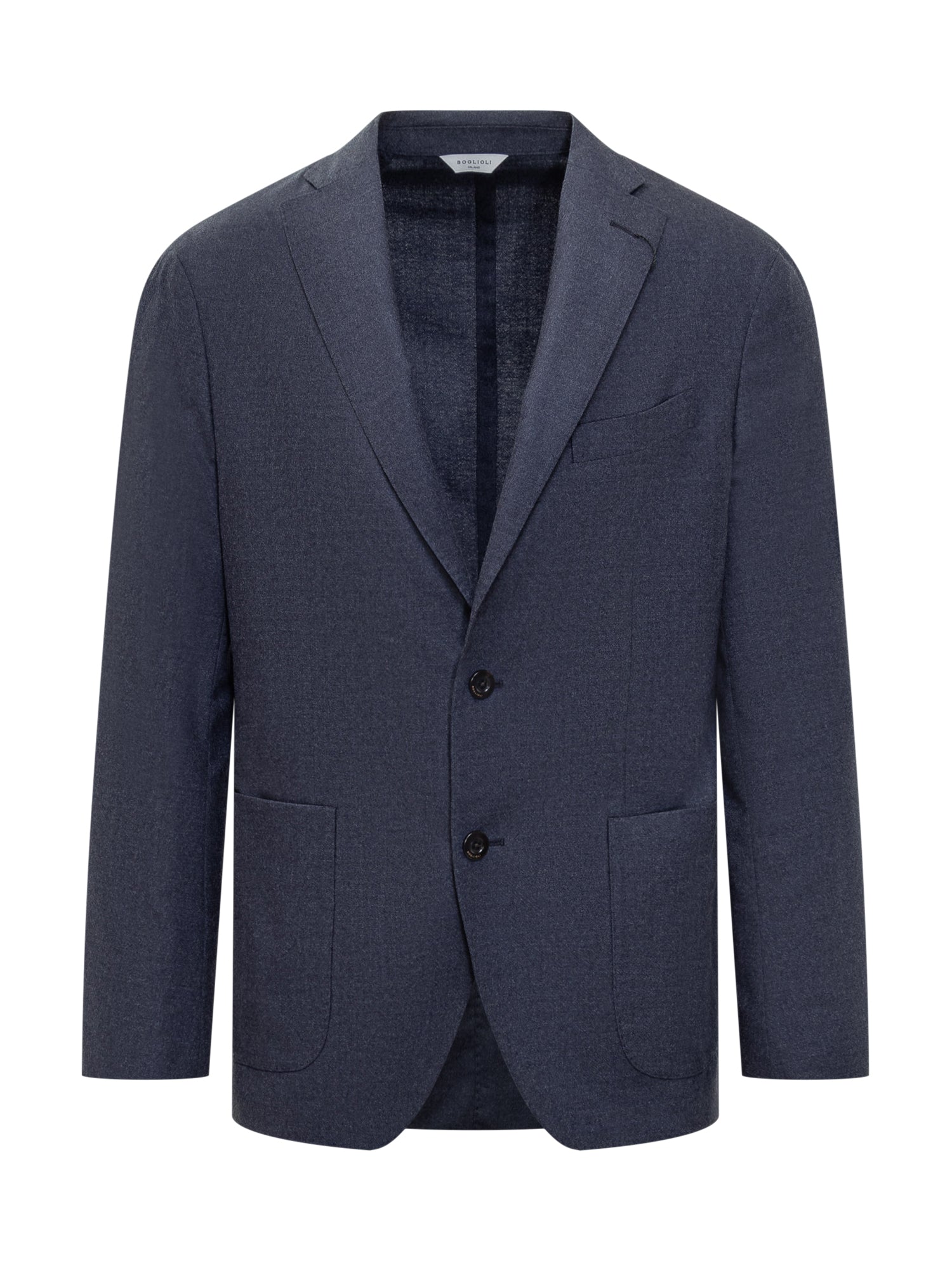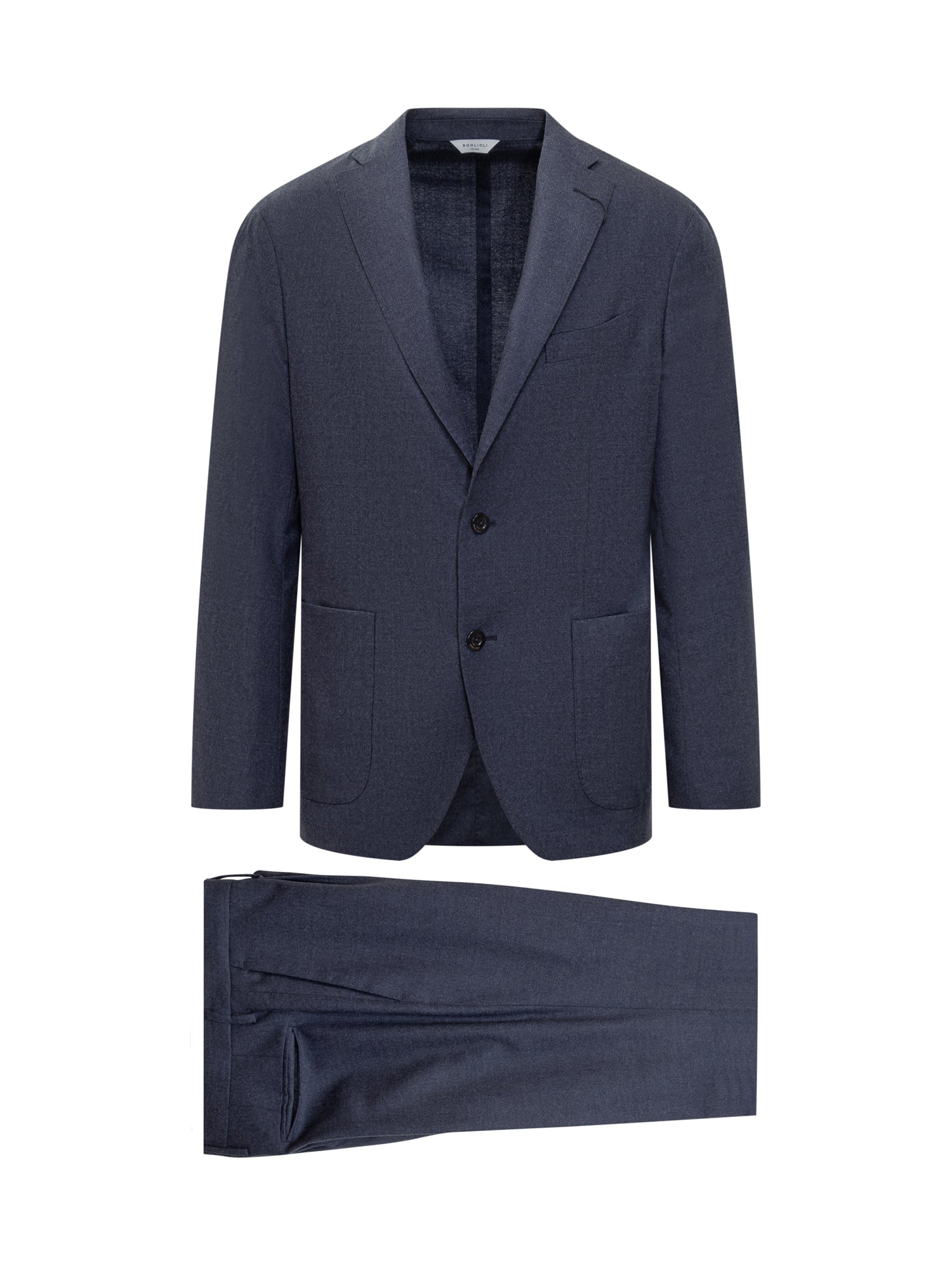 Elegante abito Boglioli in lana blu, composto da giacca monopetto a due bottoni e pantaloni coordinati.