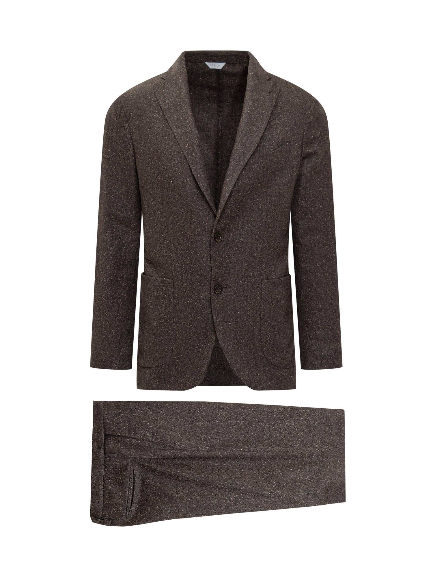 Abito Boglioli in lana marrone con giacca monopetto a due bottoni e pantaloni coordinati.