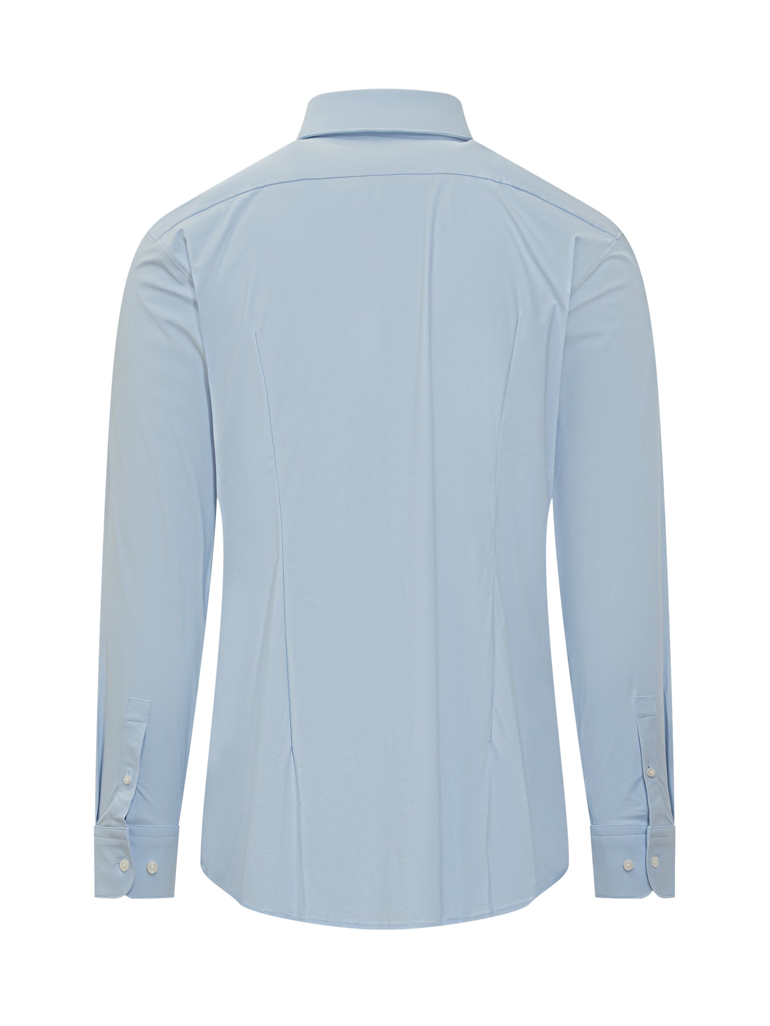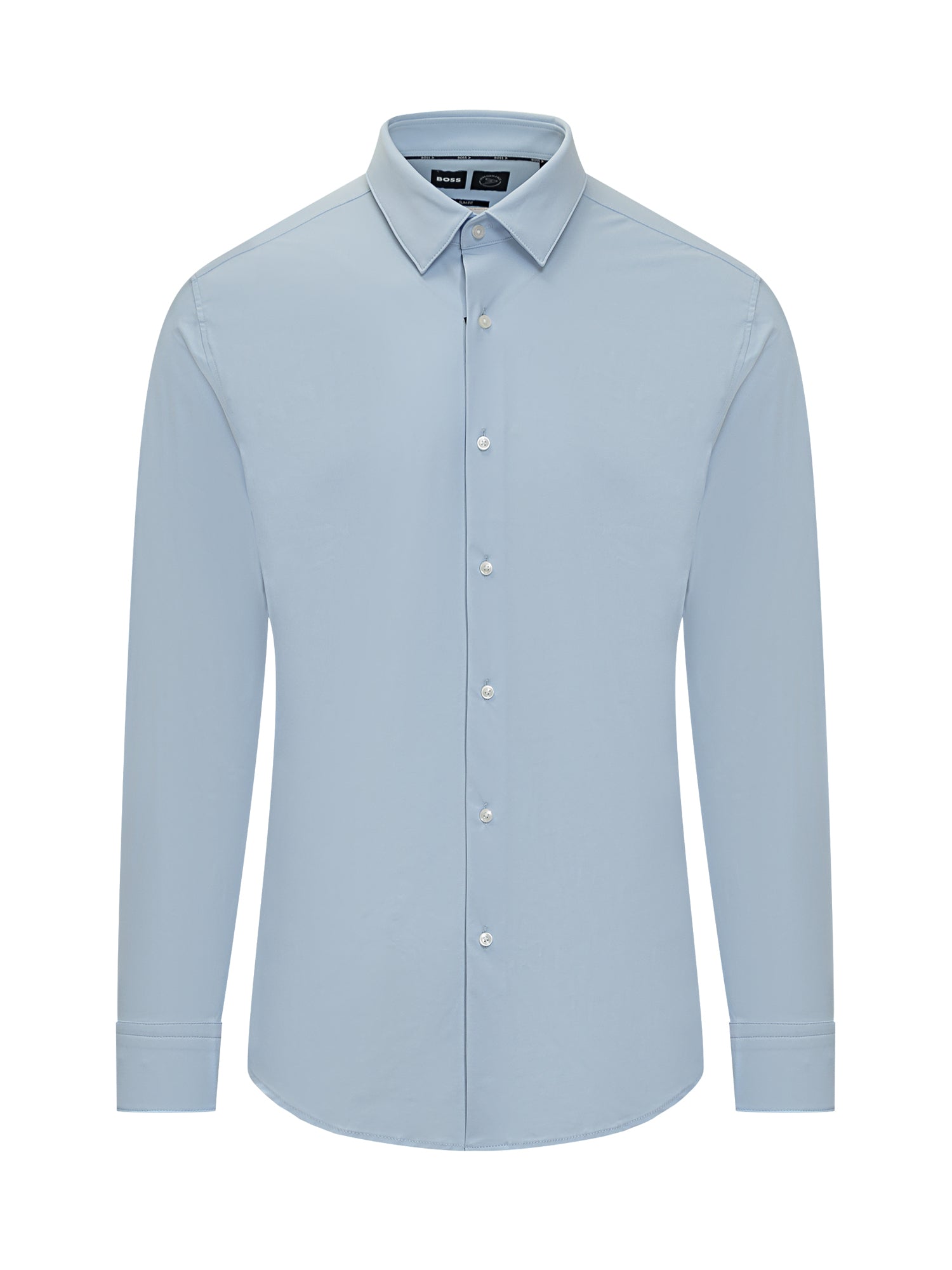 Camicia Boss in cotone stretch azzurro. Modello slim fit con colletto classico, chiusura a bottoni e polsini con bottoni.