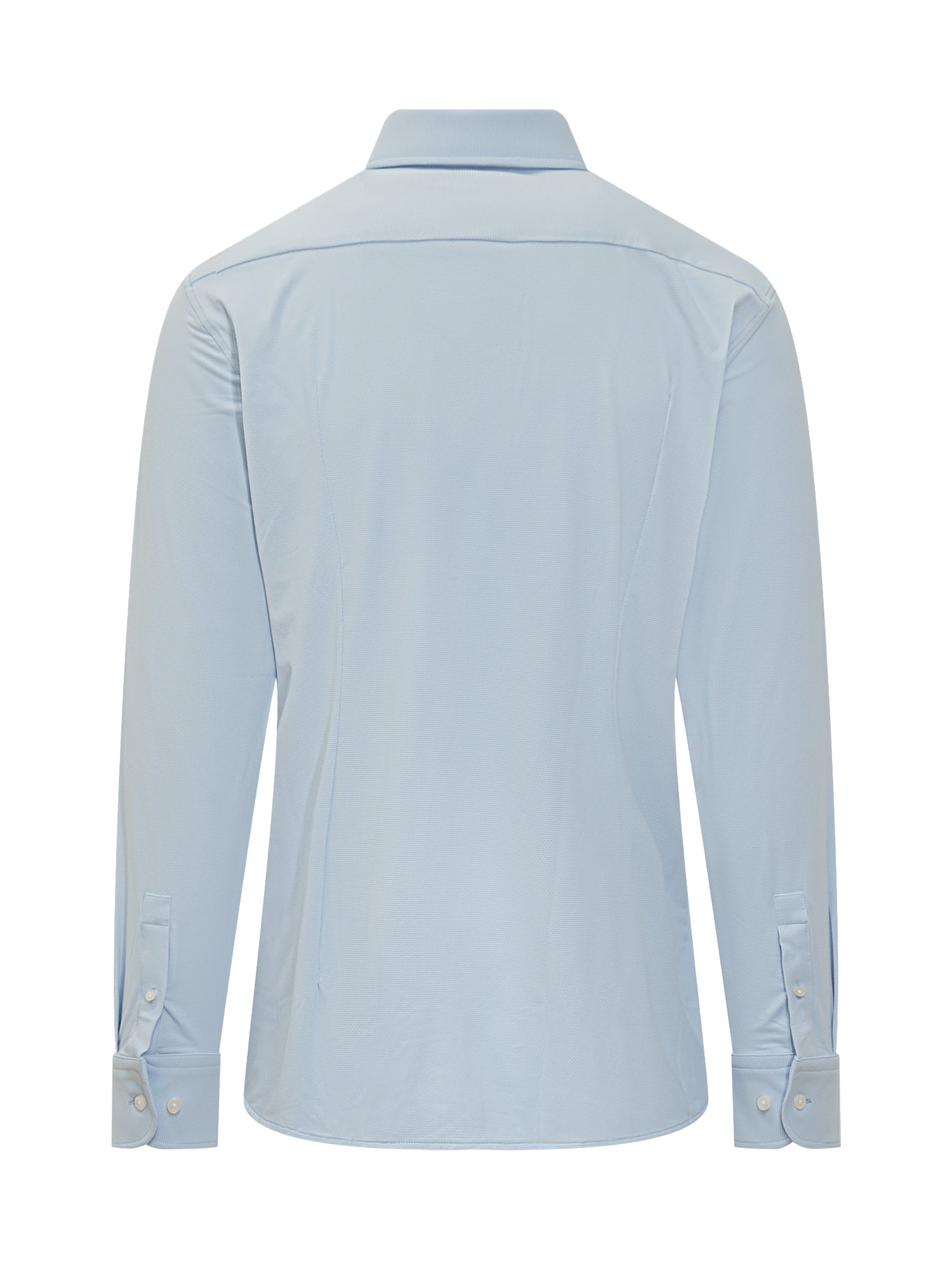 Camicia Boss in cotone stretch celeste. Modello slim fit con colletto classico, chiusura a bottoni e polsini con bottoni.